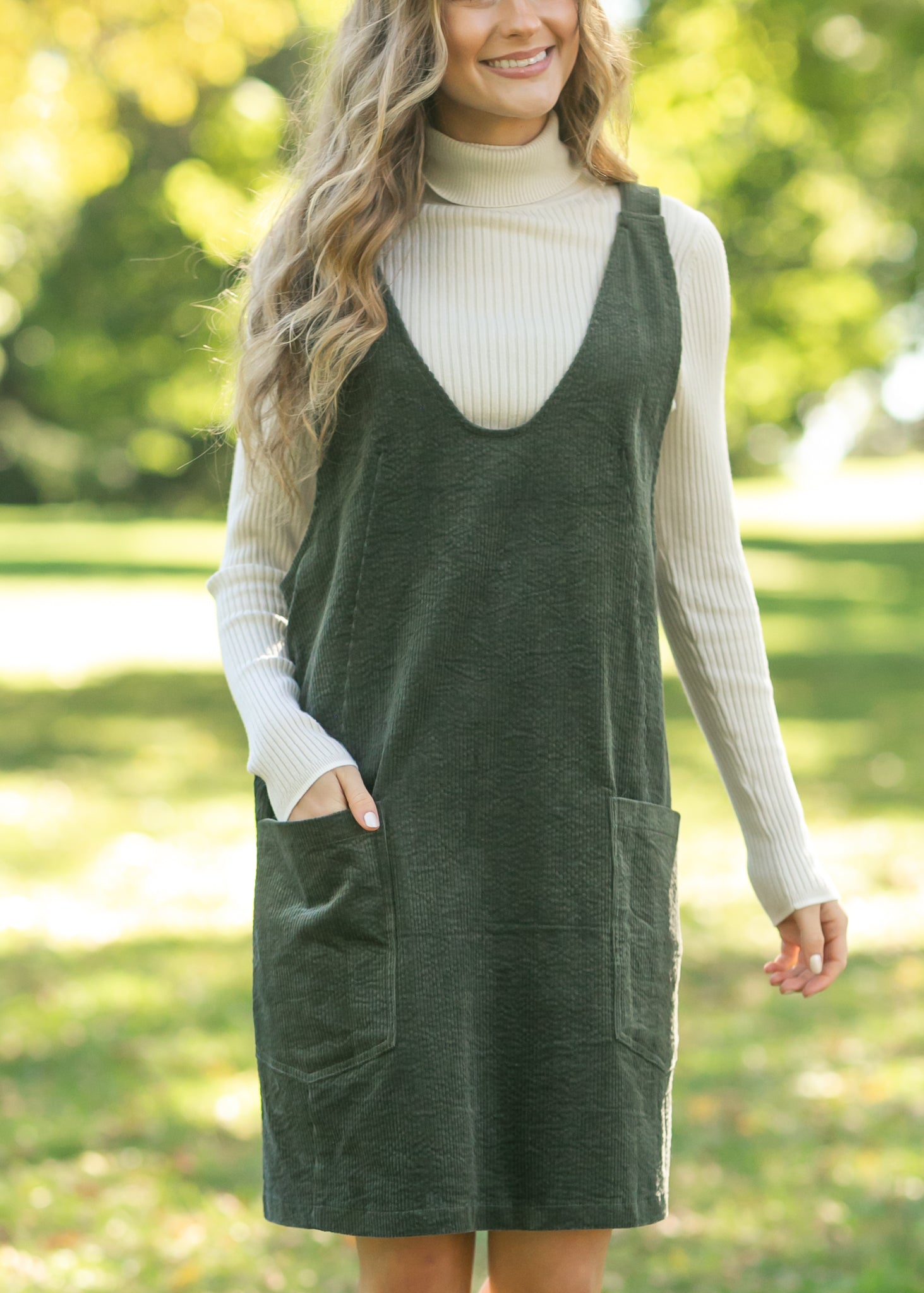 Olive Corduroy Overall Dress