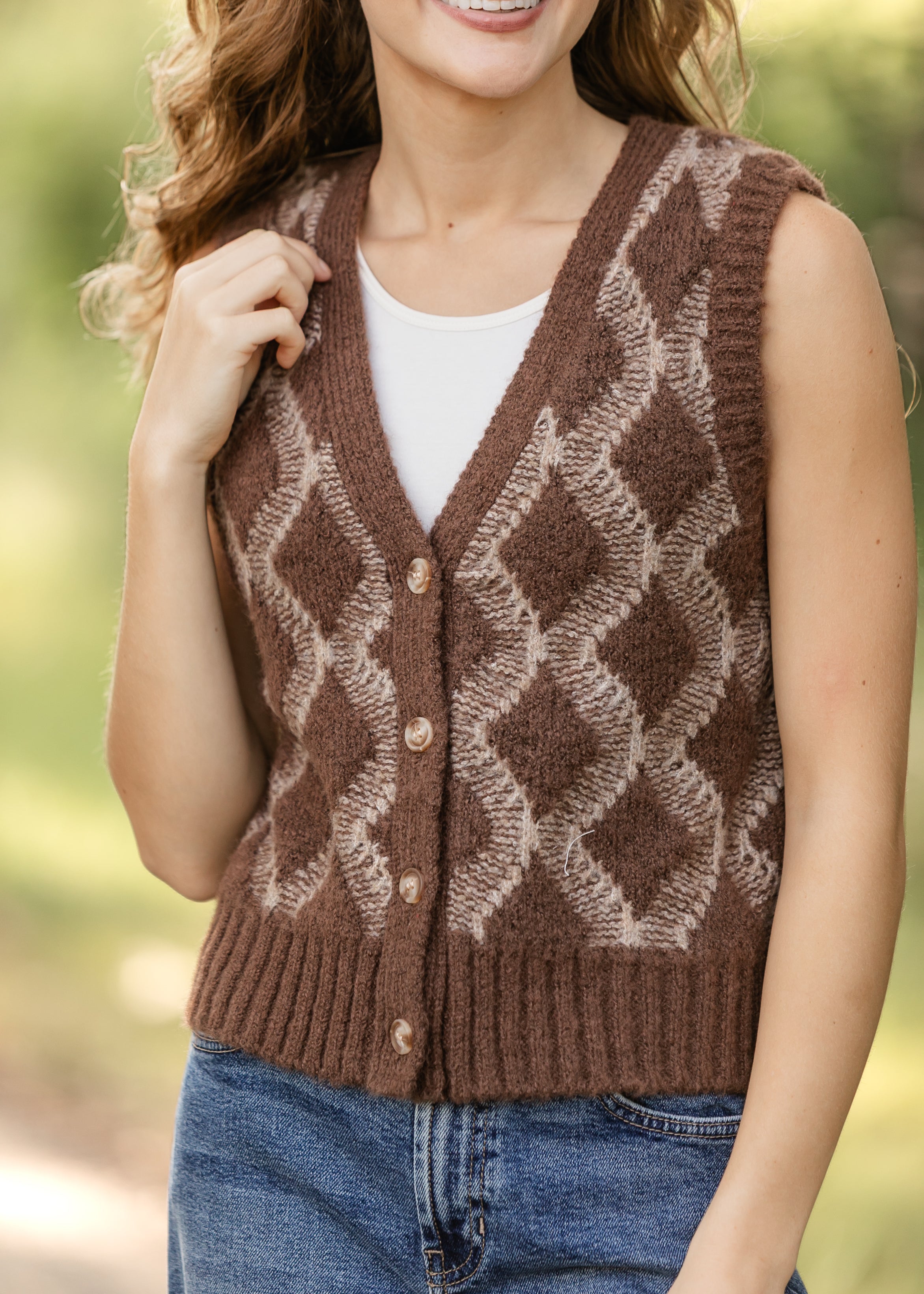 The Argyle Button Up Sweater Vest brings cozy, vintage-inspired style to your wardrobe. With its soft knit texture and classic diamond pattern in warm tones, it’s perfect for layering over a simple tee or blouse. Pair it with denim for a relaxed look or a flowy skirt for a touch of feminine charm, making it a versatile, modest staple!