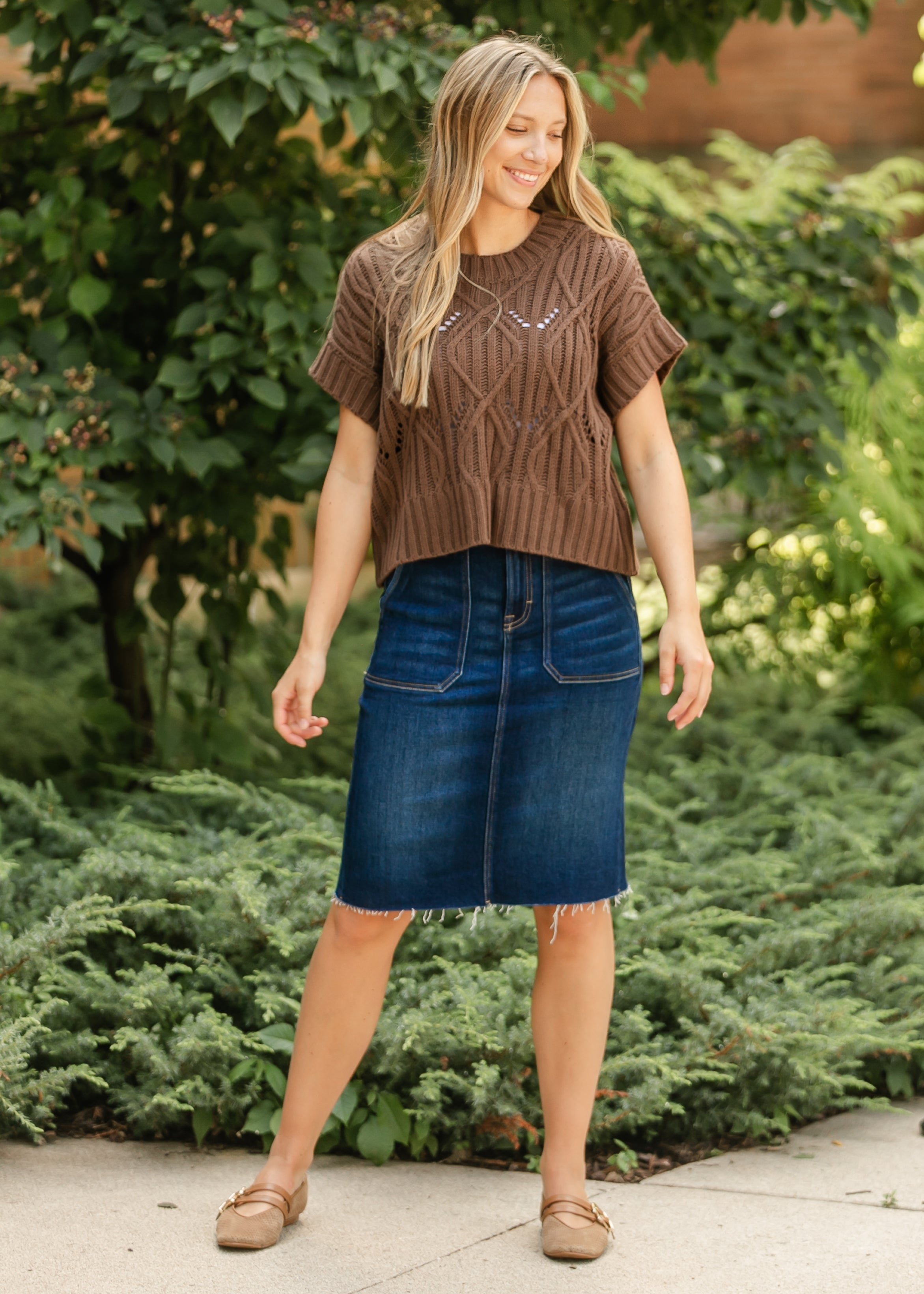 The Brown Crochet Dolman Sleeve Top is all about laid-back texture and effortless movement. With a relaxed dolman sleeve and breathable open knit, this top adds visual interest while keeping things modest and breezy. Its longer length and easy layering potential make it a go-to for transitional dressing and cooler summer nights.