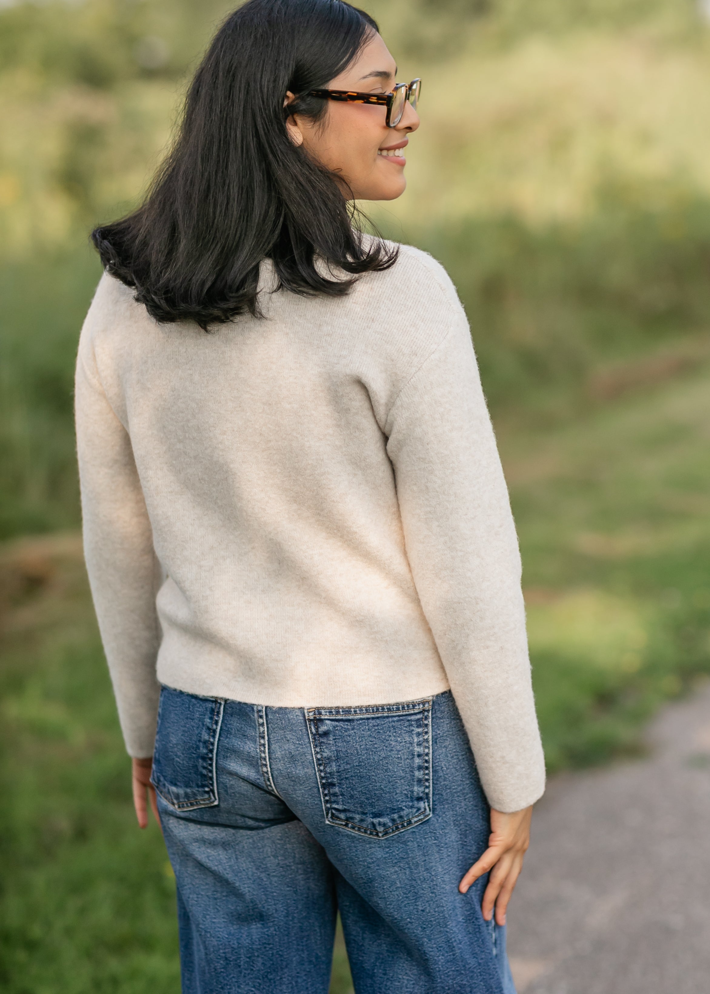 The Collared Button Up Cardigan offers a polished twist on cozy layering with its soft knit fabric and structured collar. Covered buttons add a refined touch, while front pockets bring practicality. Perfect for wearing over a blouse with a flowy skirt for a feminine look or pairing with denim for casual elegance, it’s a timeless and modest wardrobe staple.