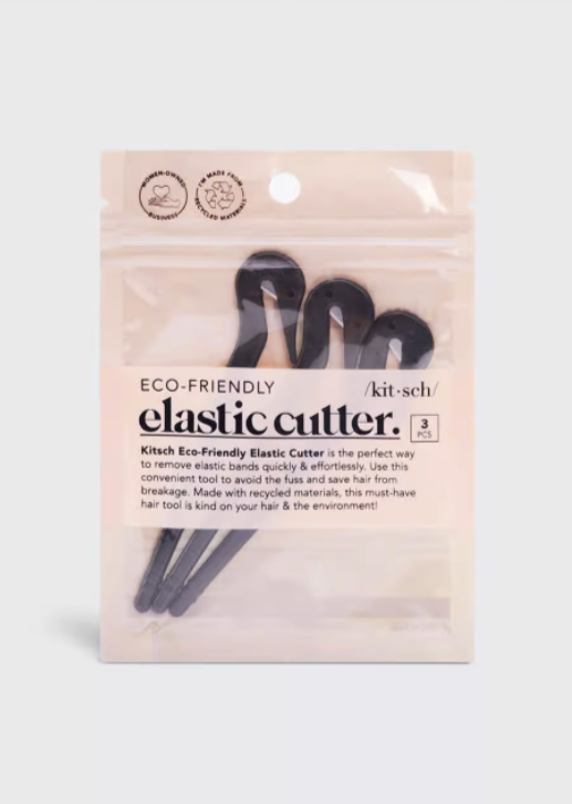 Kitsch Recycled Plastic Elastic Cutter is the perfect way to remove elastic bands quickly & effortlessly. Use this convenient tool to avoid the fuss and save hair from breakage. Made with recycled materials, this must-have hair tool is kind on your hair & the environment!