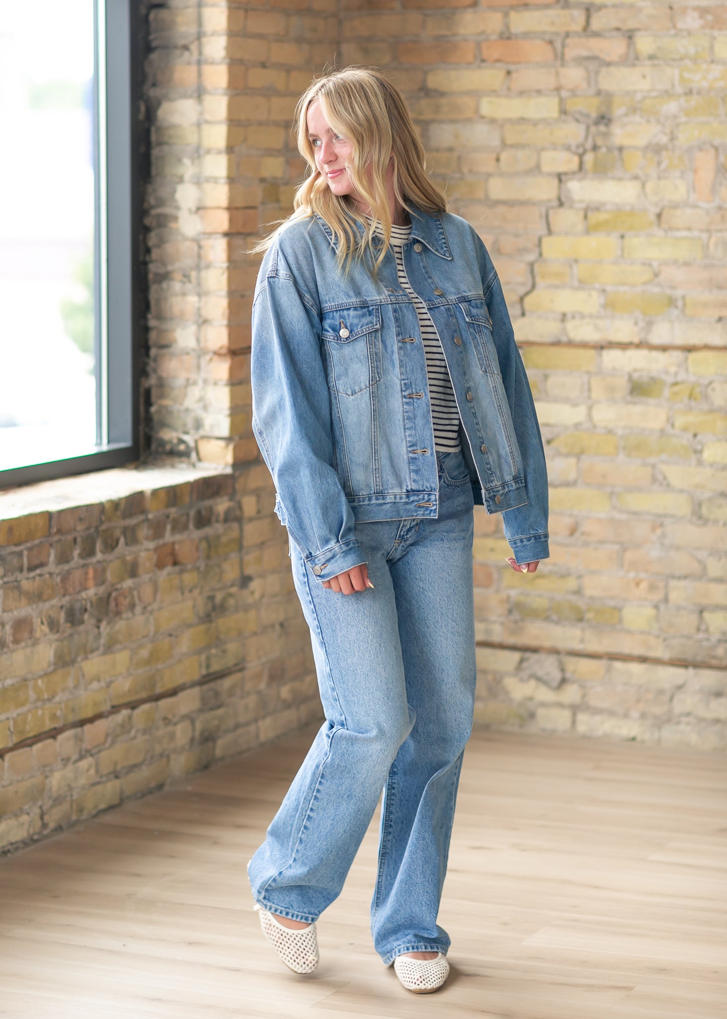 The Everyday Denim Jacket is a timeless layer designed for effortless wear and endless versatility. Crafted in a classic wash with a relaxed fit, it pairs beautifully with flowy skirts for a soft, feminine touch or with denim for a laid-back, casual look. Wear it on morning walks, weekend errands, or cool summer evenings for a modest, enduring style!