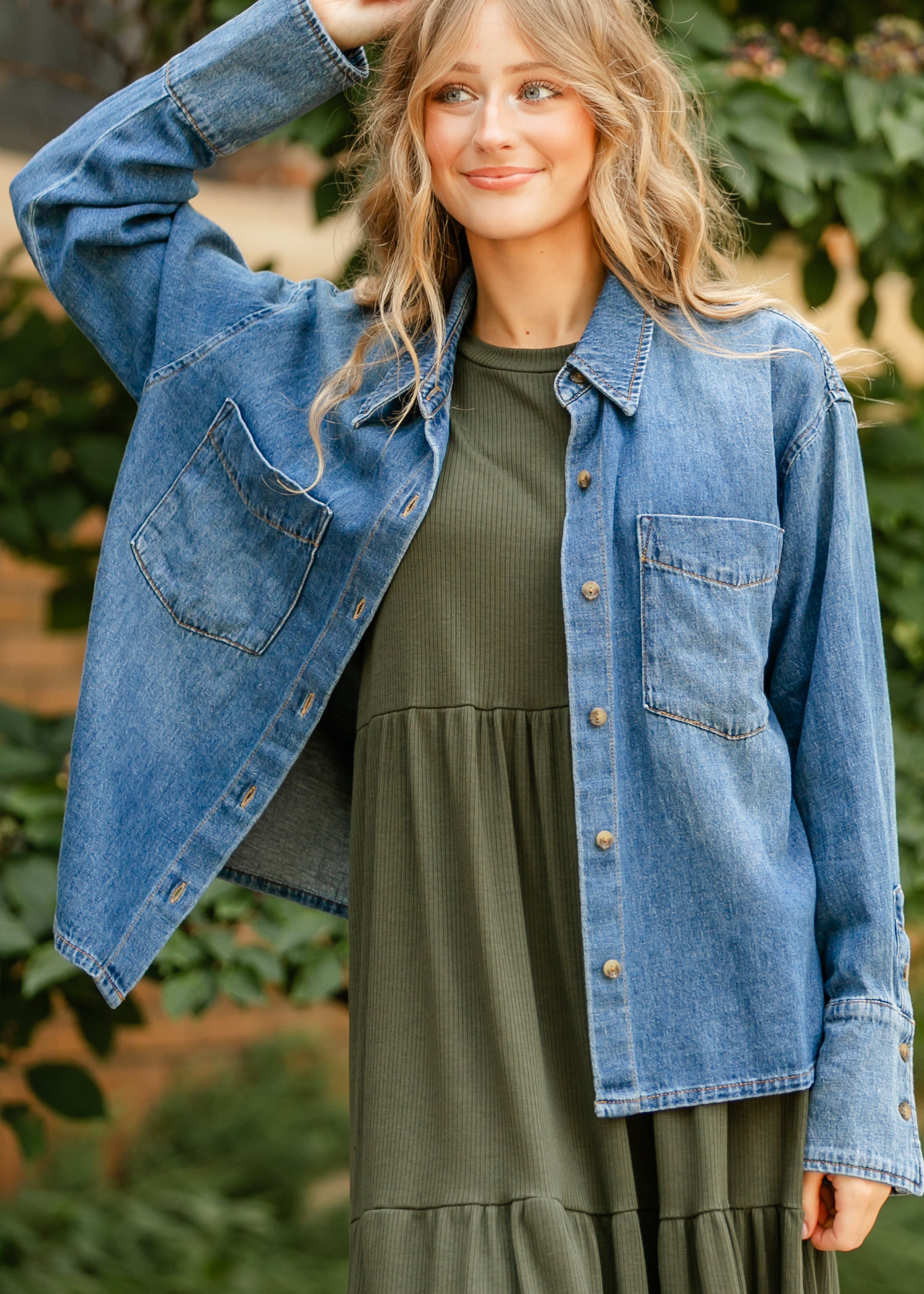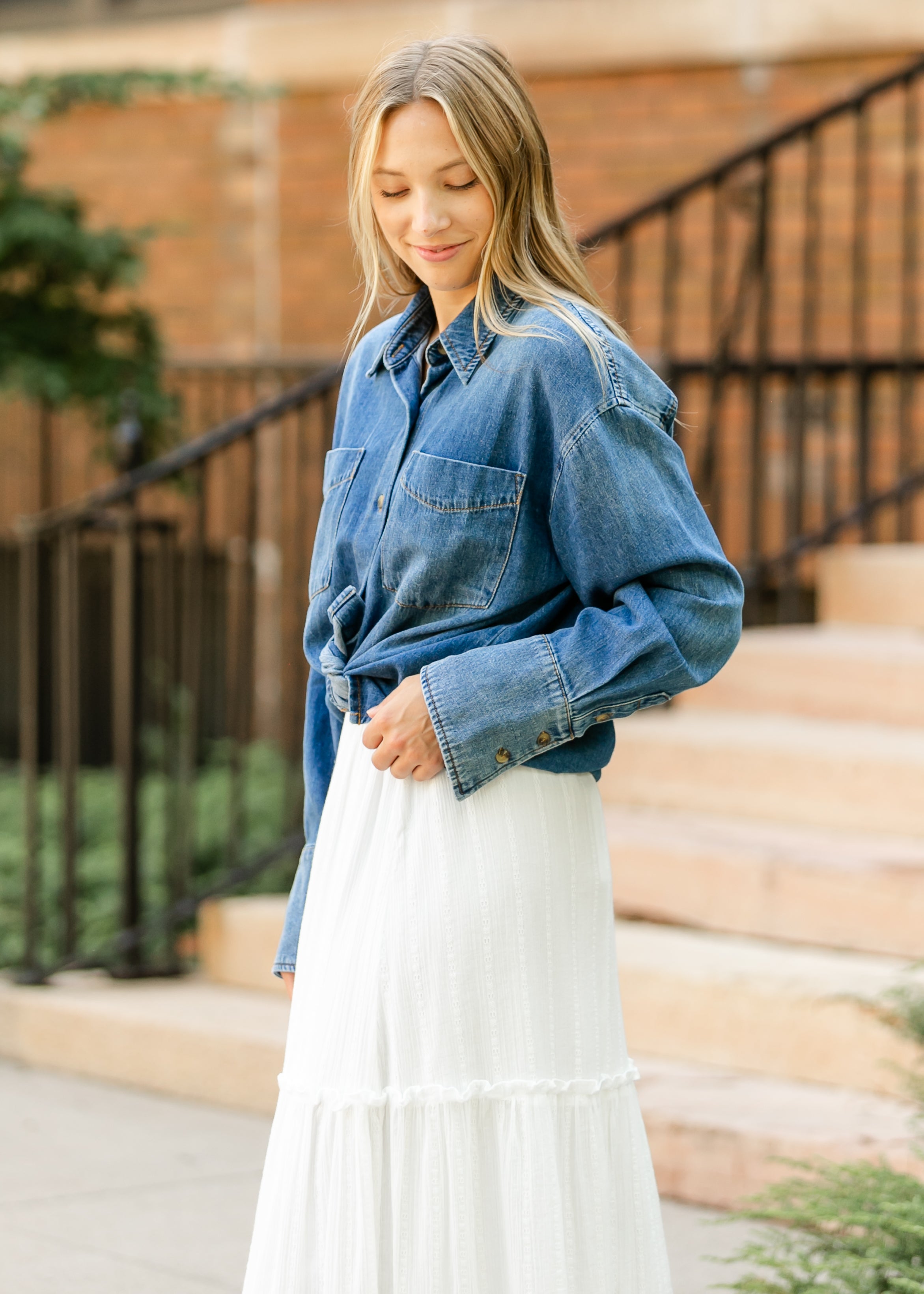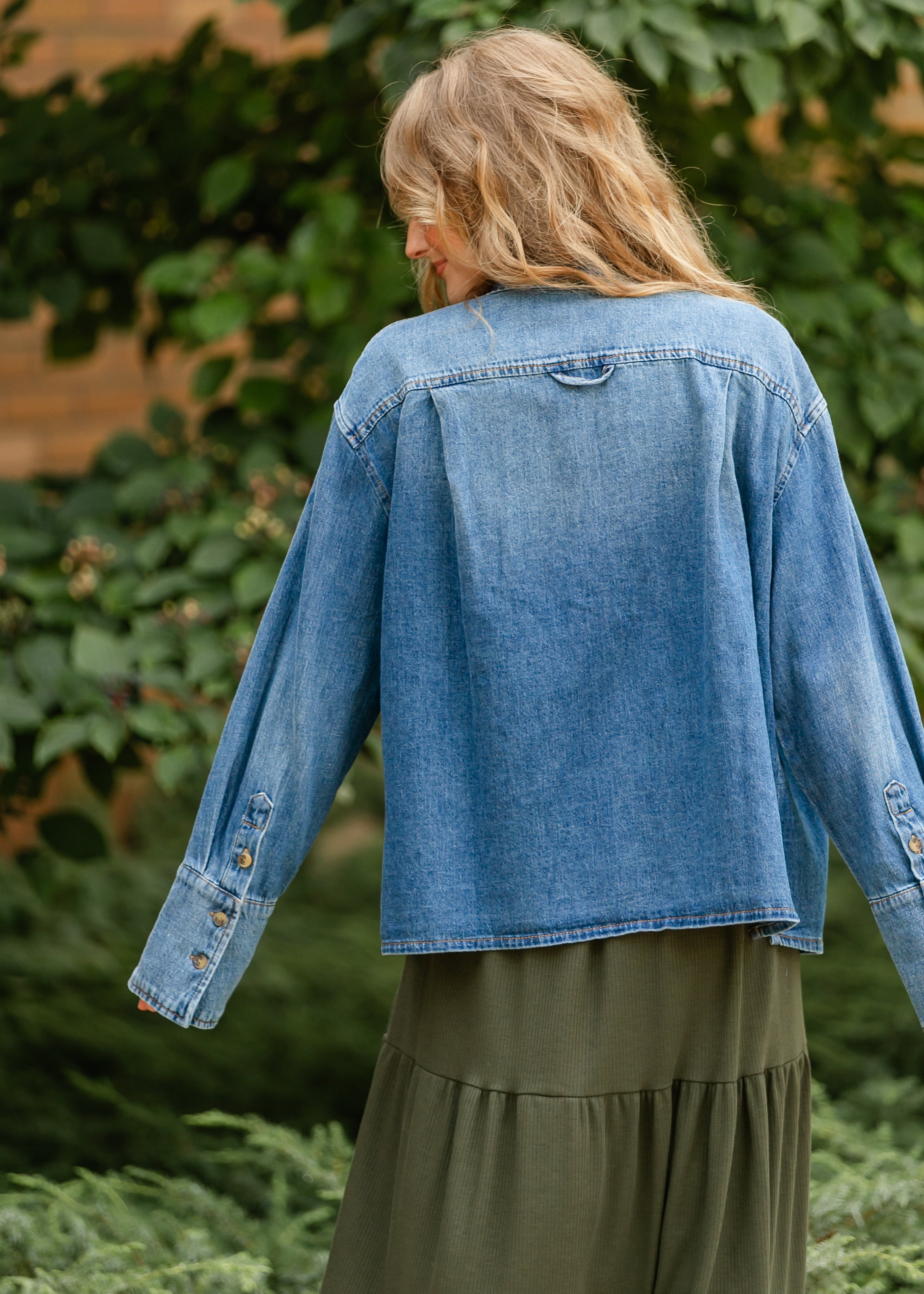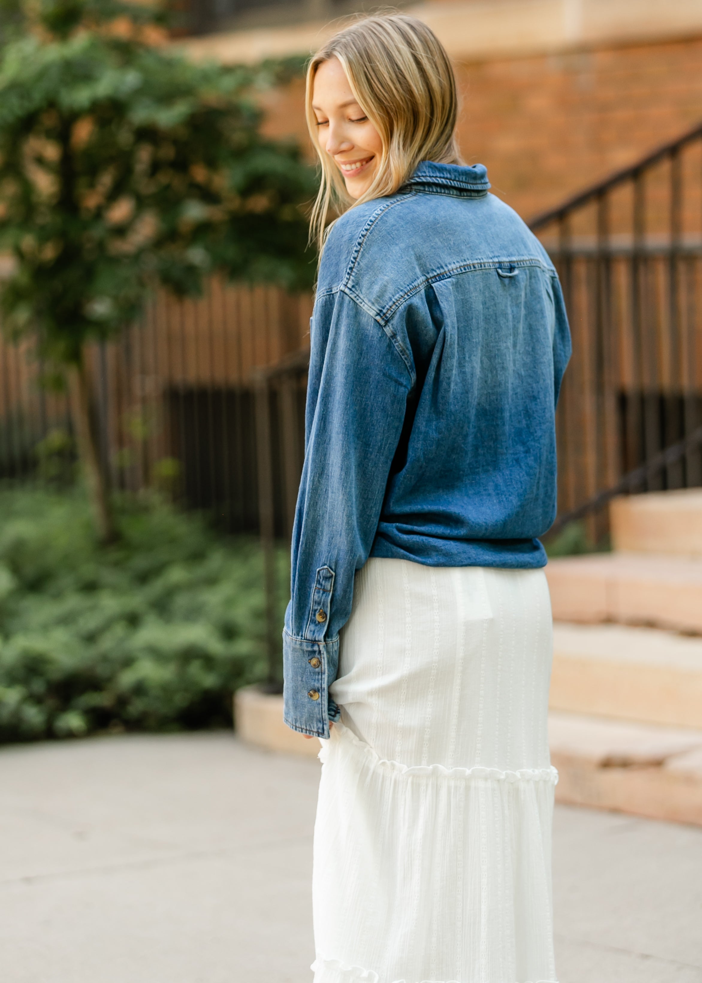 The KUT from the Kloth® Gertie Button Front Top brings vintage denim vibes to your everyday layers. Made from soft, midweight cotton with a relaxed fit, this button-down features chest pockets, cuffed long sleeves, and a classic collar. Whether tied at the waist or worn open, it’s an effortlessly cool staple with timeless versatility!
