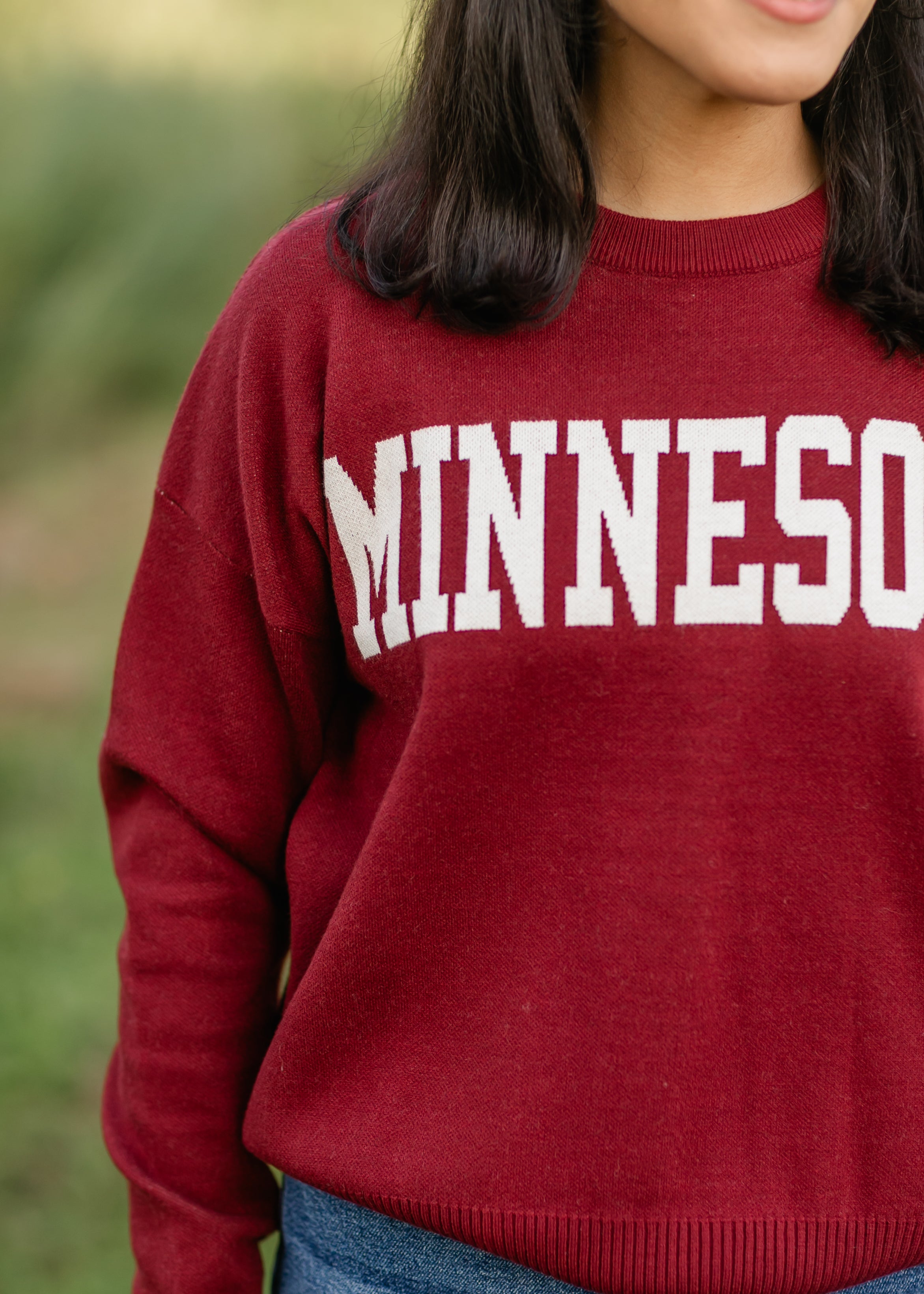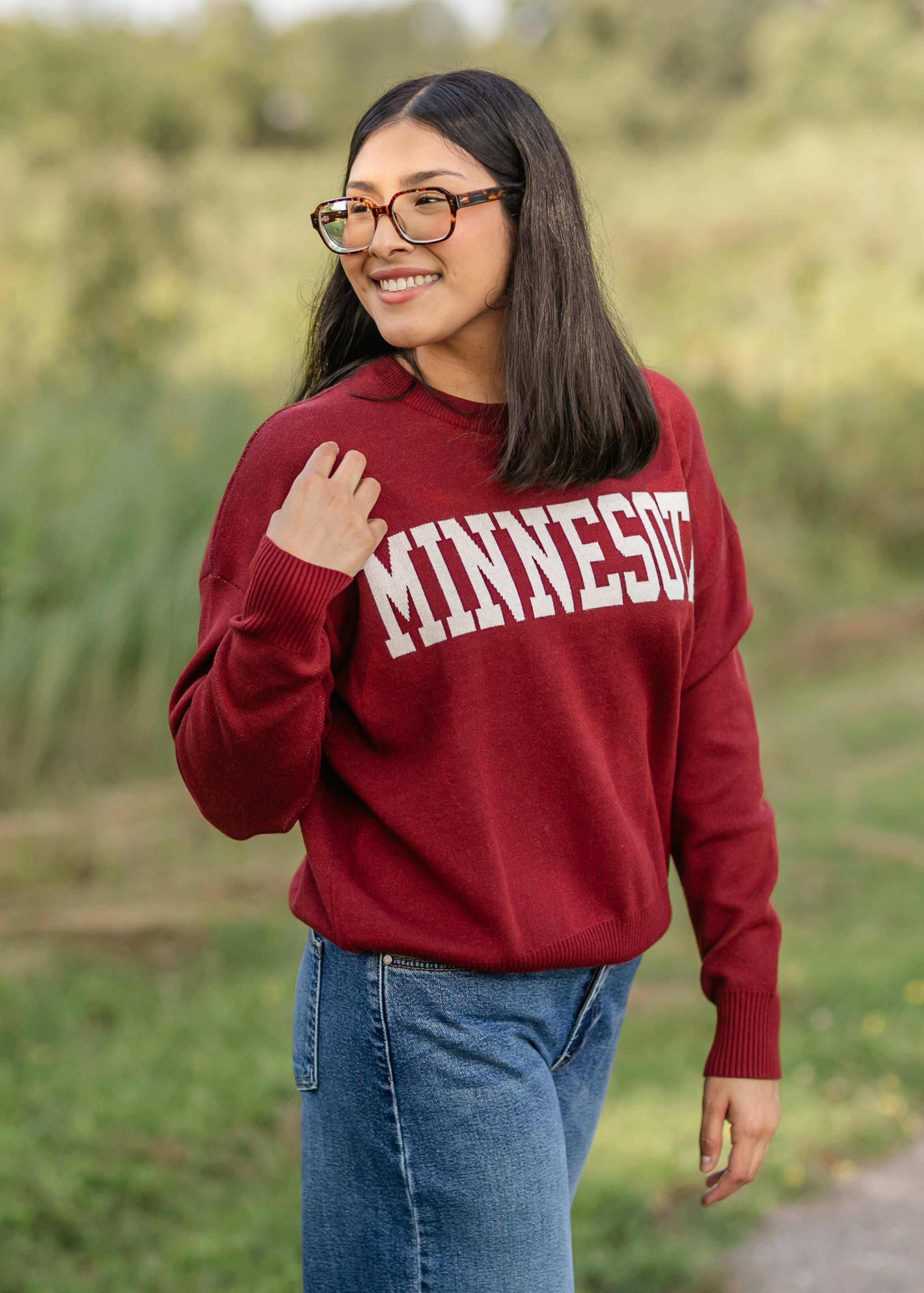 The Minnesota Logo Crewneck Sweater offers cozy comfort with a nostalgic collegiate feel, featuring a bold chest graphic that celebrates the North Star State. Crafted from a soft, mid-weight knit with ribbed edges for a polished finish, it pairs effortlessly with flowy skirts or classic denim, making it a versatile and modest staple for relaxed, everyday style!
