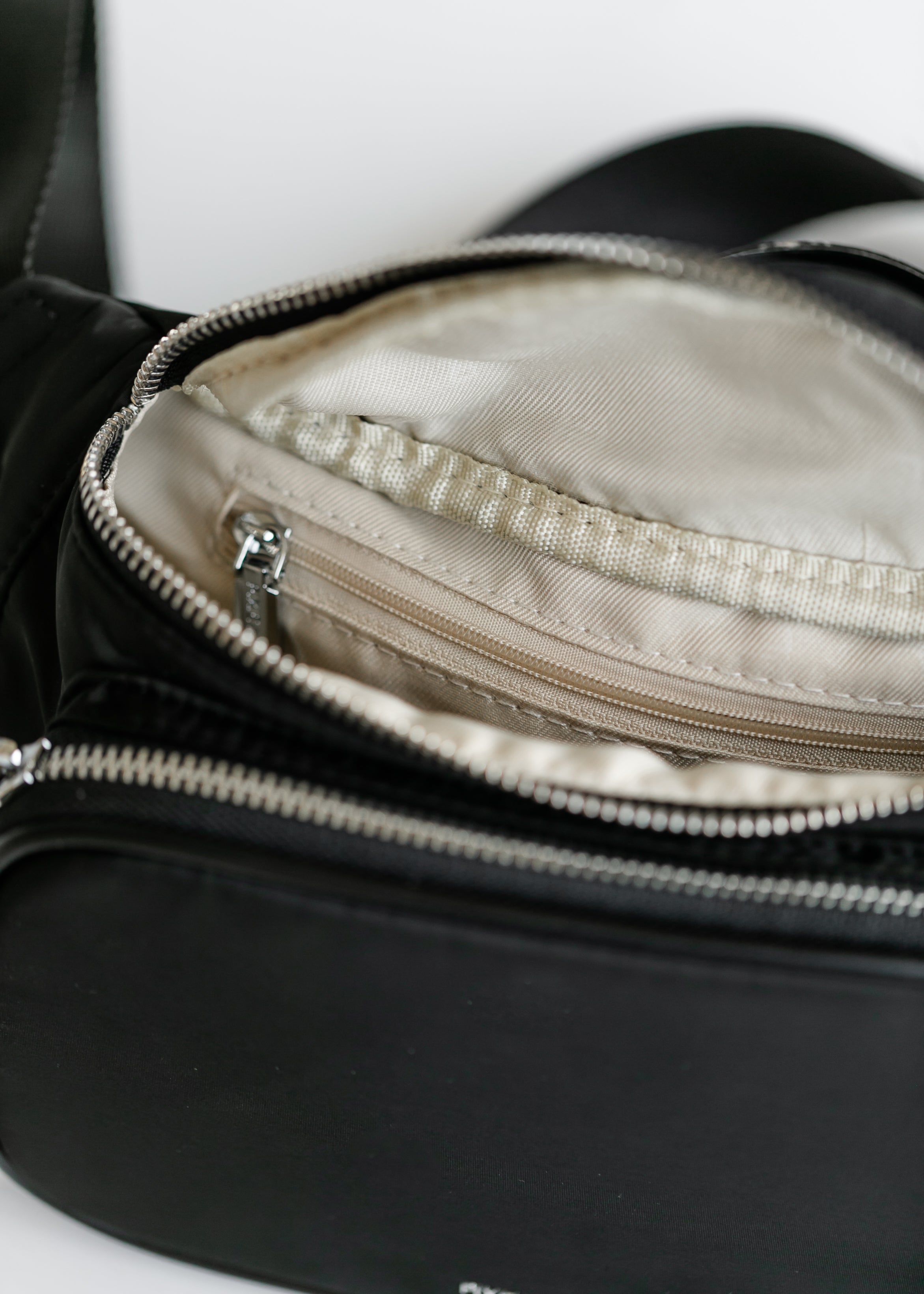 The perfect blend of style and function, this Recycled Nylon Black Belt Bag is designed for all your adventures. Its lightweight, sleek design effortlessly complements any look—whether you're going for athleisure, casual, or travel style. The exterior zip pocket provides easy access to your essentials, making it a go-to accessory for hands-free convenience on the move. Crafted from durable eco-friendly recycled nylon it wipes clean with ease. Pair it with your favorite travel dress for flights or just running errands everyday!