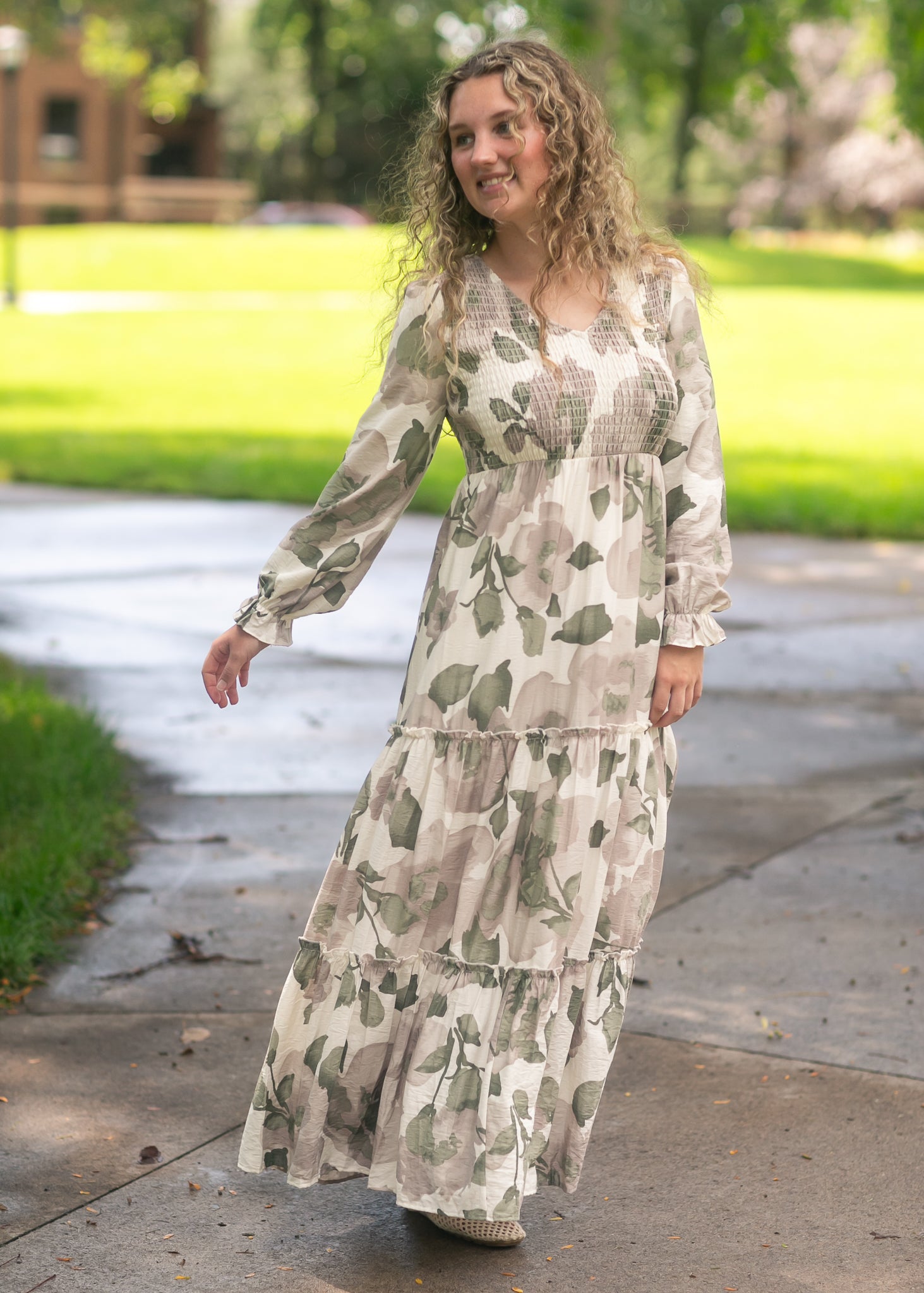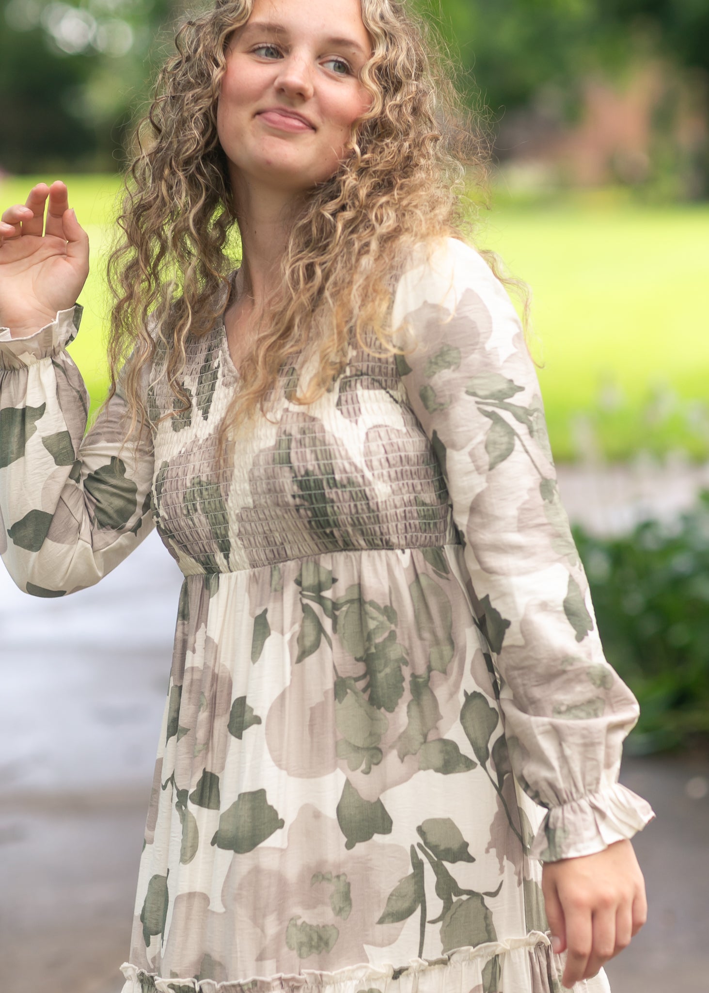 The September Long Sleeve Maxi Dress captures the softness of autumn with its delicate floral print and flowing silhouette. A smocked bodice offers comfort and modest detail, while the airy long sleeves bring a graceful touch. Perfect for golden hour walks, gatherings with friends, or layered with a cardigan as the air cools, it’s a timeless dress to carry you into the season!