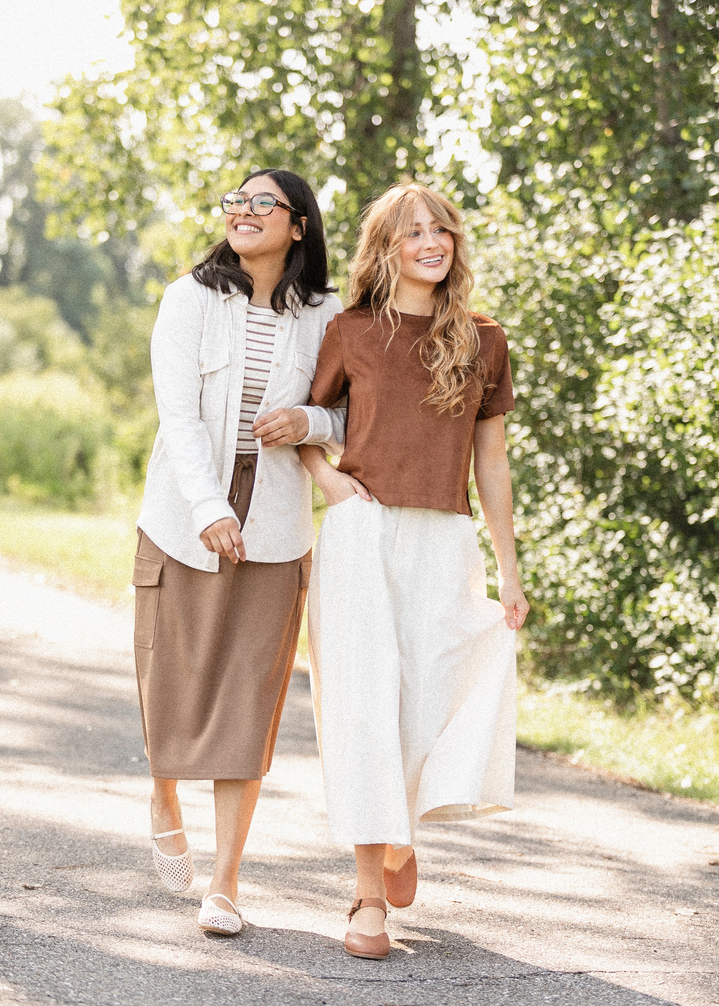 - Product Details | Faux Suede, Round Neckline, Zip-up Back, Boxy Fit