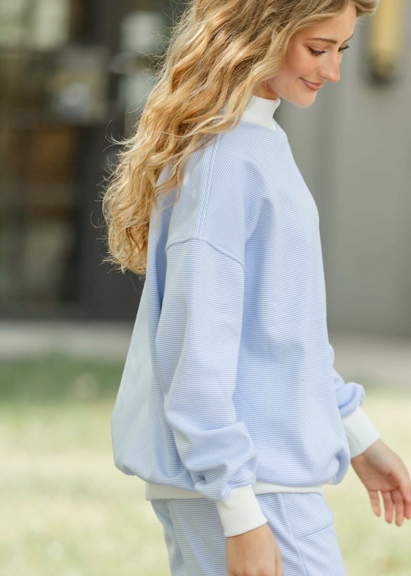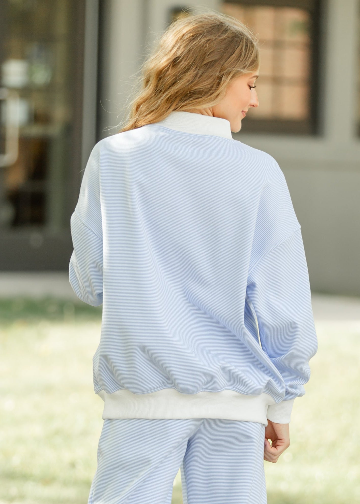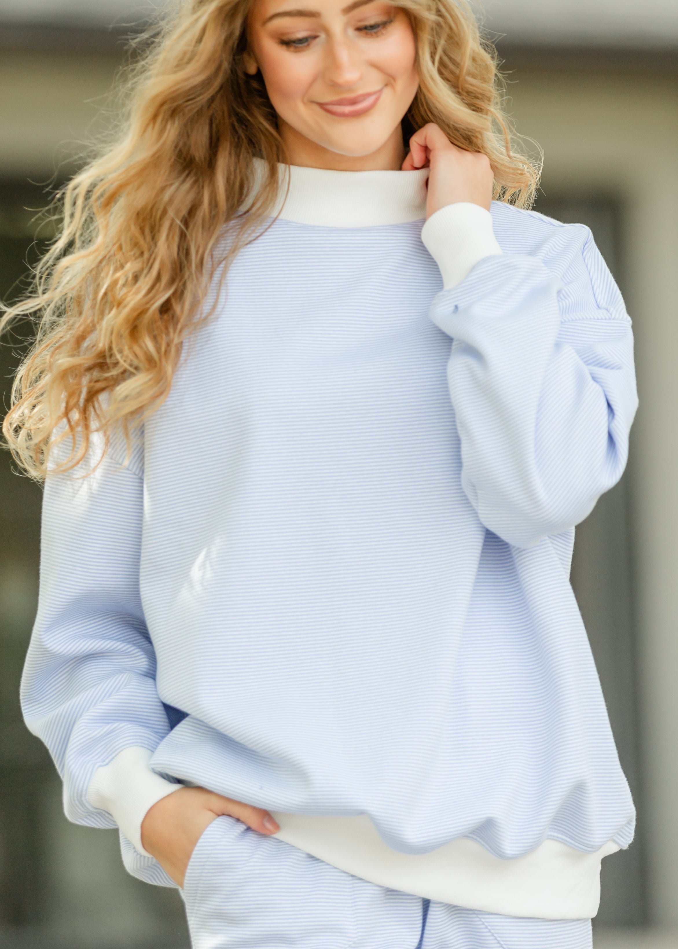 The Stripe Mock Neck Sweatshirt is the perfect blend of comfort and modest style. Crafted from a soft, textured fabric with subtle stripes, it features a relaxed fit and contrasting ribbed trim that adds a gentle touch of detail. Ideal for cozy mornings or quiet weekends, this timeless top pairs beautifully with denim or relaxed skirts for effortless grace.