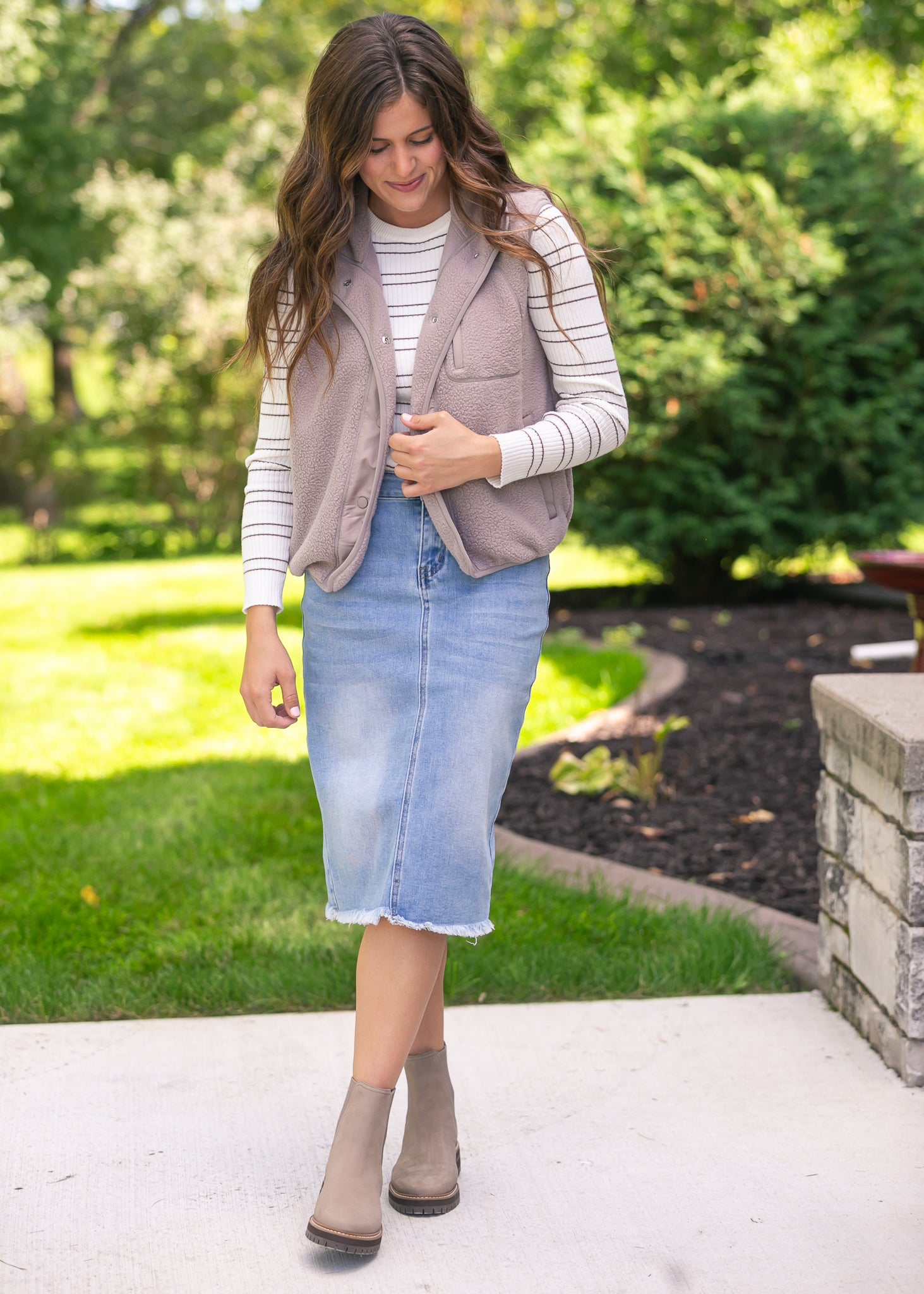 The Thermal Soft Fleece Vest is the cozy layer you’ll reach for when crisp mornings call for extra warmth. Designed with plush fleece, a zip front, and deep pockets, it delivers comfort without sacrificing polish. Slip it over a lightweight knit with denim or pair it with a flowy skirt for a versatile, modest look that carries you through the season.