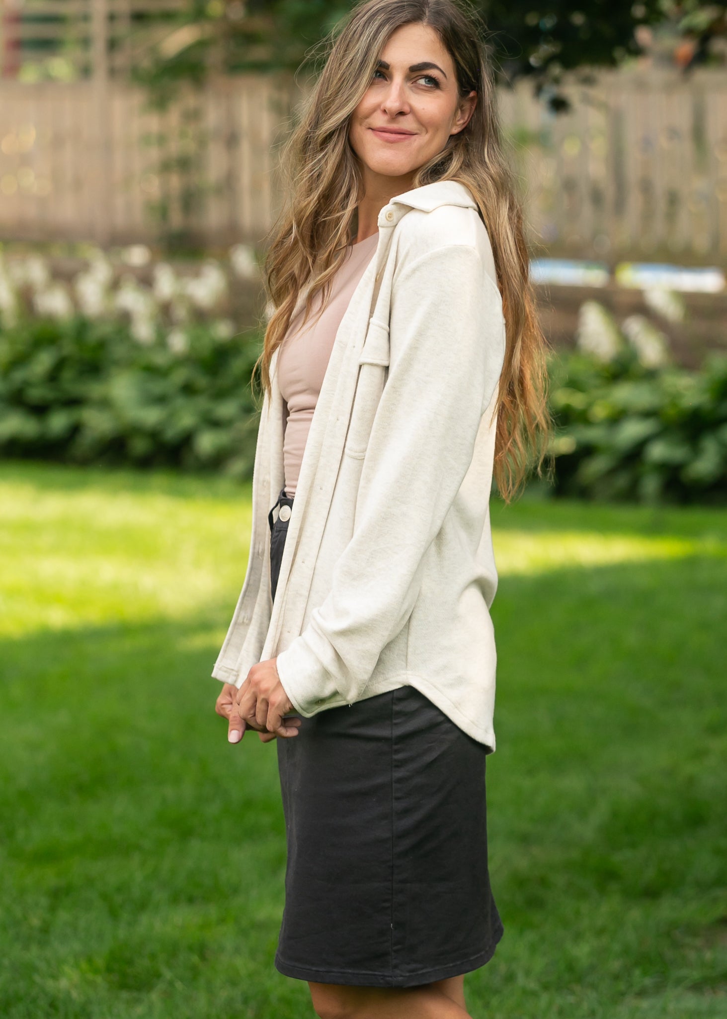 The Thread & Supply® Cassian Top is a cozy button-down layer designed with a soft brushed finish and functional front pockets. Its relaxed fit makes it perfect for wearing open over tanks or tees, or buttoned up for an easy polished look. Pair it with denim skirts or casual dresses for versatile styling that works from errands to coffee dates with ease!