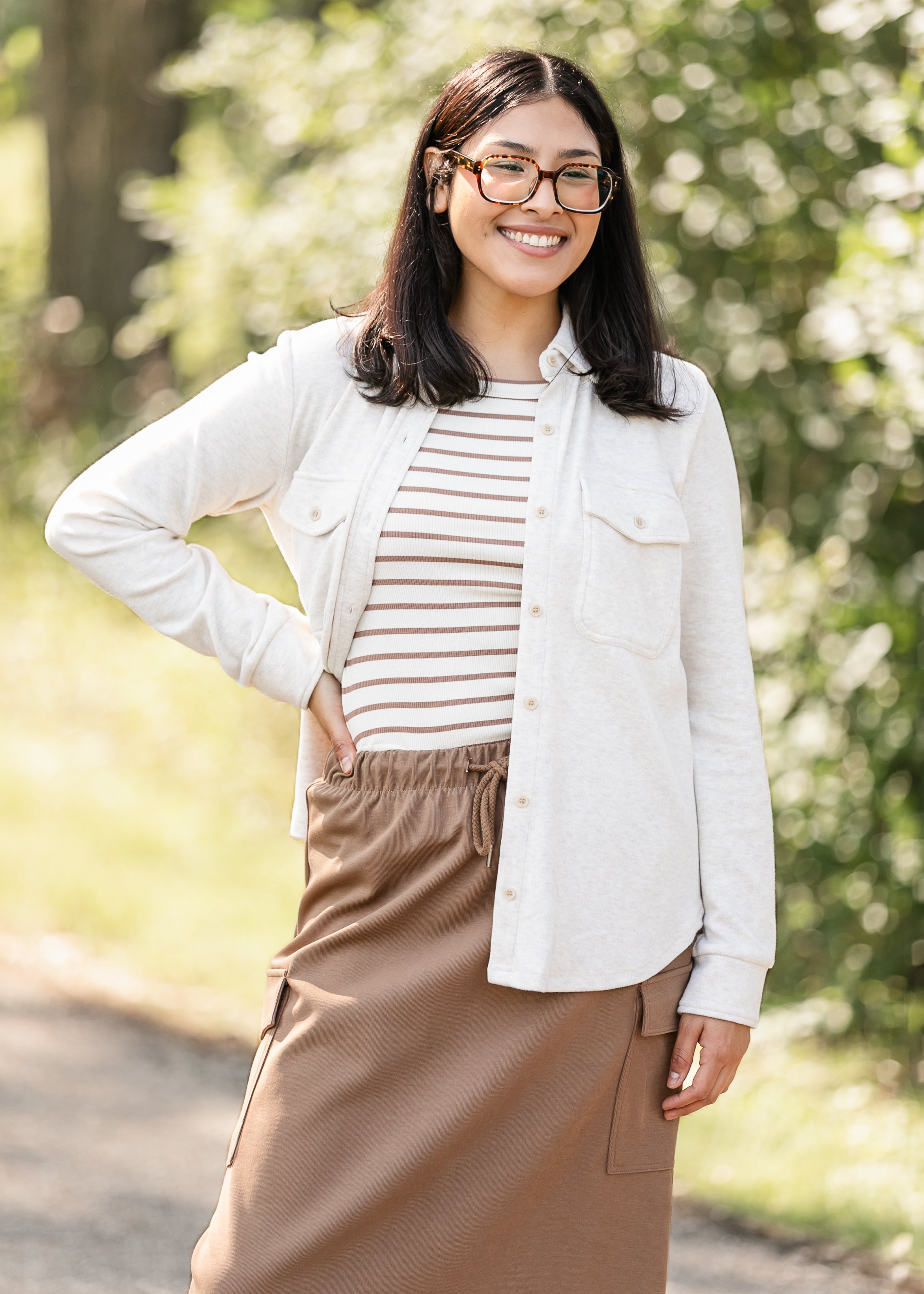 - Color | White, Taupe, Cream/Brown Stripe