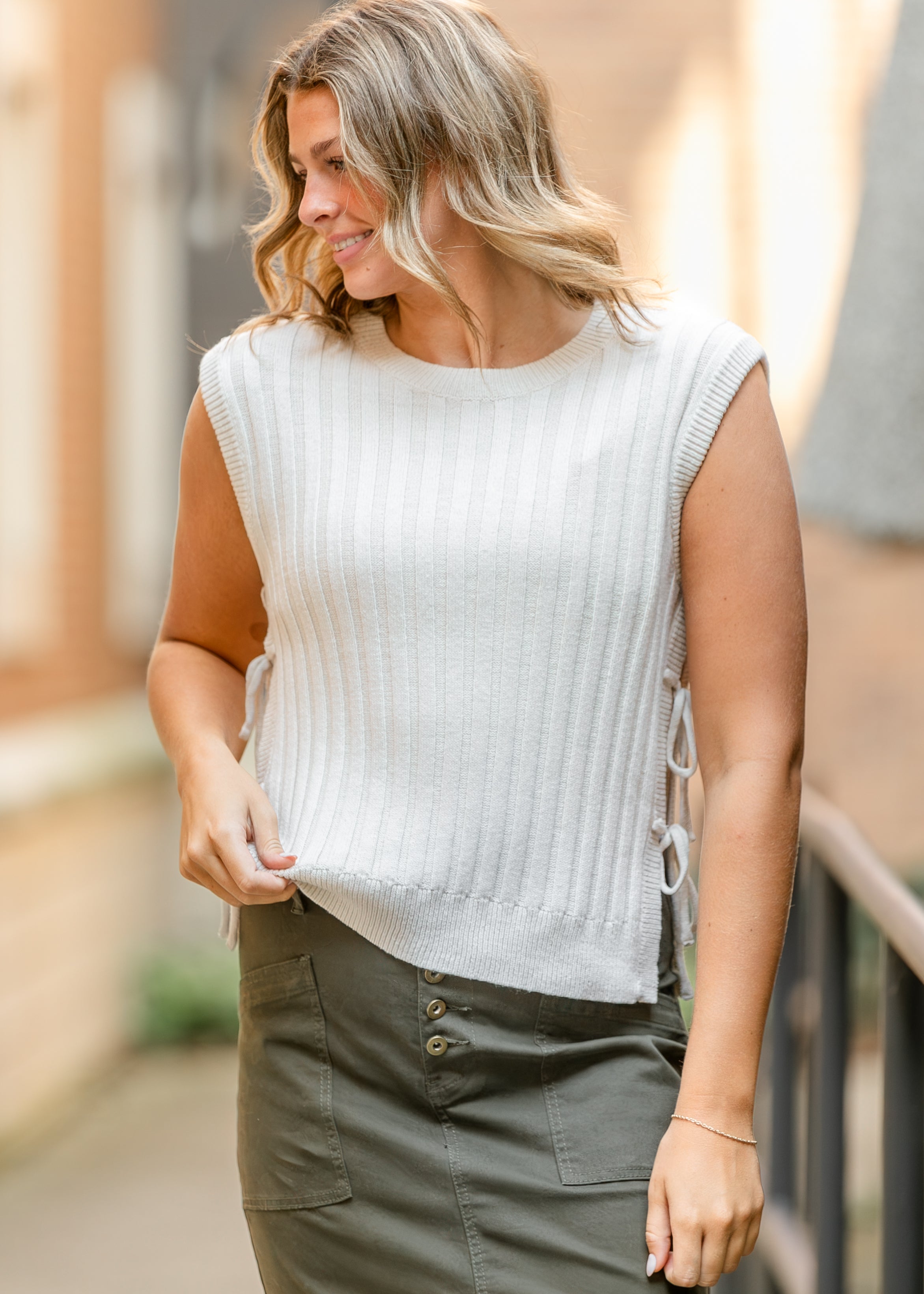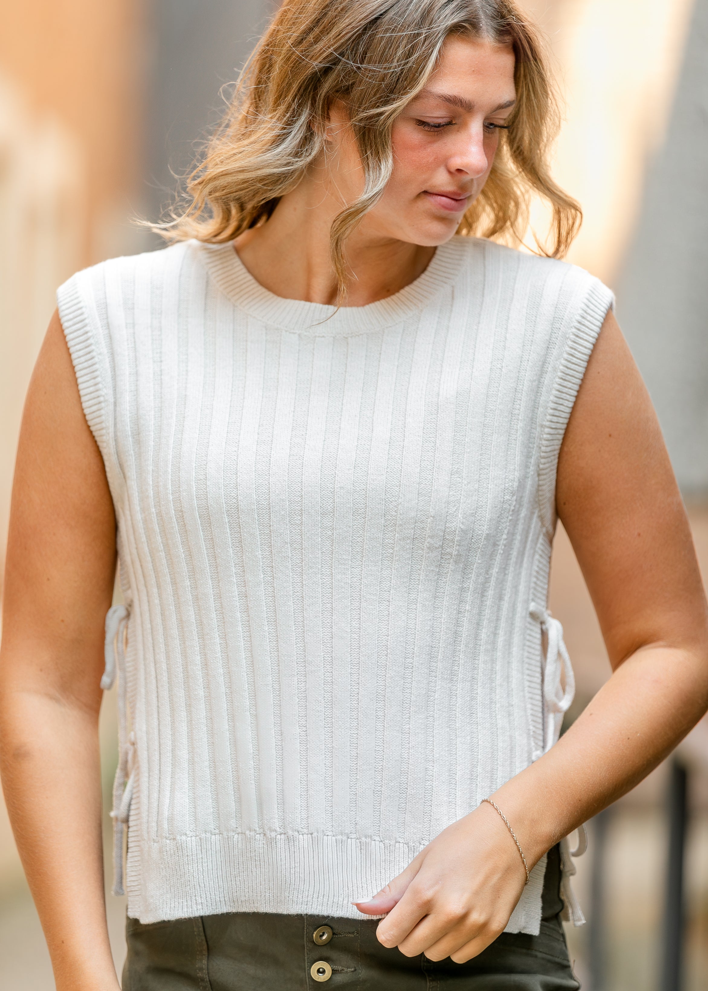 - Product Details | Ribbed, Side Ties, Round Neckline, Knit