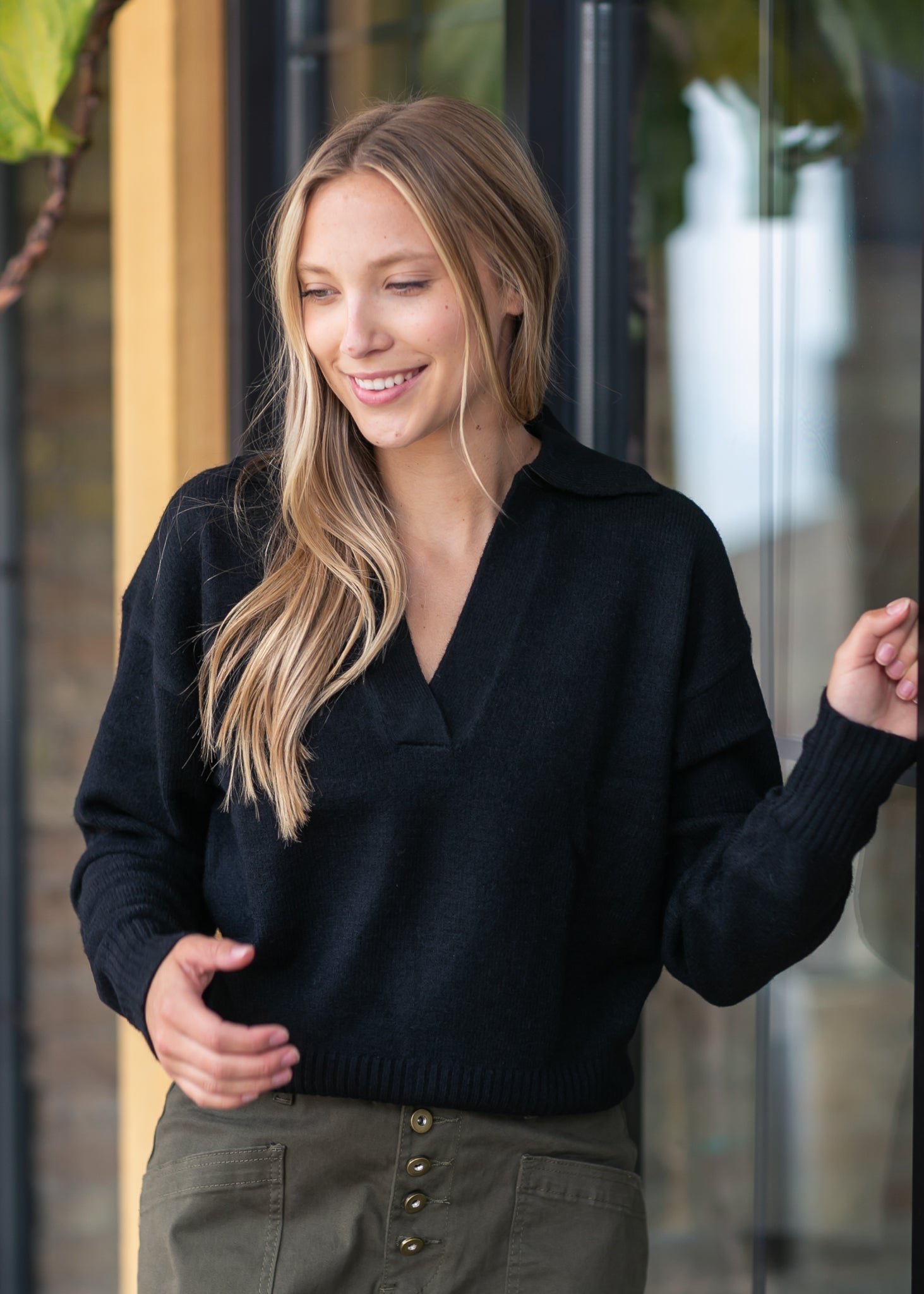 The V-neck Collared Black Sweater blends classic sophistication with cozy comfort. Featuring a soft knit, subtle collar, and modest V-neckline, it’s a versatile piece perfect for layering over flowy skirts or pairing with structured denim. Its timeless black hue makes it an effortless staple for elevating everyday looks while keeping your style warm and refined.