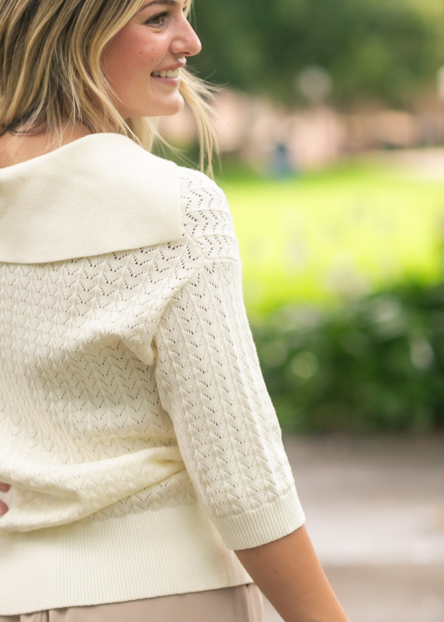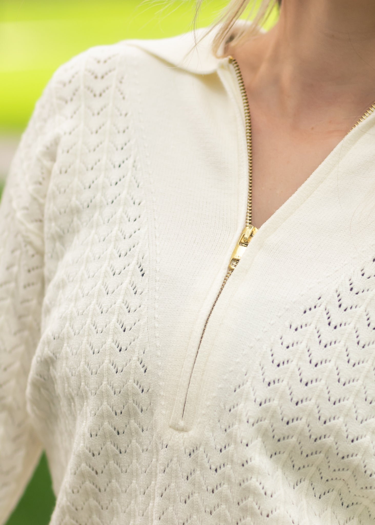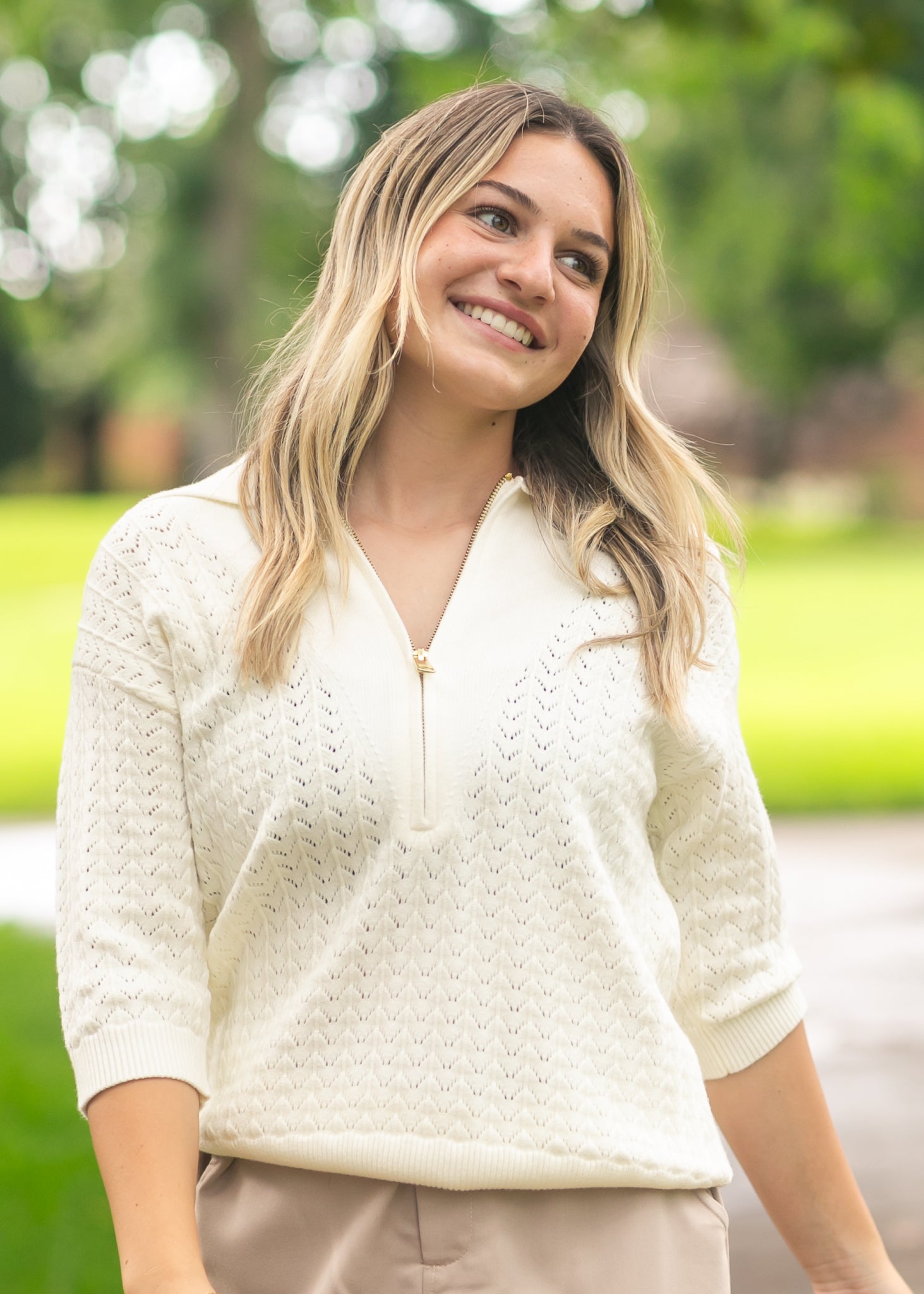 - Product Details | Knit, Polo Collar, Half-zip, Gold Hardware, Ribbed Edges