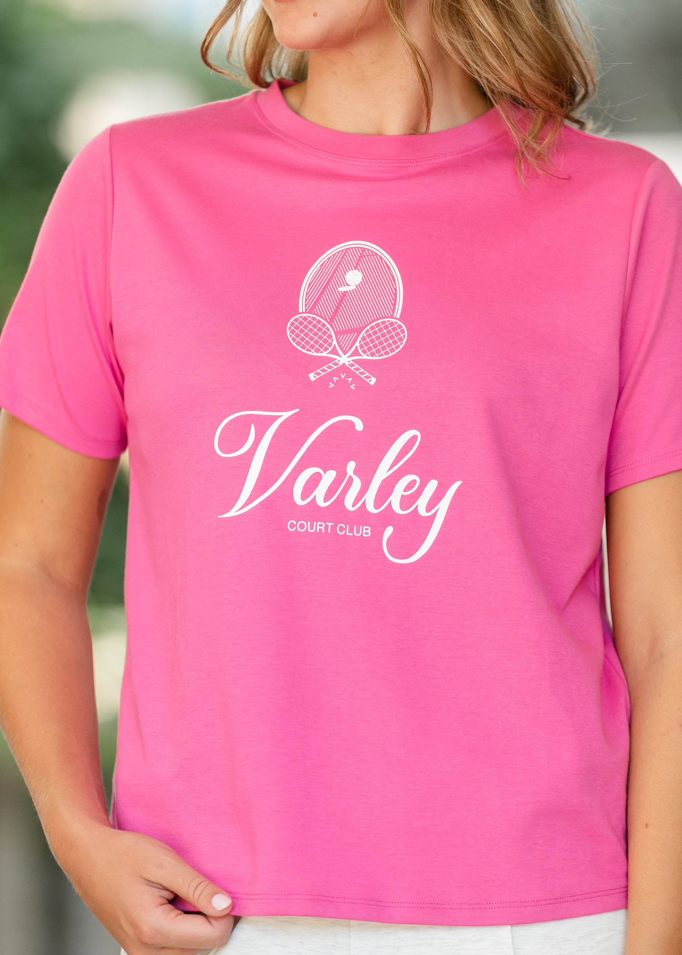 The VARLEY® Coventry Branded Short Sleeve Tee is crafted from soft Pima Cotton Pique for everyday comfort. Featuring a classic, standard fit, this tee draws inspiration from vintage varsity style and is finished with a bold racquet insignia and Varley branding on the chest. Perfect for pairing with activewear or casual outfits for an effortlessly sporty look!