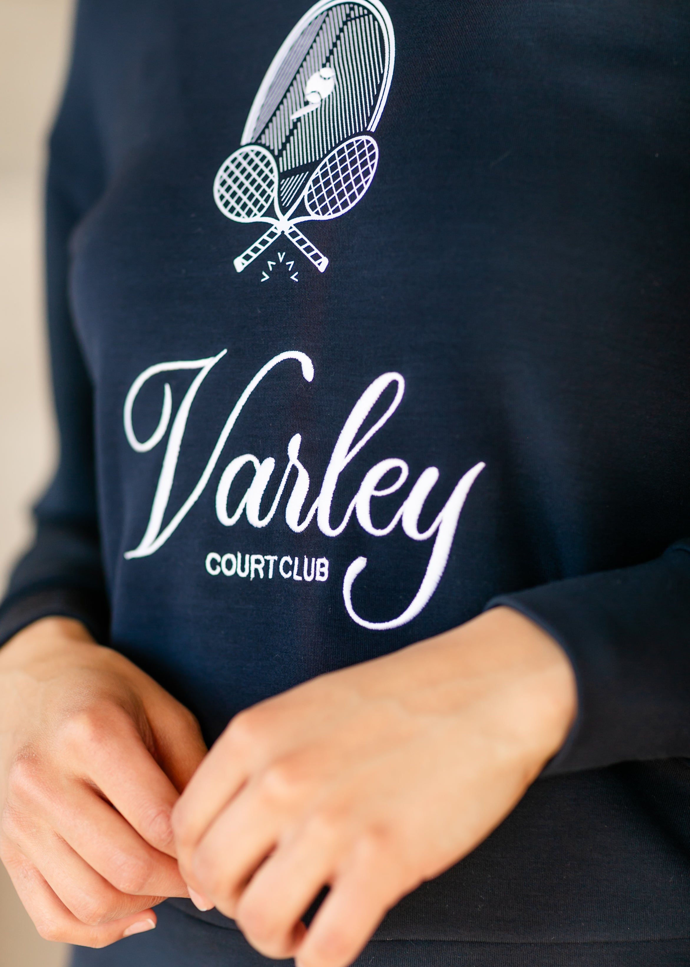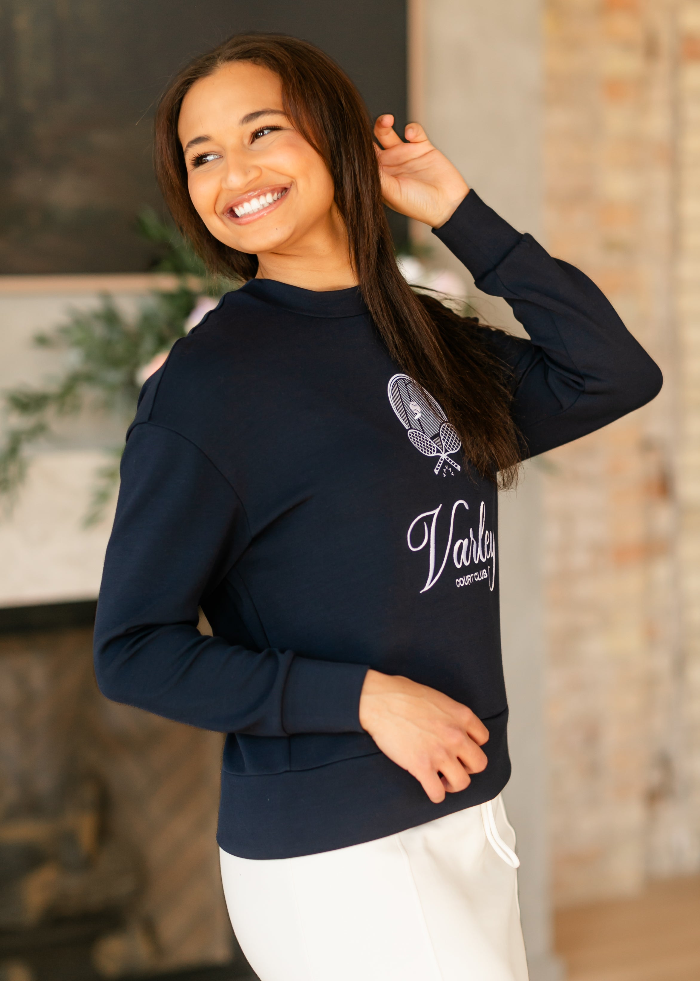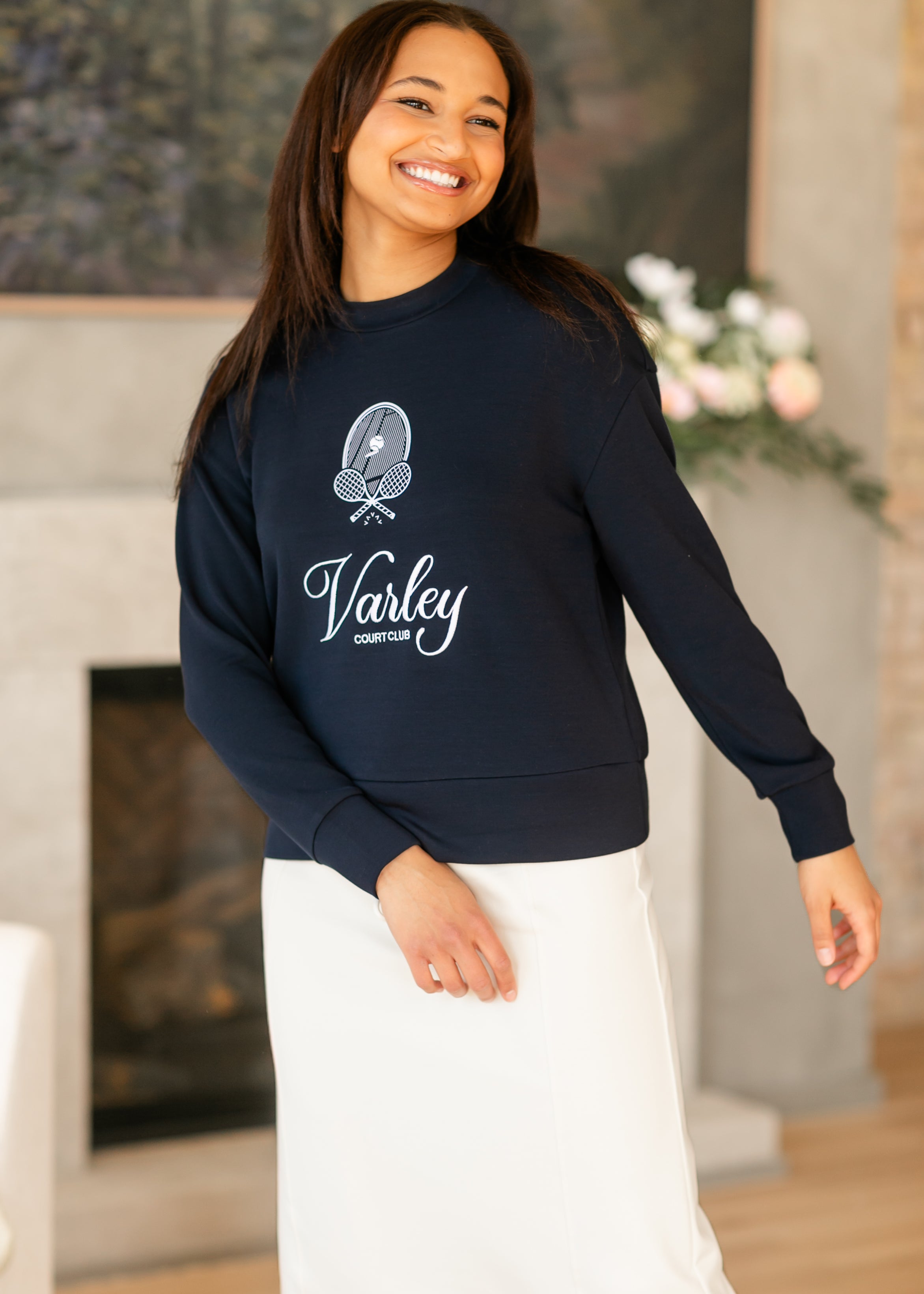 The VARLEY® Rasco Namesake Crewneck Sweatshirt is a cozy, everyday essential with a modest and relaxed fit. Made from ultra-soft DoubleSoft® fabric, this casual layer brings comfort and versatility to your wardrobe. Featuring Varley’s signature court club logo, it’s perfect for layering over your favorite modest skirts or dresses for a laid-back yet polished look!