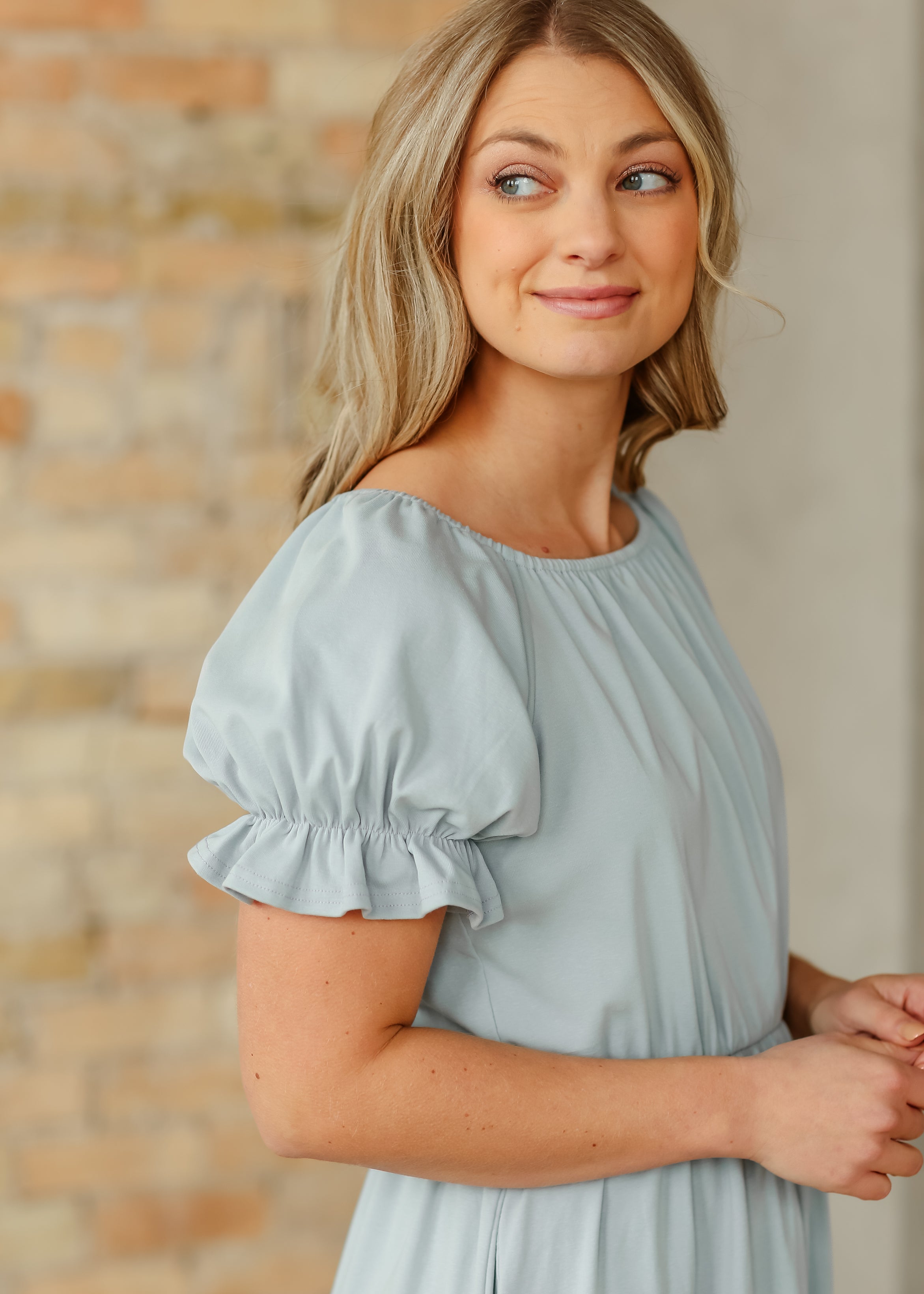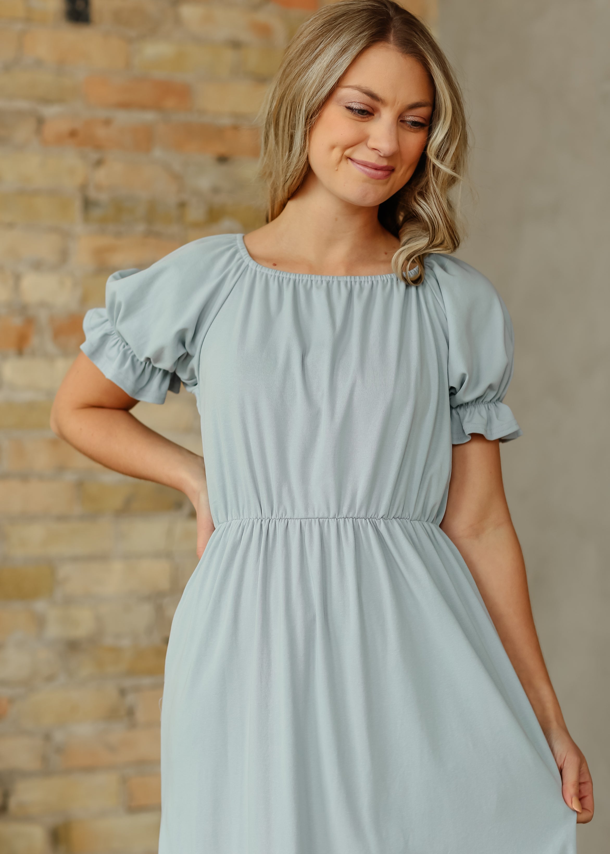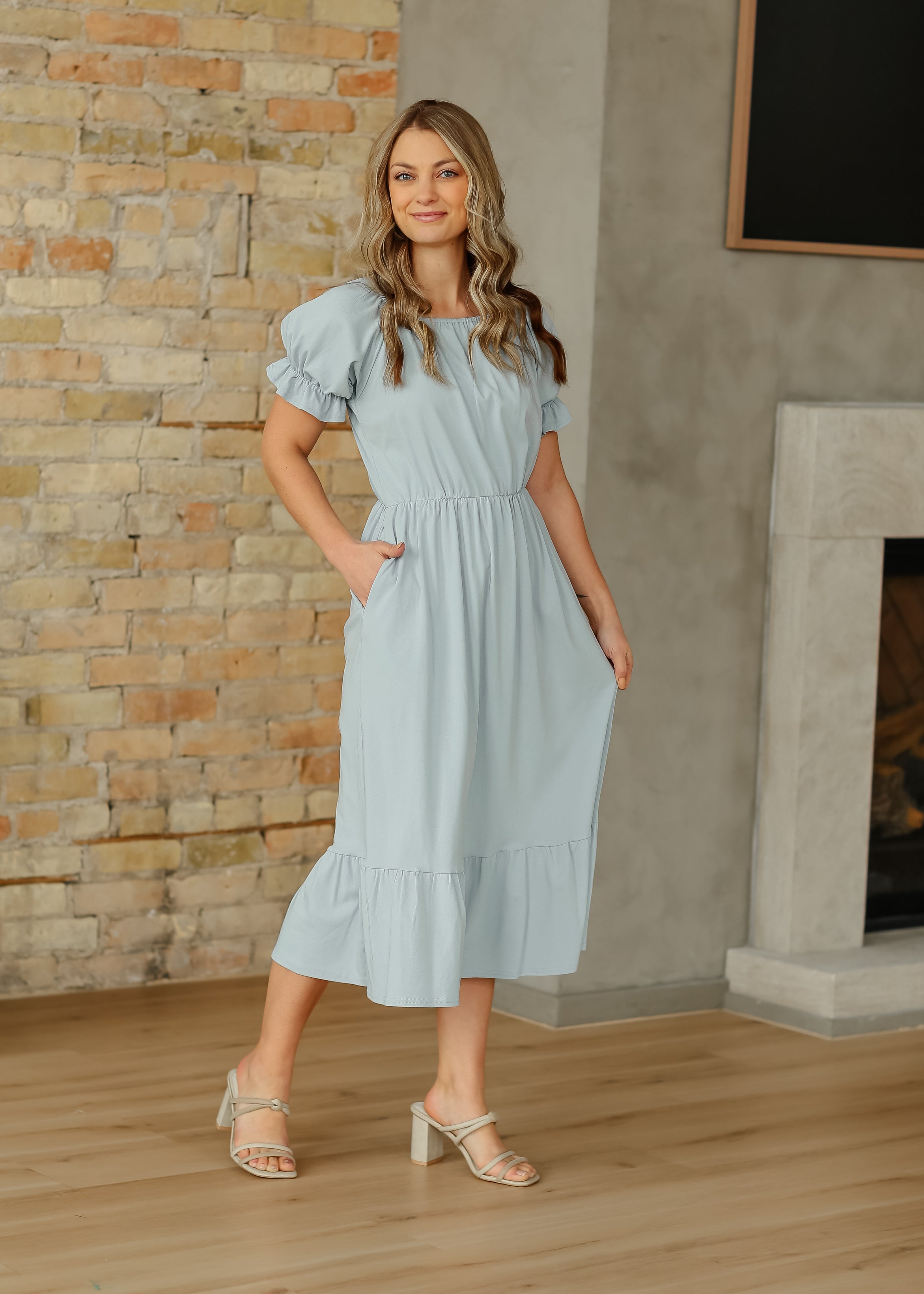 The Amy Puff Sleeve Midi Dress is an Inherit Design that features a modest square neckline, gathered puff sleeves, a stretchy waistband, and a ruffle hem for easy elegance. With hidden pockets and a nursing-friendly fit, this dress blends practicality with feminine style, making it an effortless pick for everyday wear or a dressed-up moment!