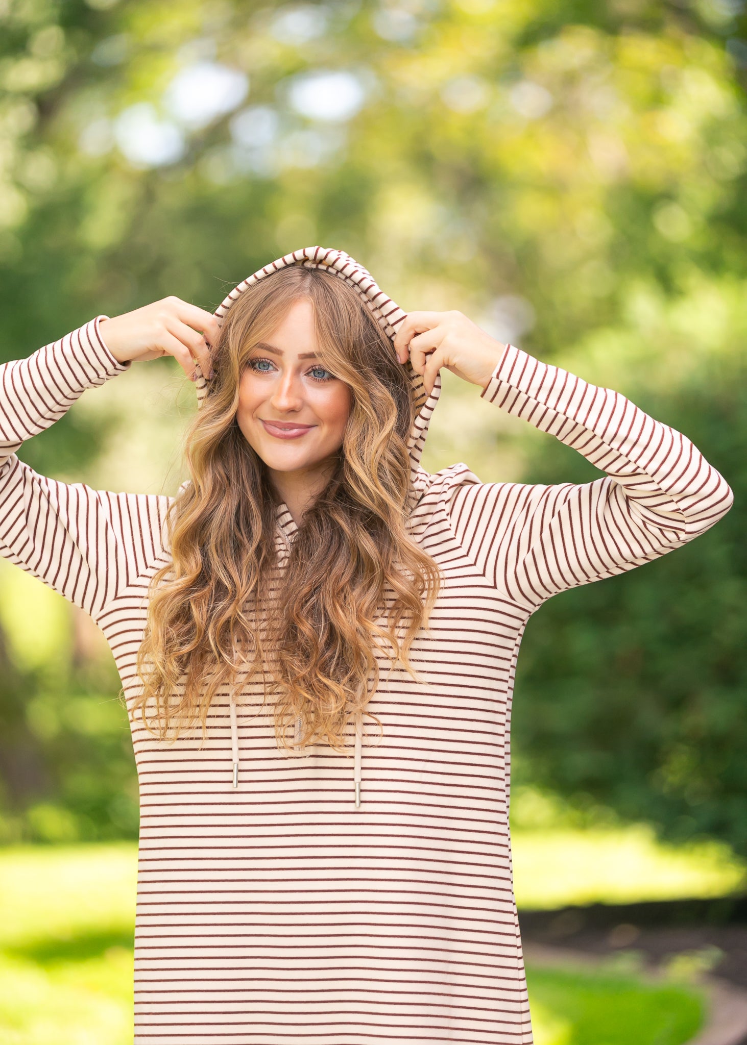 This casual Cayla Striped Lightweight Hooded Midi Dress is a soft, lightweight dress that can bring you from your morning errands to evening dinner with family and friends. This dress also features a zipper front making it nursing-friendly. Pair with your favorite cozy boots or sneakers for an elevated loungewear look!