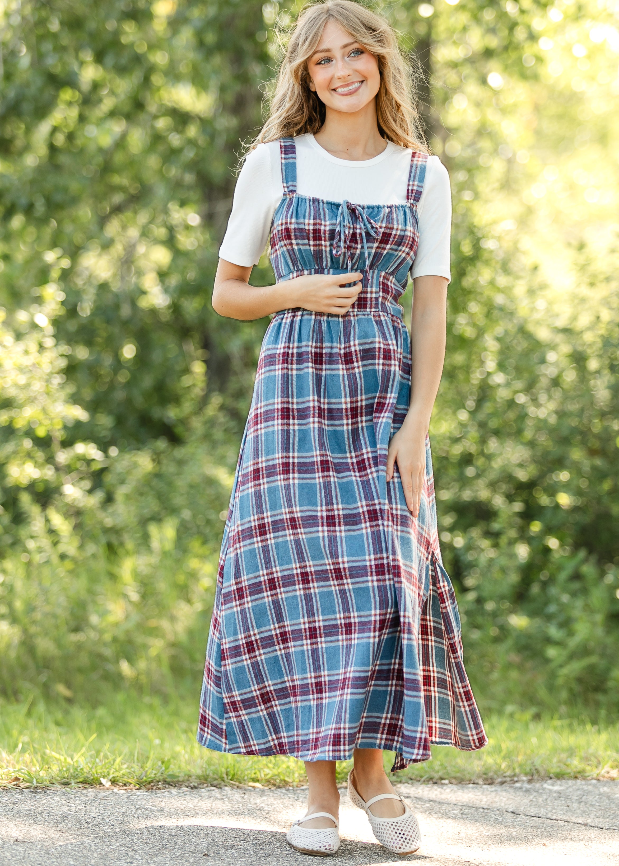 The Flannel Cure Milkmaid Midi Dress is a sweet nod to timeless style with its plaid pattern and feminine fit. Designed with wide straps, a gathered bodice, and a flattering waistline, it brings effortless comfort and modest elegance. Pair it with a simple tee and flats for everyday wear or style with denim for a cozy layered look!