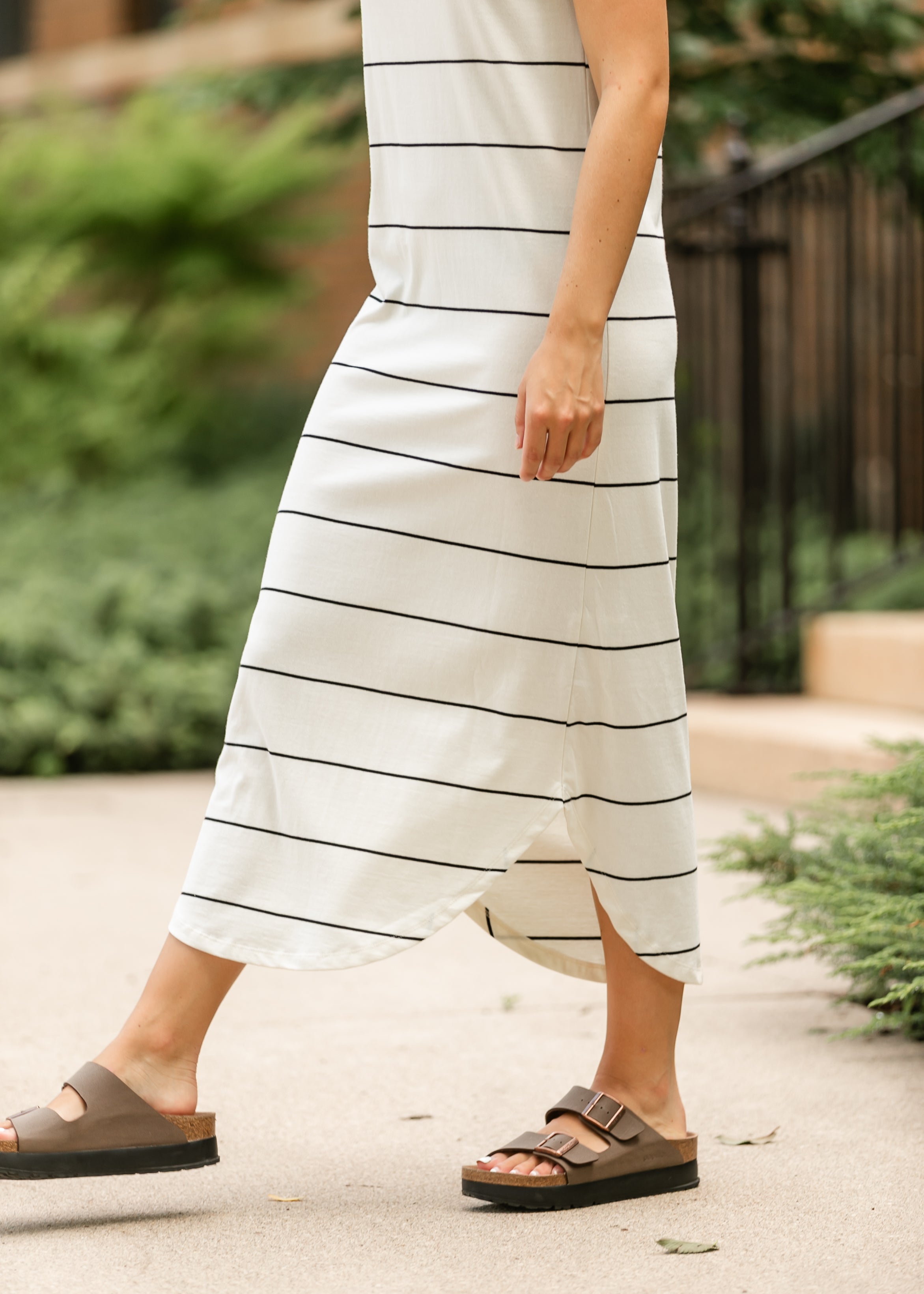 Meet your new casual favorite. The Z Supply® Calabasas Striped Midi Dress features soft, breathable knit fabric and an easy fit that flatters every frame. Its classic stripe pattern, capped sleeves, and side slit bring a timeless feel with all-day comfort. Whether you're out and about or winding down, this dress effortlessly moves with you!