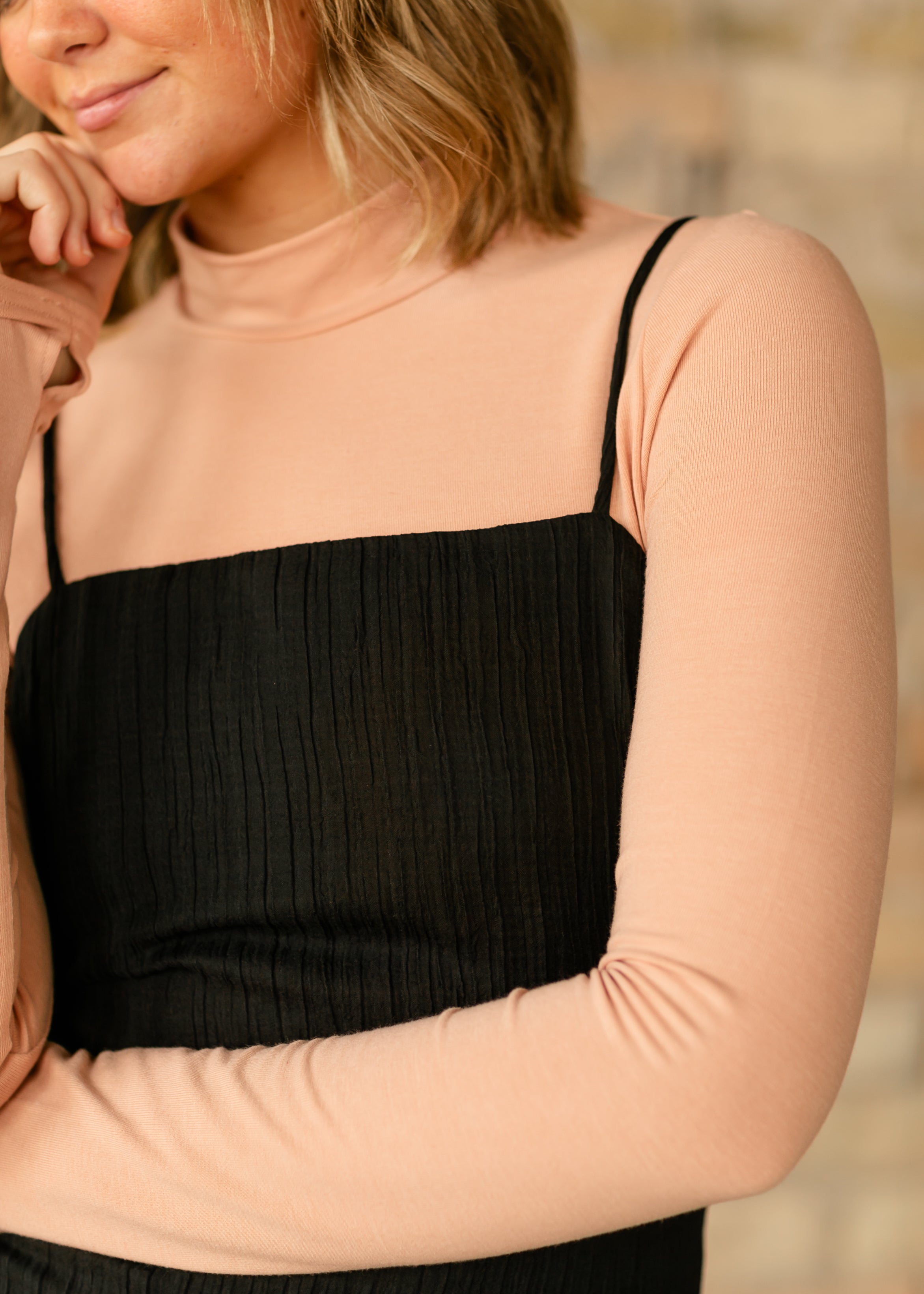 The Black Sleeveless Crinkle Maxi Dress exudes effortless elegance with its sleek, textured crinkle fabric and timeless silhouette. Featuring adjustable spaghetti straps and a flattering straight neckline, this dress is designed to move with you, from casual gatherings to formal occasions. The flowy maxi length pairs beautifully with layers or stands out on its own, making it a versatile addition to your wardrobe. Style it with a long-sleeve top underneath or a jacket over it for a modest and chic layered look!