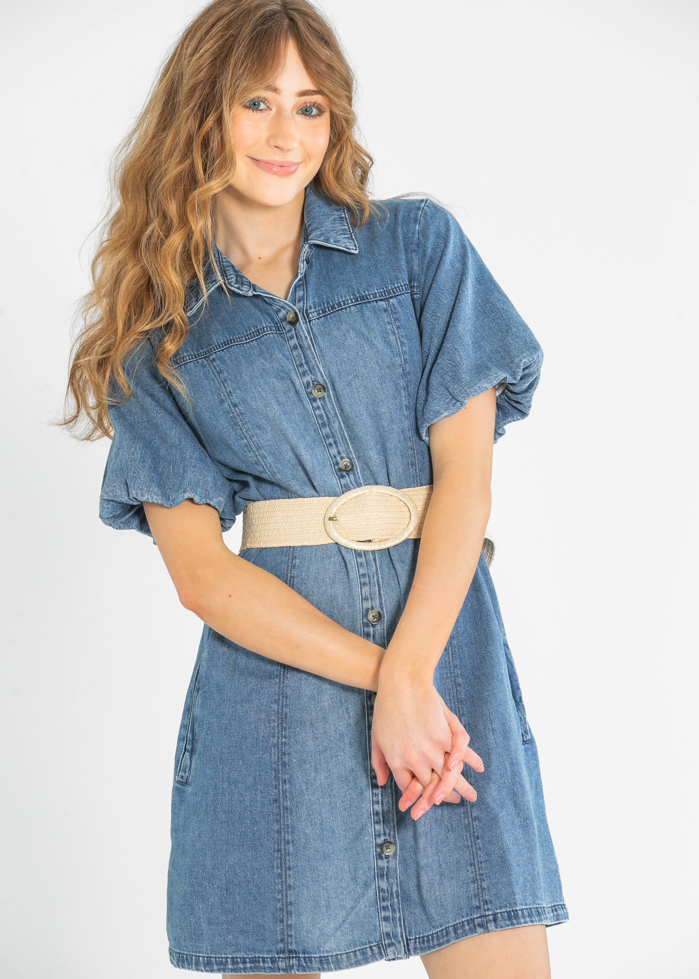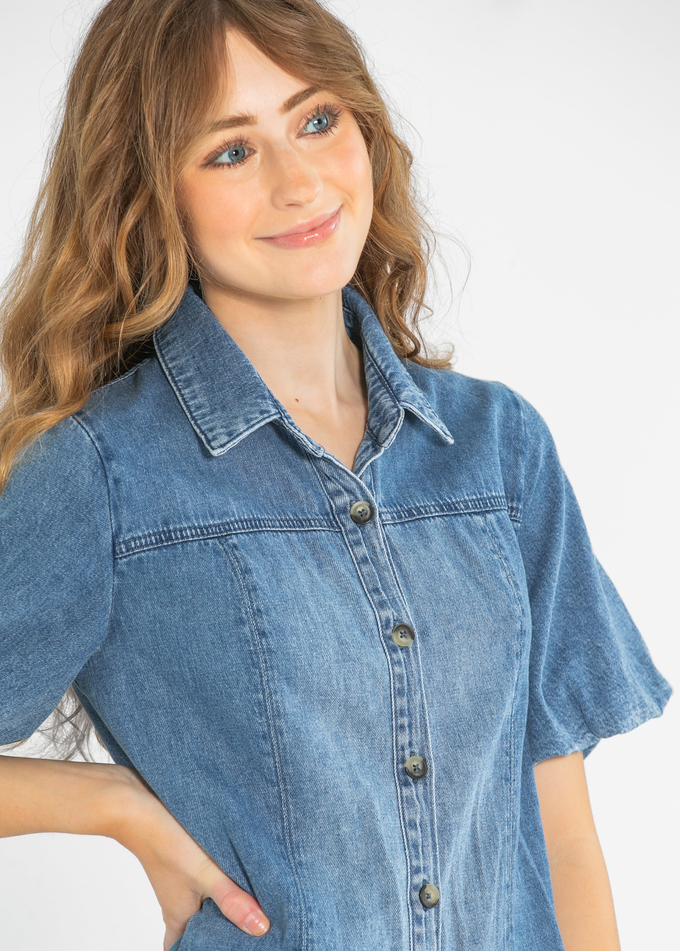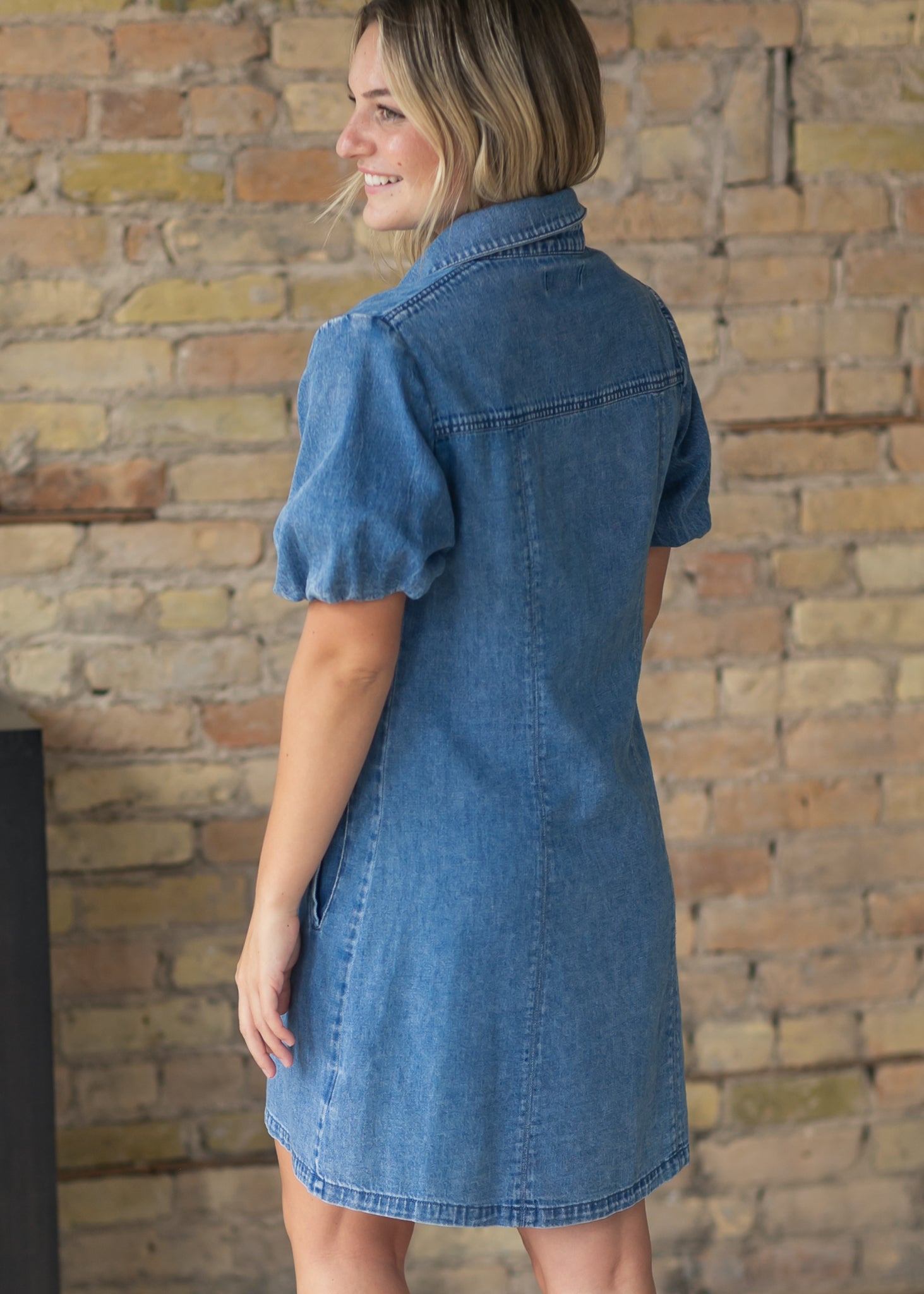 Crafted for classic comfort with modern ease, the Kut from the Kloth® Blanca Denim Shirt Dress is your go-to for effortless styling. Featuring soft puff sleeves, a full button-down front, and handy pockets, this versatile piece is perfect layered or worn solo. The relaxed fit and vintage-inspired wash make it a timeless favorite you'll reach for again and again.