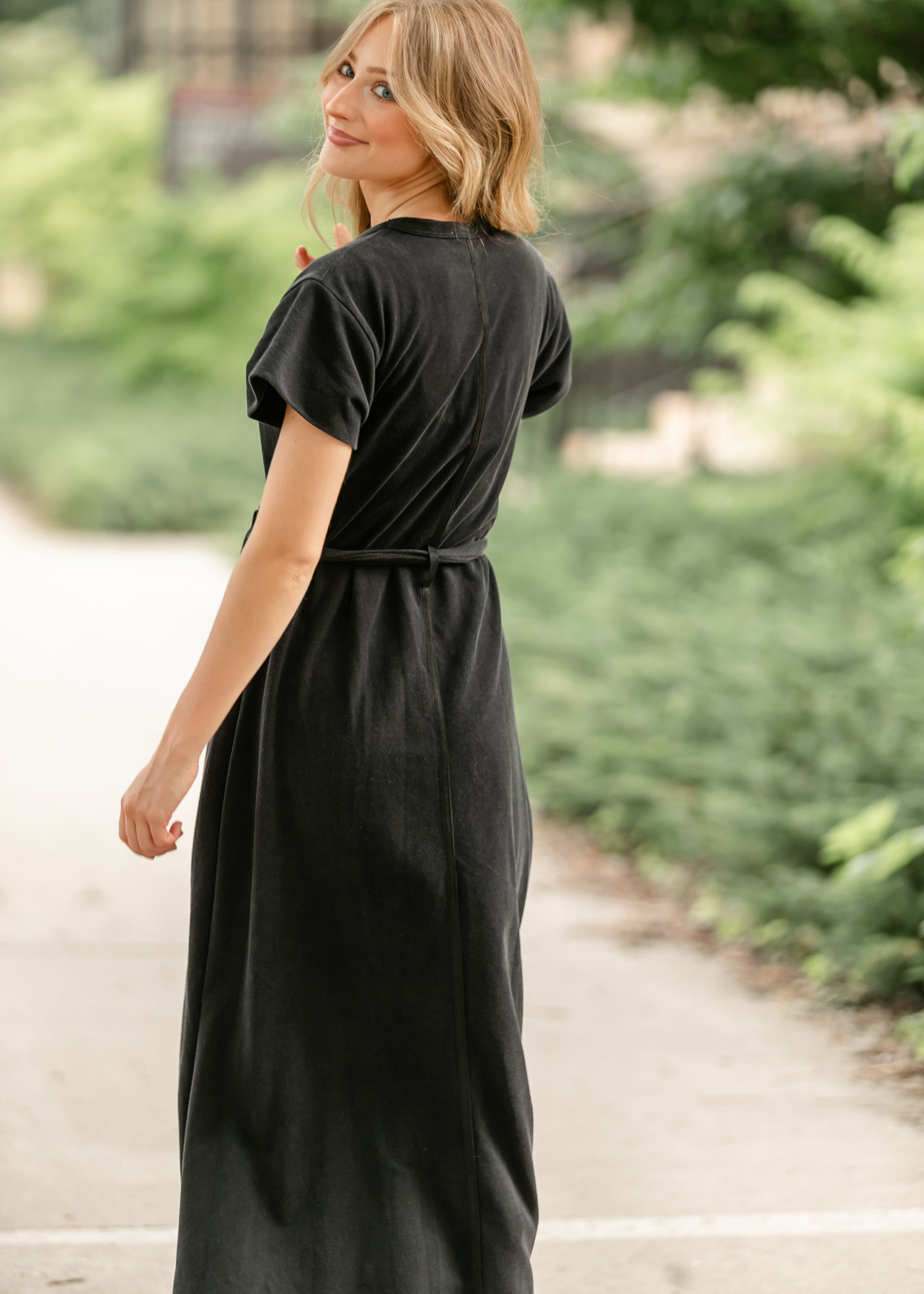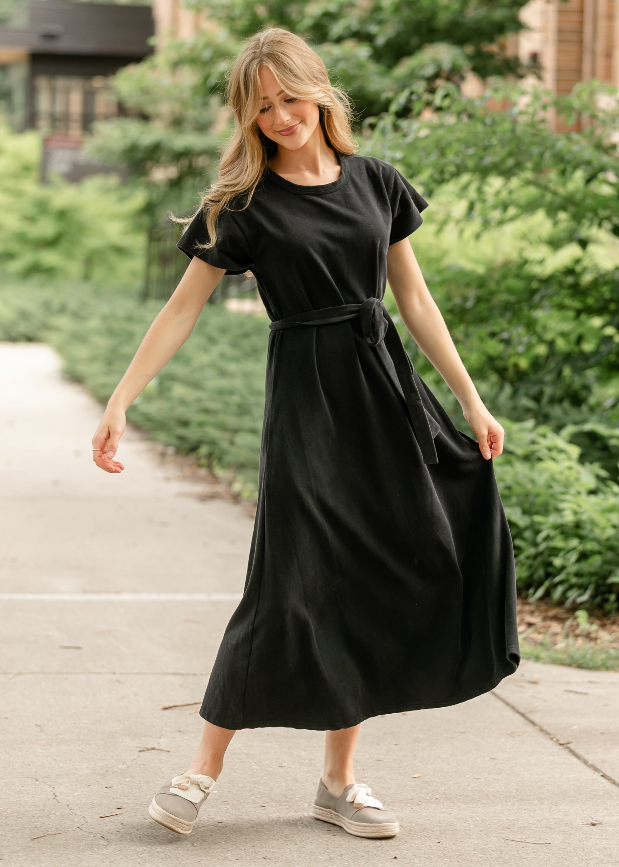 This Washed Knit Waist Tie Midi Dress blends softness with structure in the most effortless way. Made from a lived-in knit with an easy drape, it features cuffed sleeves, a modest neckline, and a self-tie waist to flatter your shape. Finished with hidden pockets, this everyday favorite offers comfort, movement, and just the right amount of polish.
