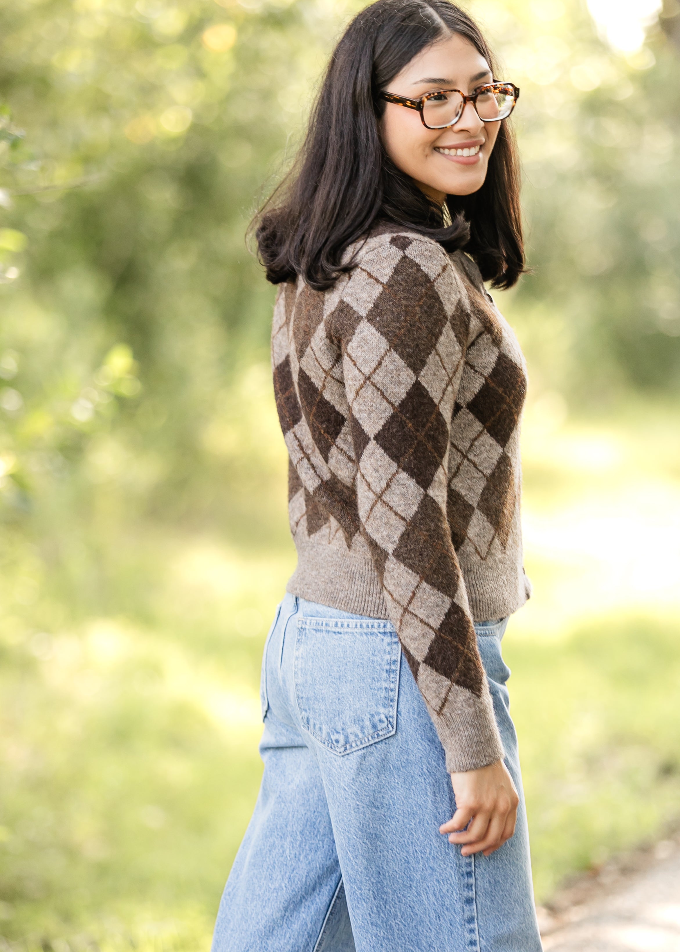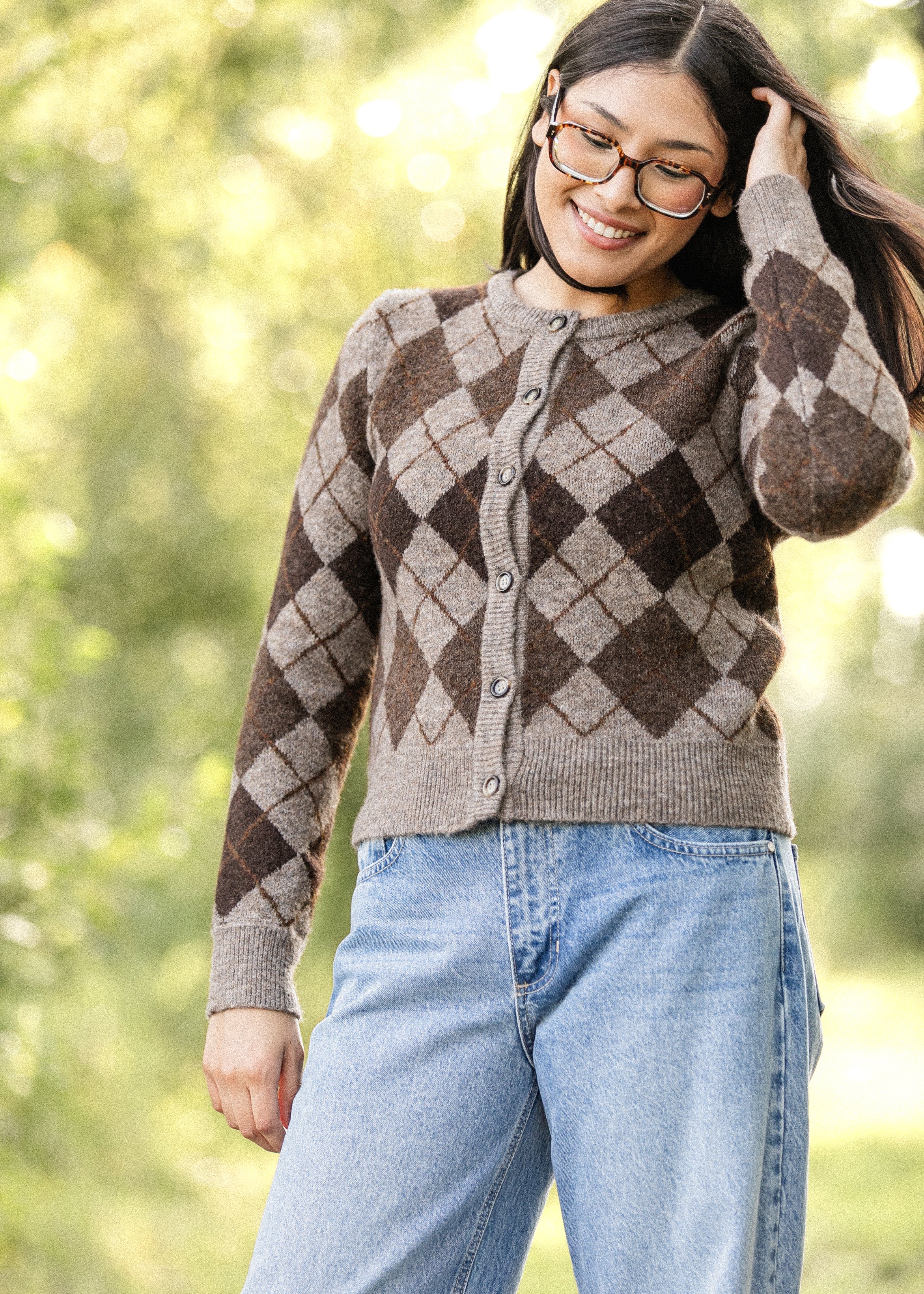 The Argyle Button Up Cardigan adds a touch of classic charm with its timeless diamond pattern in warm, earthy tones. Crafted from a soft knit for all-day comfort, it features a flattering fit and button-down front for versatile styling. Pair it with denim for a relaxed look or a flowy skirt for a more refined, modest ensemble!