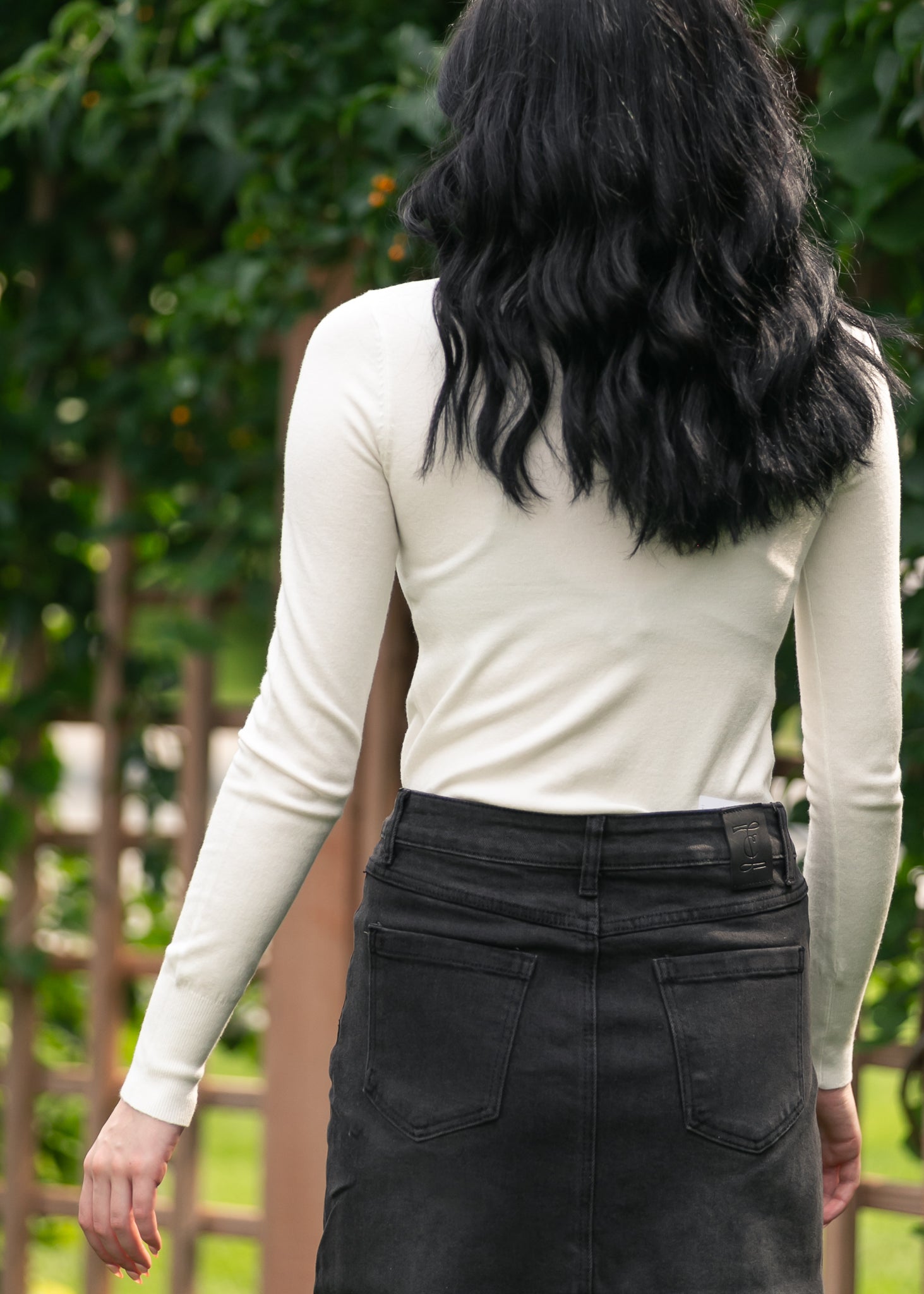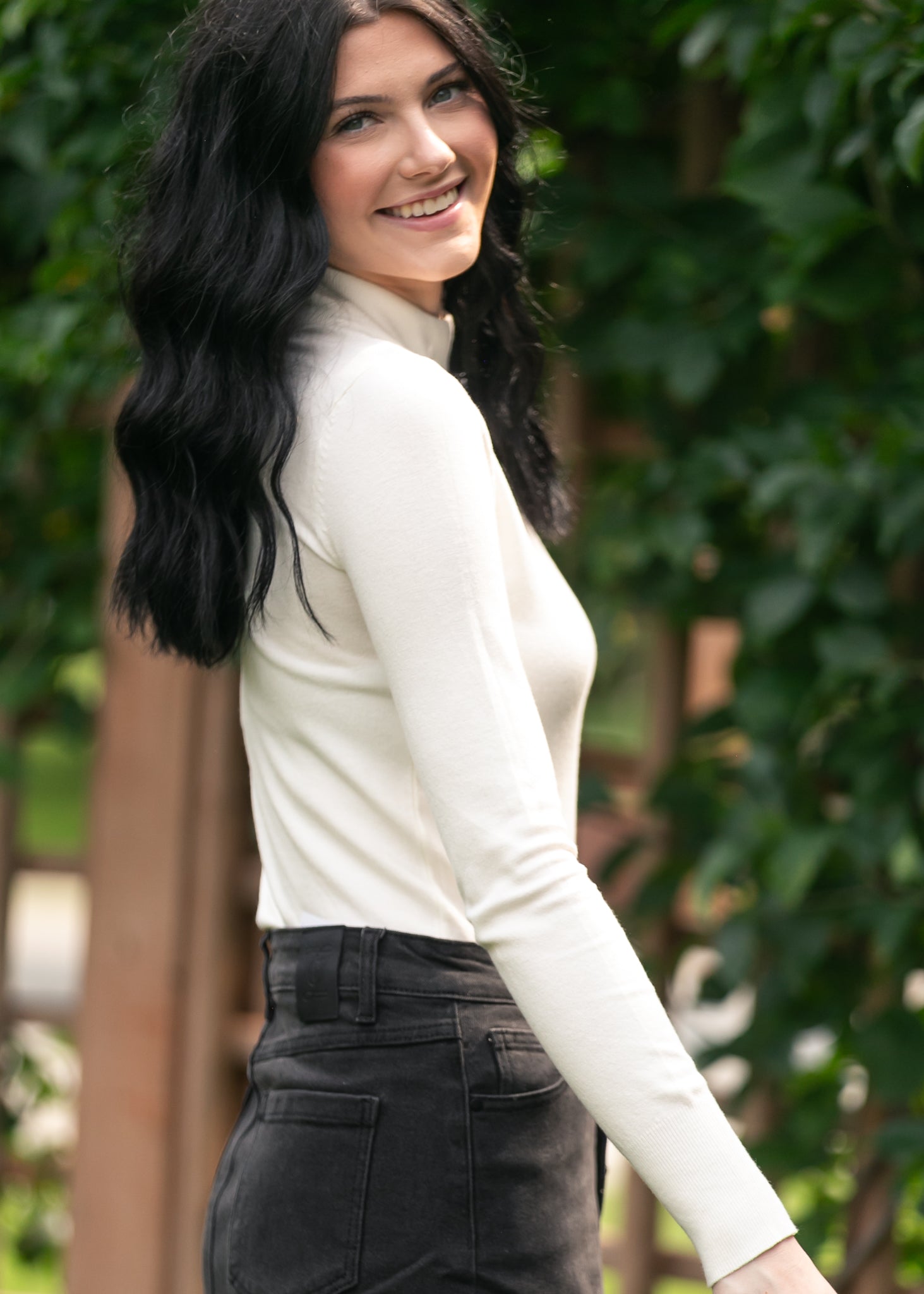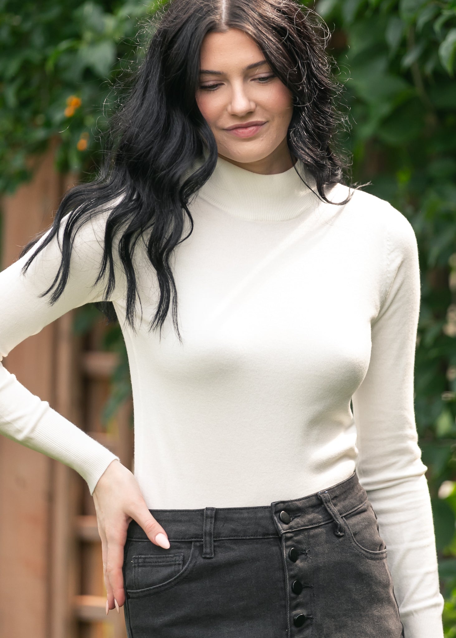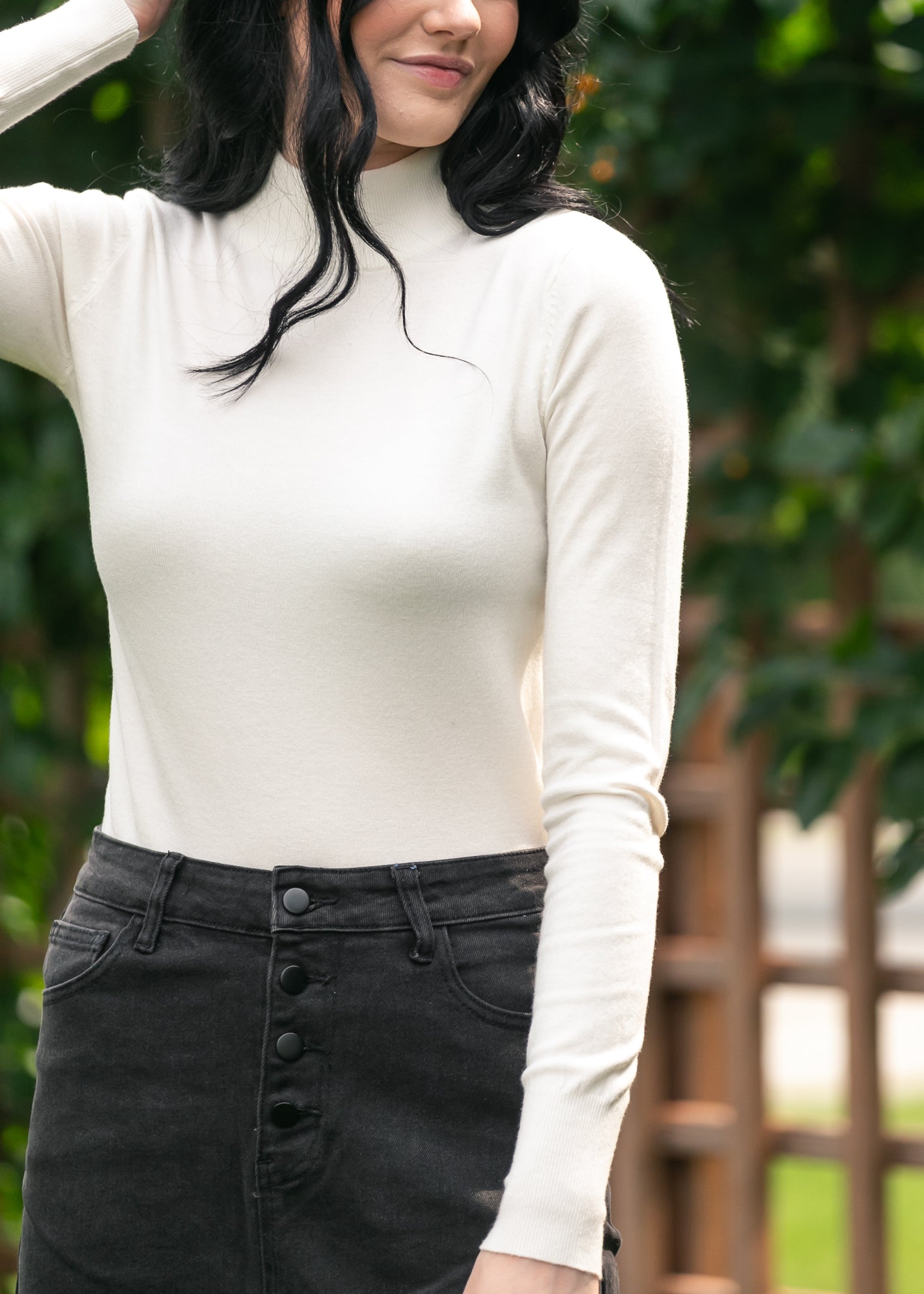 The Basic Mock Neck Sweater is a timeless layering piece that blends softness with simple elegance. Designed with a refined mock neckline and slim fit, it offers cozy warmth while keeping a polished silhouette. Style it tucked into a flowy skirt for gatherings or pair with denim for casual days, making it a versatile essential for every modest wardrobe.