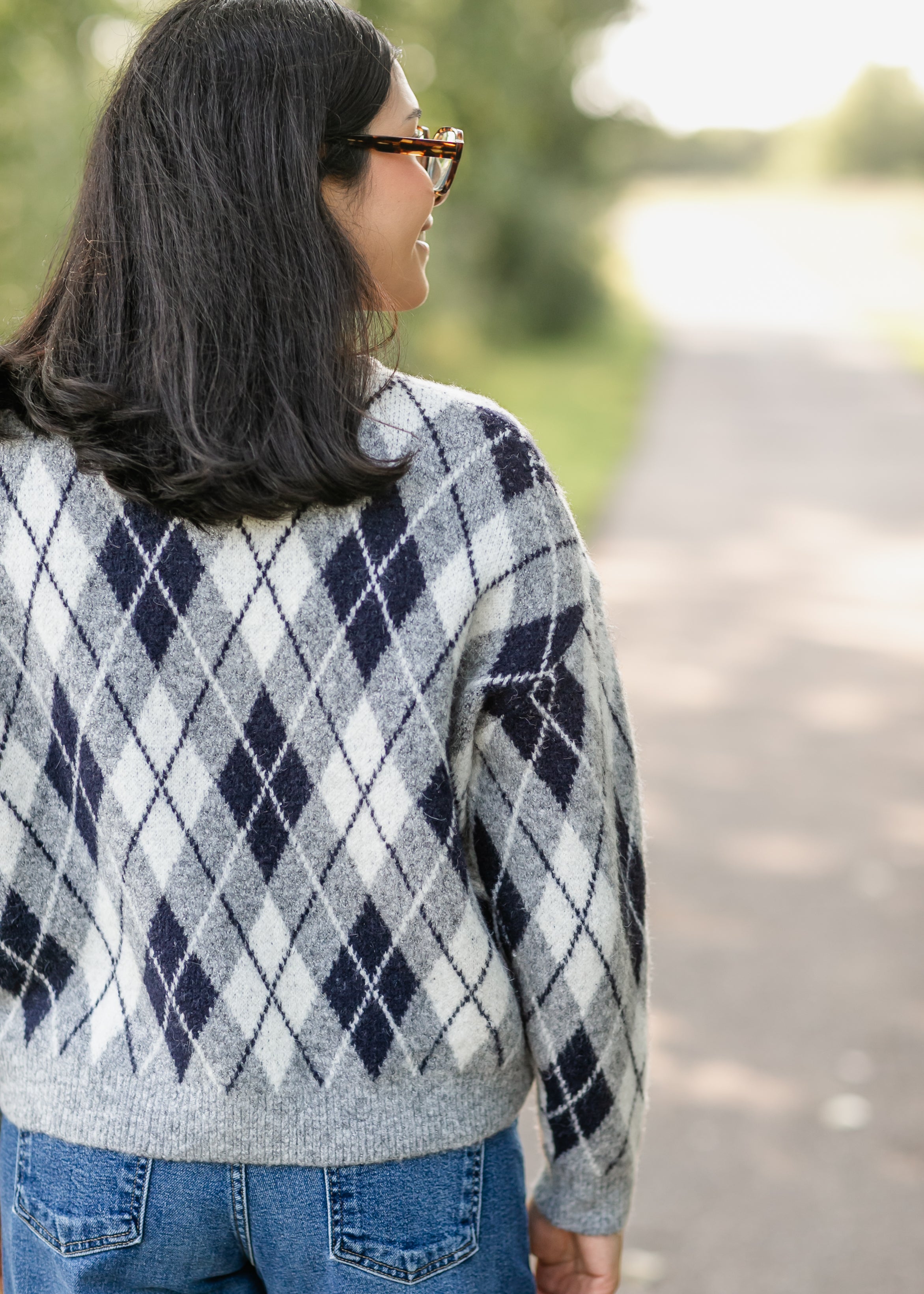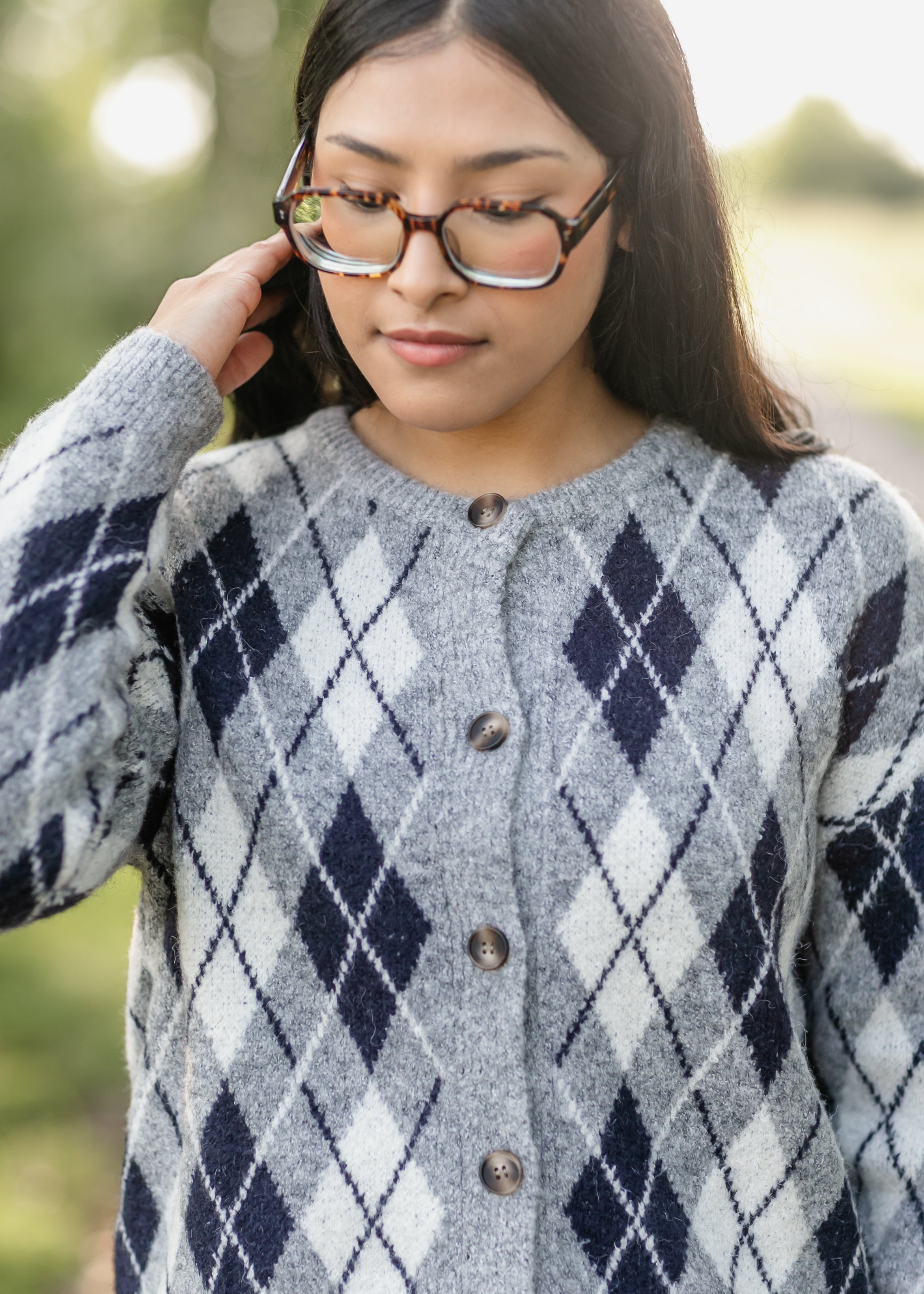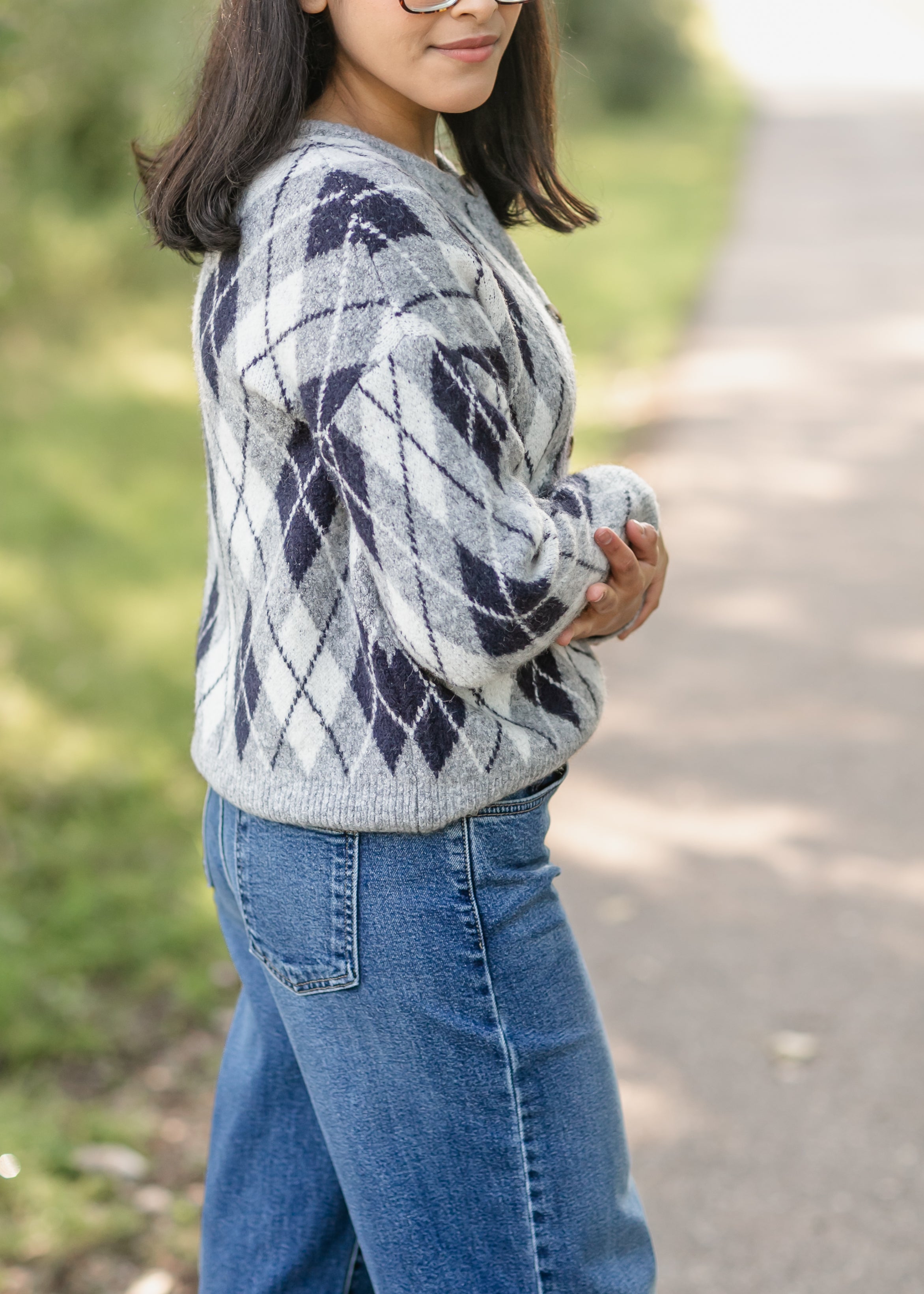 The Bec Argyle Button Up Cardigan brings a cozy update to a timeless pattern with its soft knit and classic diamond design in shades of gray and navy. Detailed with front buttons and a relaxed fit, it layers beautifully over tees or blouses. Style it with denim for an everyday look or dress it up with a skirt for a polished touch.