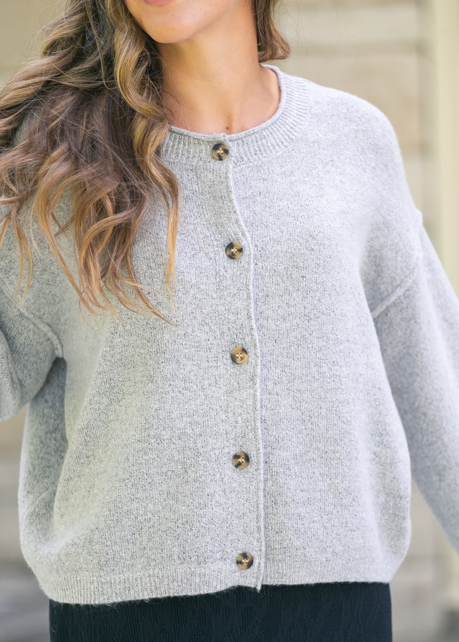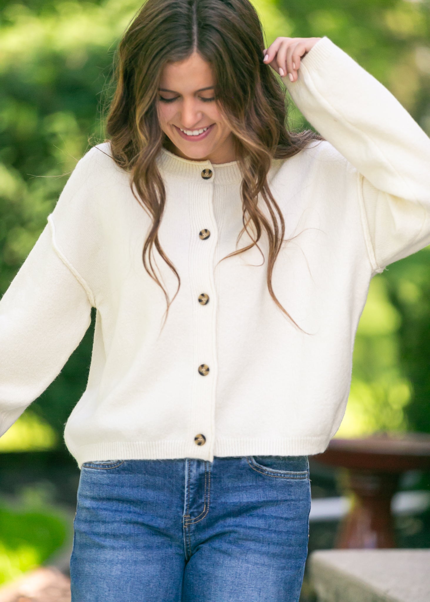 The button down raw seam cardigan is a timeless knit designed with a relaxed fit and statement seams for a touch of texture. Front buttons add versatility, making it easy to wear open over flowy skirts and dresses or buttoned with denim for a polished look. Soft, cozy, and lightweight, it’s the perfect layering piece for effortless, modest style all year long.