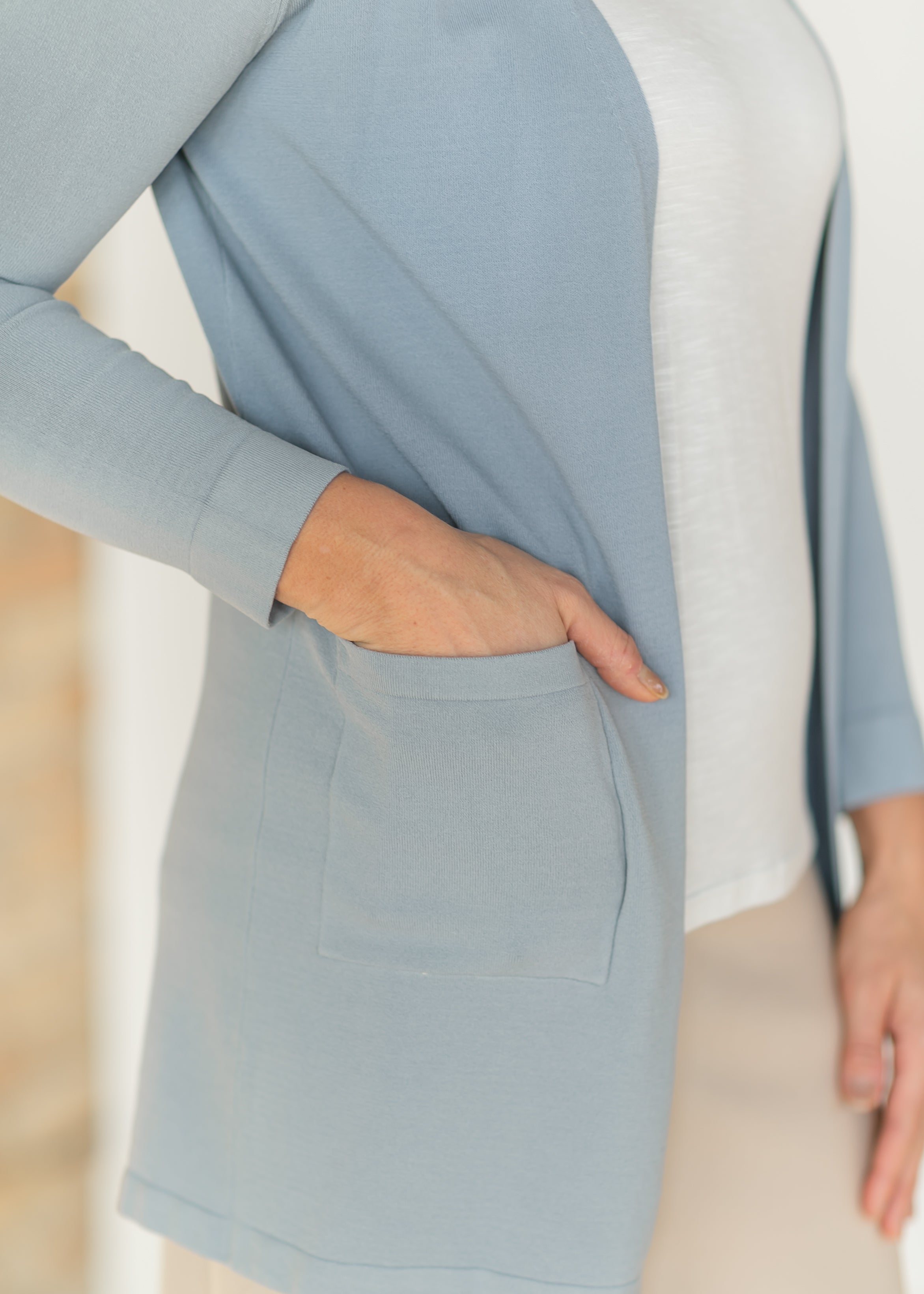 A no pill cardigan that you'll want in every color! The Inherit Designed Cally Open Front Cardigan are back in more colors! These classic cardigans are the solution to all of your layering problems. These are closet staples that you'll be reaching for season after season. Made from a premium knit fabric, these are soft and tailored in a straight down fit with functioning side pockets. This is a timeless design that will elevate your outfit to the next lever! Oh, and did we mention it doesn't pill?!