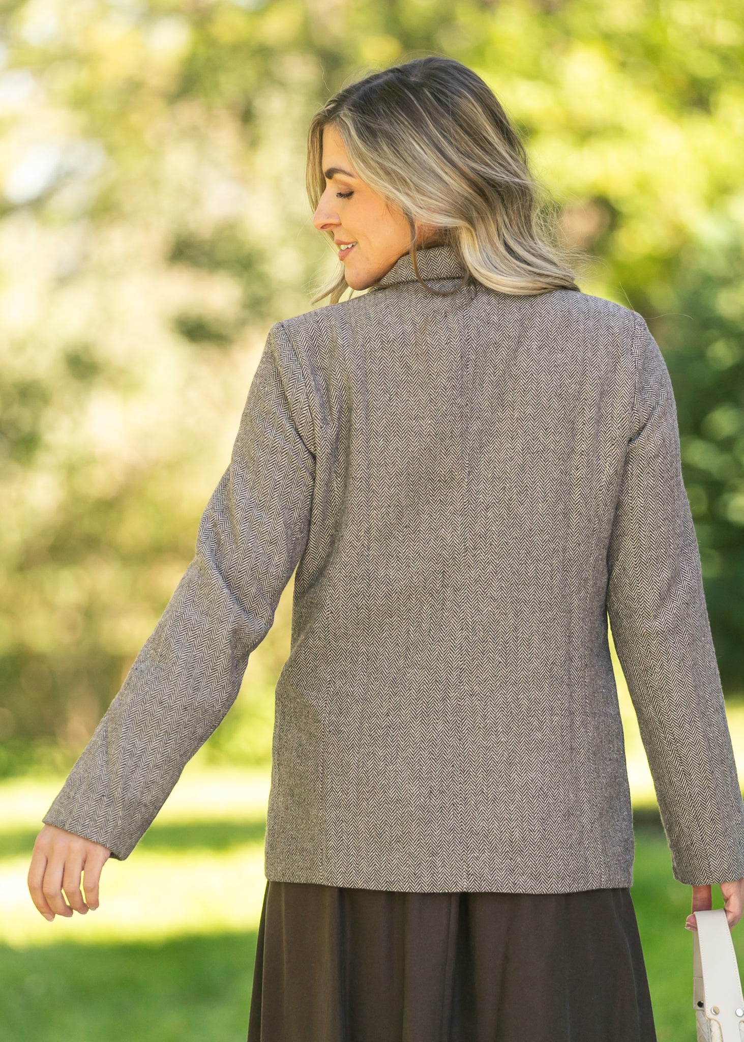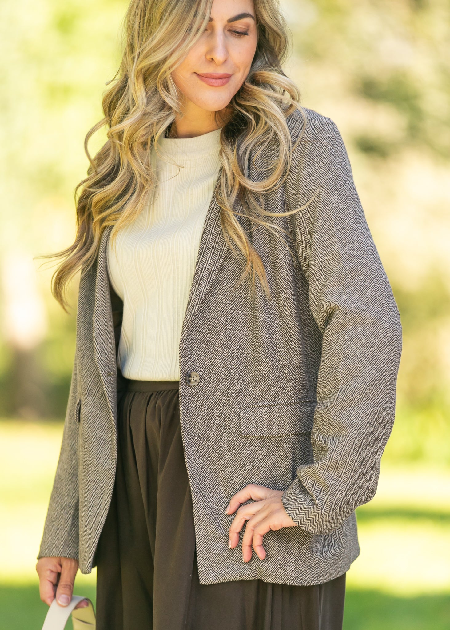 Herringbone Single Button Blazer