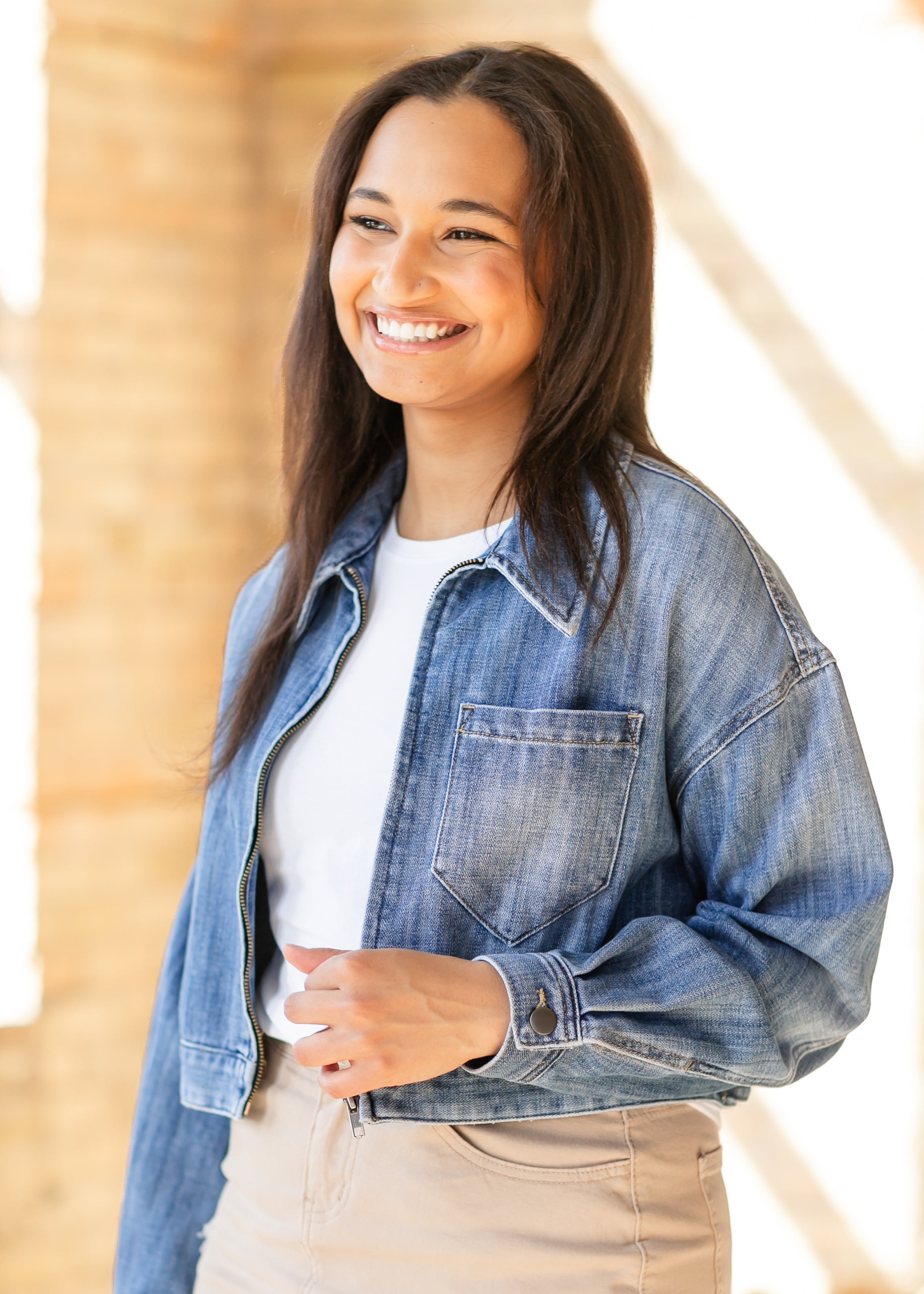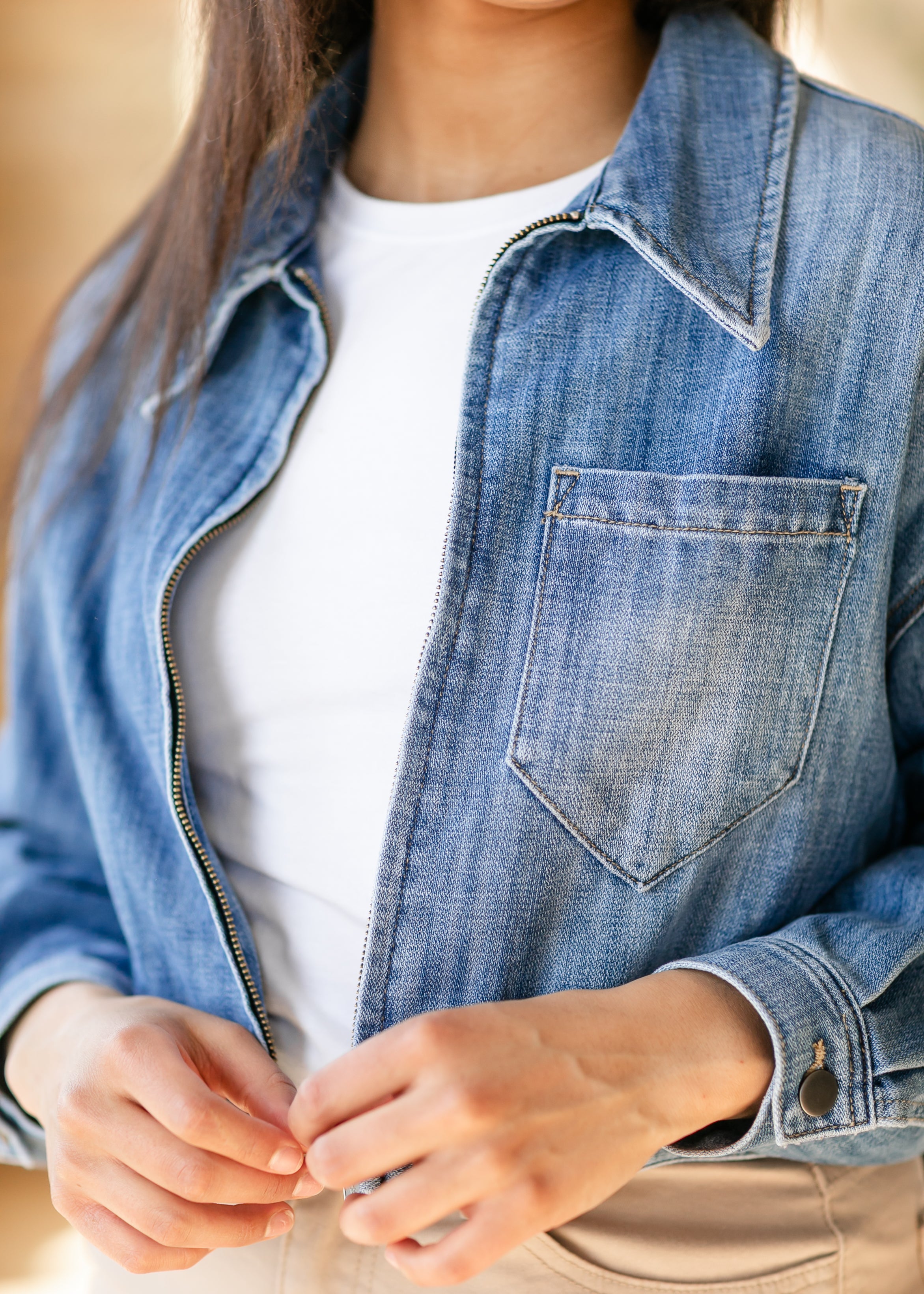 The KUT from the Kloth® Luna Oversized Crop Zip Front Jacket is the perfect blend of laid-back style and modern edge. Designed with an oversized fit and a cropped silhouette, this jacket offers a trendy, relaxed look that pairs effortlessly with everything from denim skirts to casual dresses. The front zipper closure adds a sleek, polished touch, while the functional front pockets provide convenience without compromising style. Crafted from high-quality denim, this jacket is a versatile layering piece that can be dressed up or down for any season. Whether you're running errands, heading out for a weekend brunch, or adding a touch of cool to your everyday outfit, the Luna jacket is a must-have staple in your wardrobe. The slightly distressed wash gives it a lived-in feel, making it the ideal companion for effortless, casual-chic dressing. Stay stylish and comfortable all day long with this go-to layering essential!