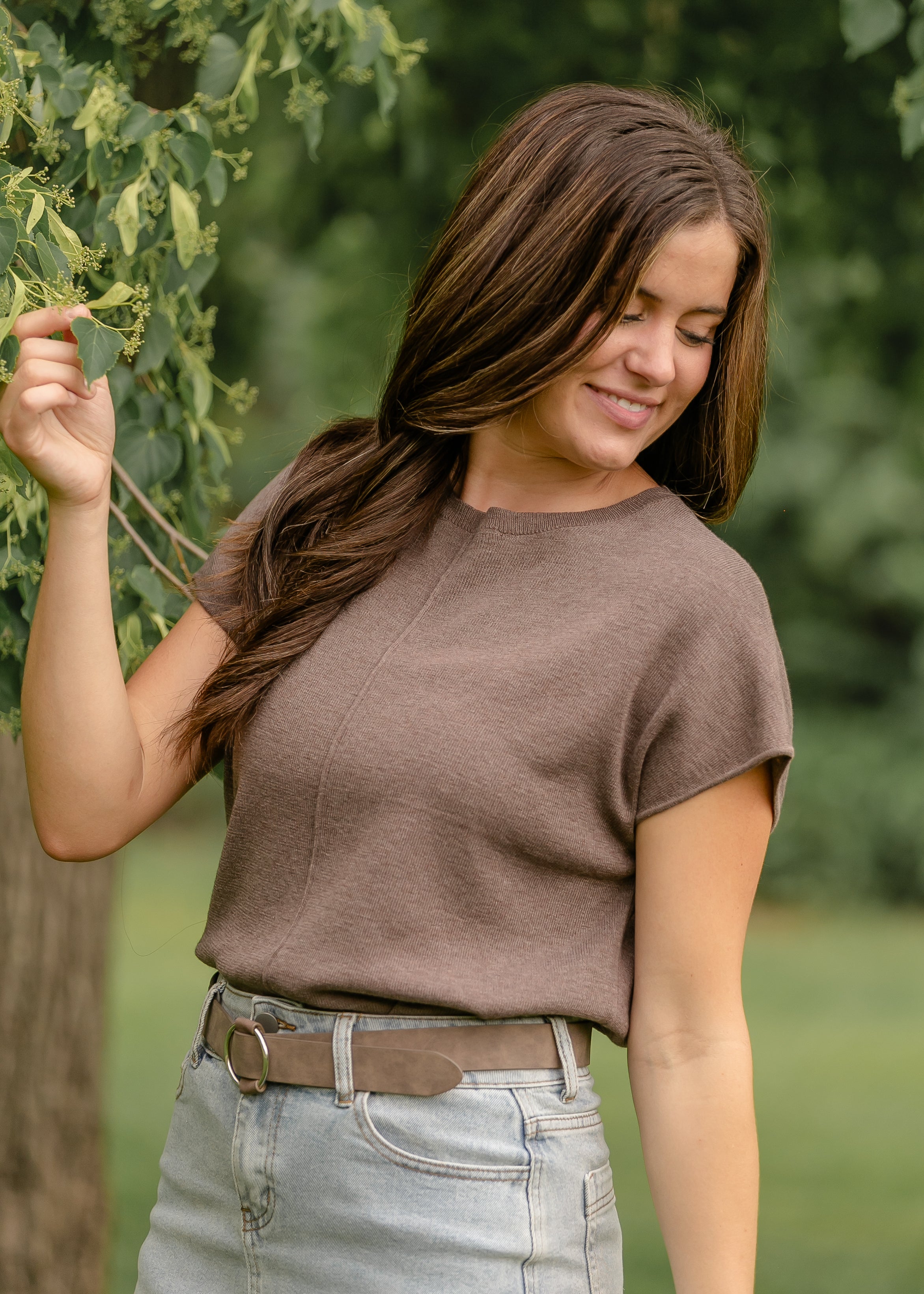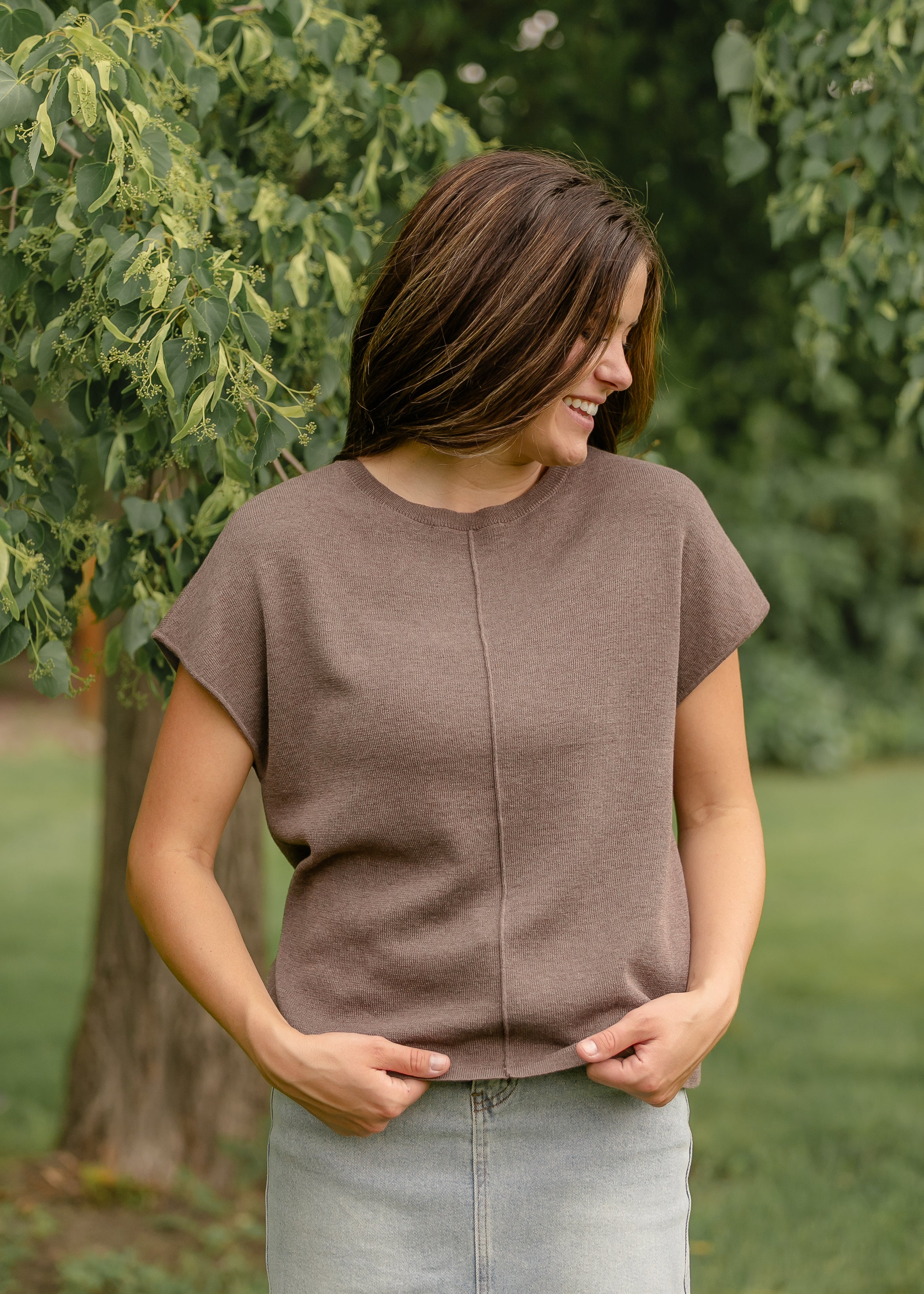 The Lightweight Cap Sleeve Sweater is an elevated basic with a soft knit feel and flattering structure. Designed with a clean center seam and modest cap sleeves, this minimalist top drapes beautifully while keeping things polished. Its versatile silhouette makes it perfect for layering or wearing on its own through the changing seasons.