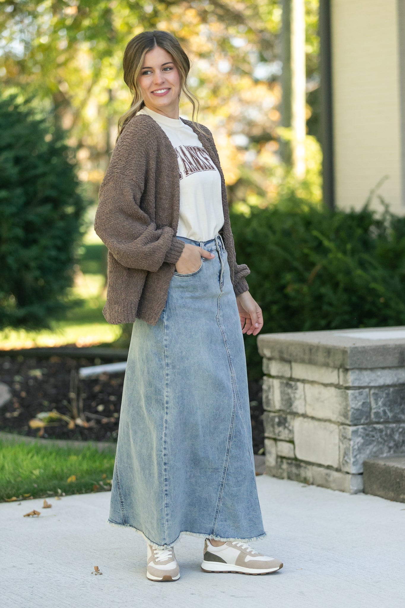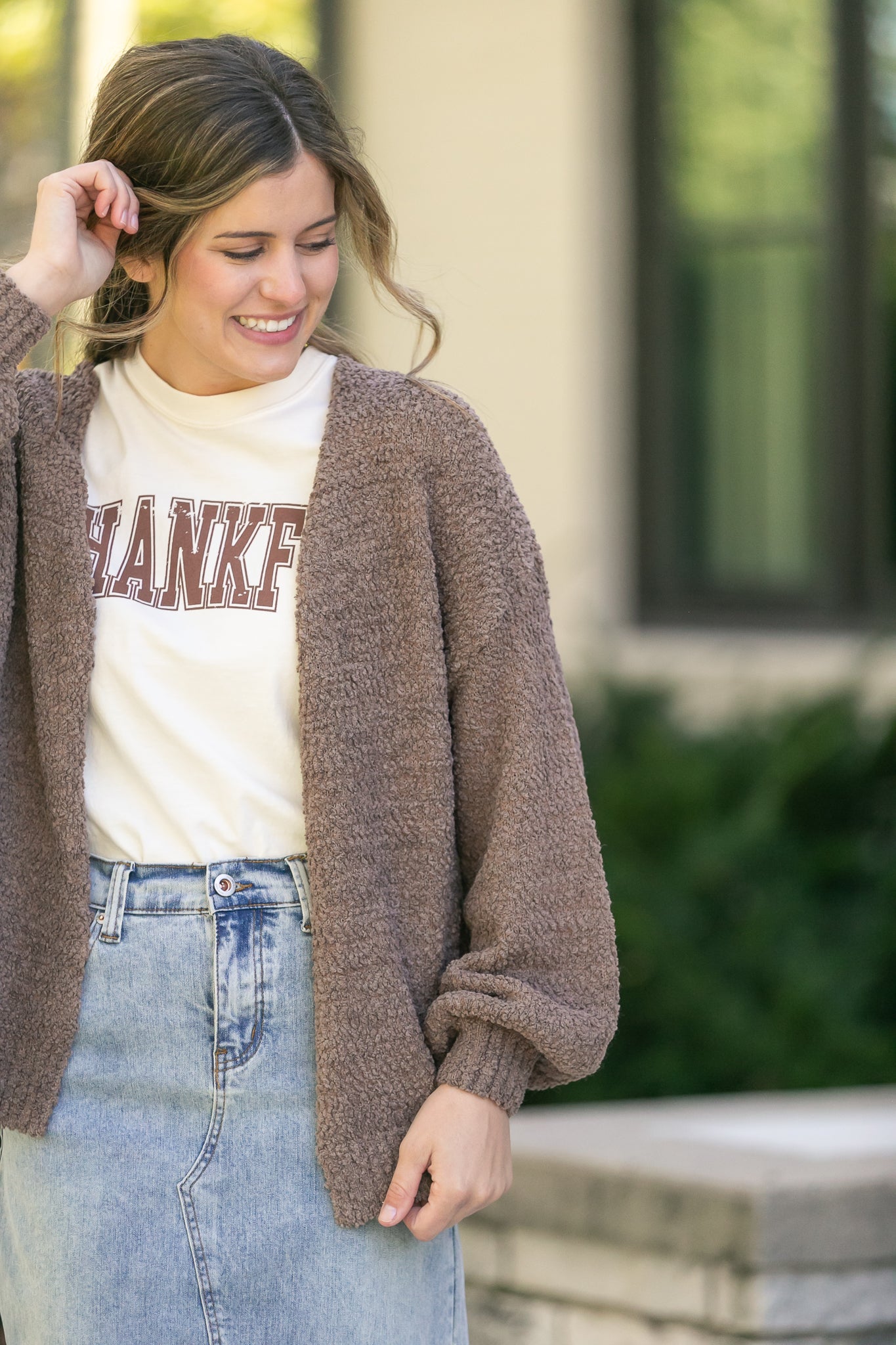 The Popcorn Knit Open Front Cardigan is a cozy layer designed for timeless, modest style. Its soft, textured fabric drapes effortlessly, creating a look that’s both relaxed and refined. Perfect over a simple top and denim or a flowy skirt, it invites warmth and grace into everyday moments, reflecting the beauty of comfort rooted in faith and simplicity.