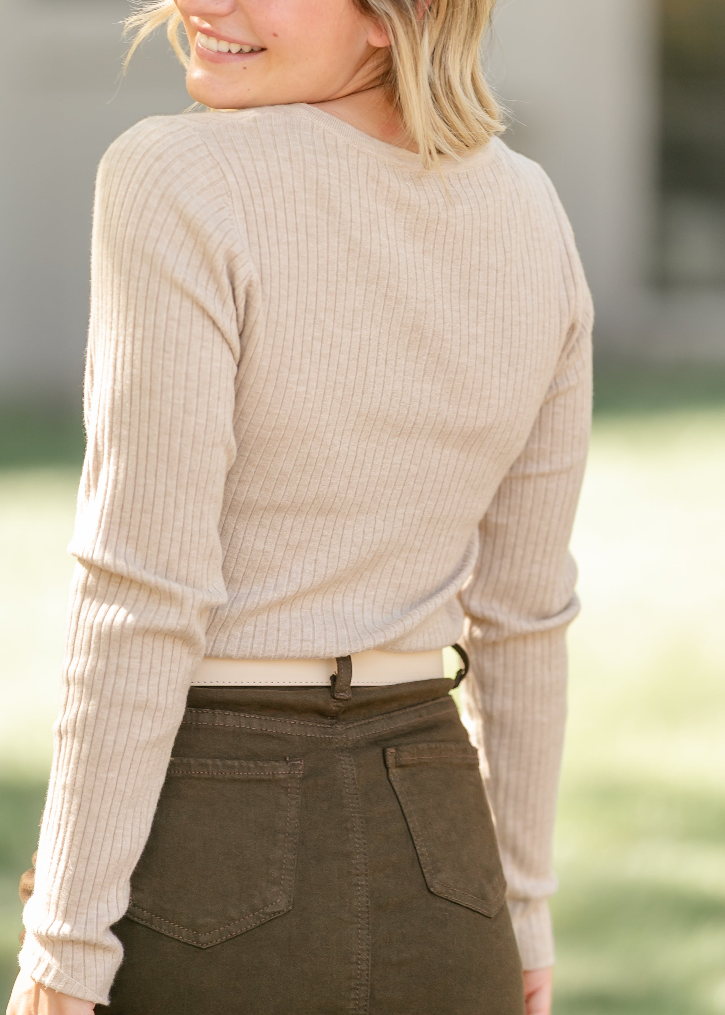 The Ribbed Button Down Cardigan is a timeless layering essential crafted from a soft, stretchy knit that moves with you. Designed with a classic scoop neckline, full-length sleeves, and functional buttons, it offers endless styling options. Wear it buttoned as a top or layered open over flowy skirts or denim for an effortlessly modest and cozy look.