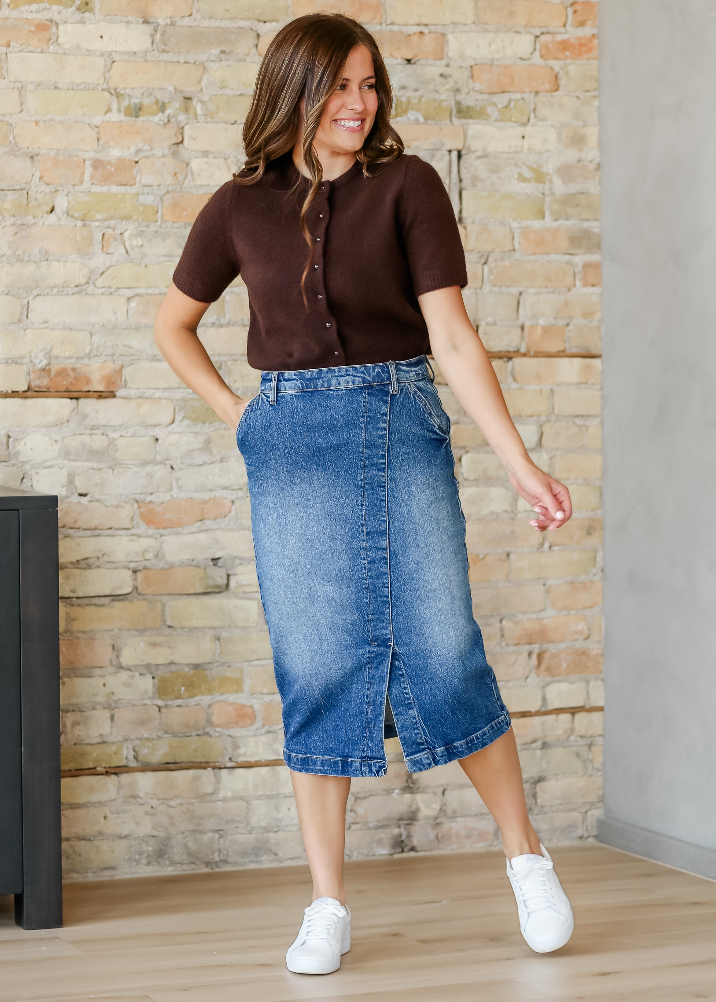 Soft, cozy, and timeless, this Short Sleeve Button Cardigan is a layering essential you’ll reach for season after season. Made from a lightweight knit with a flattering silhouette, this button-front cardigan features a modest crew neckline and ribbed sleeves for a polished finish. It’s the perfect blend of elevated comfort and versatile styling for everyday wear.