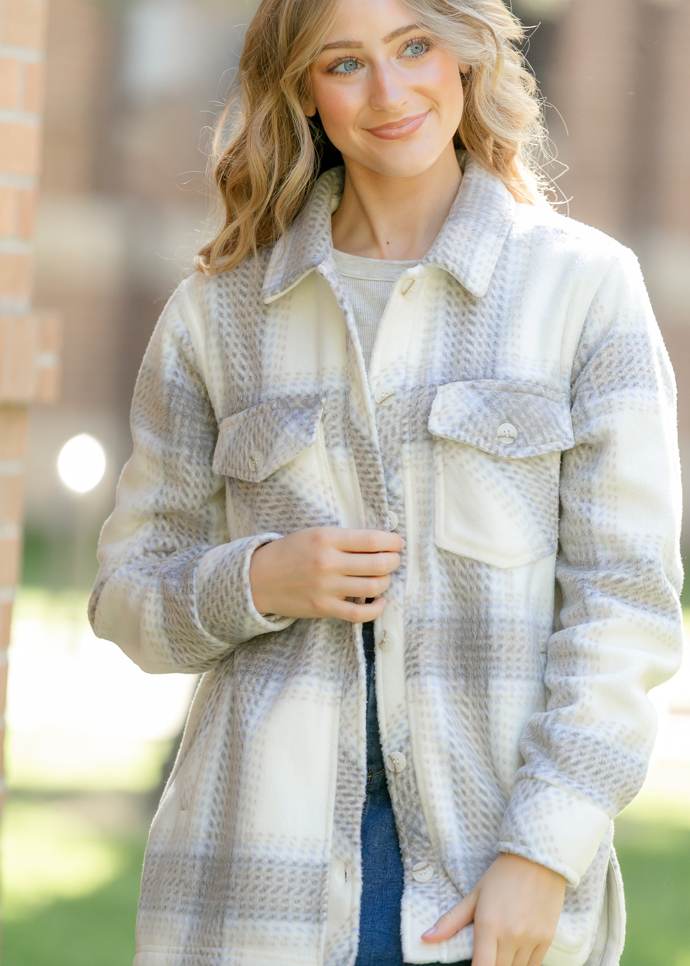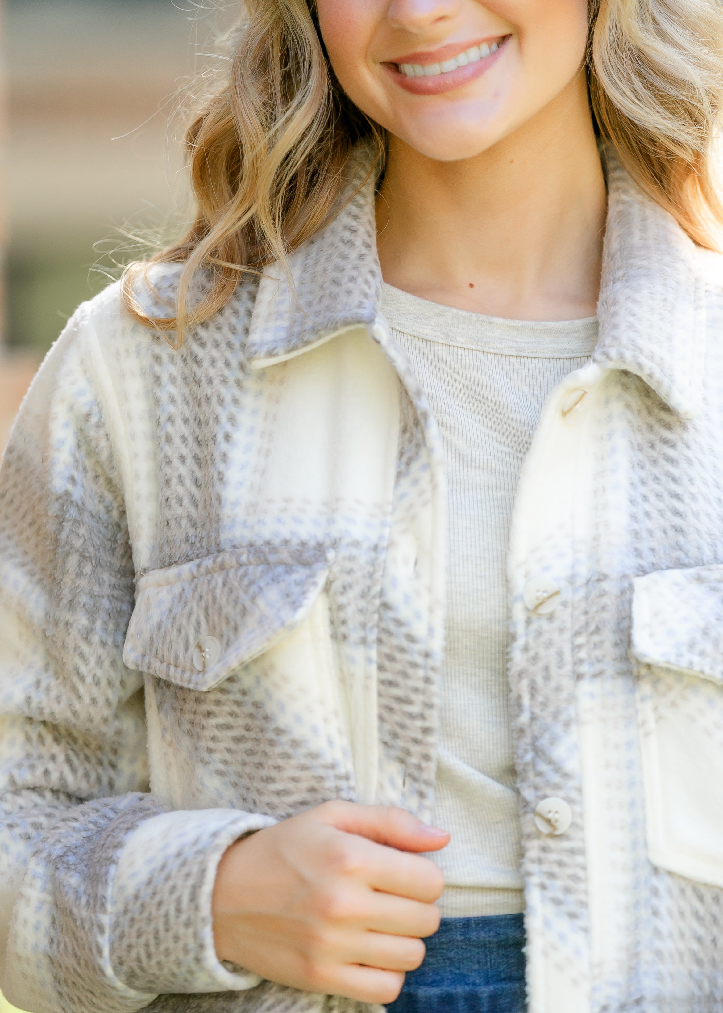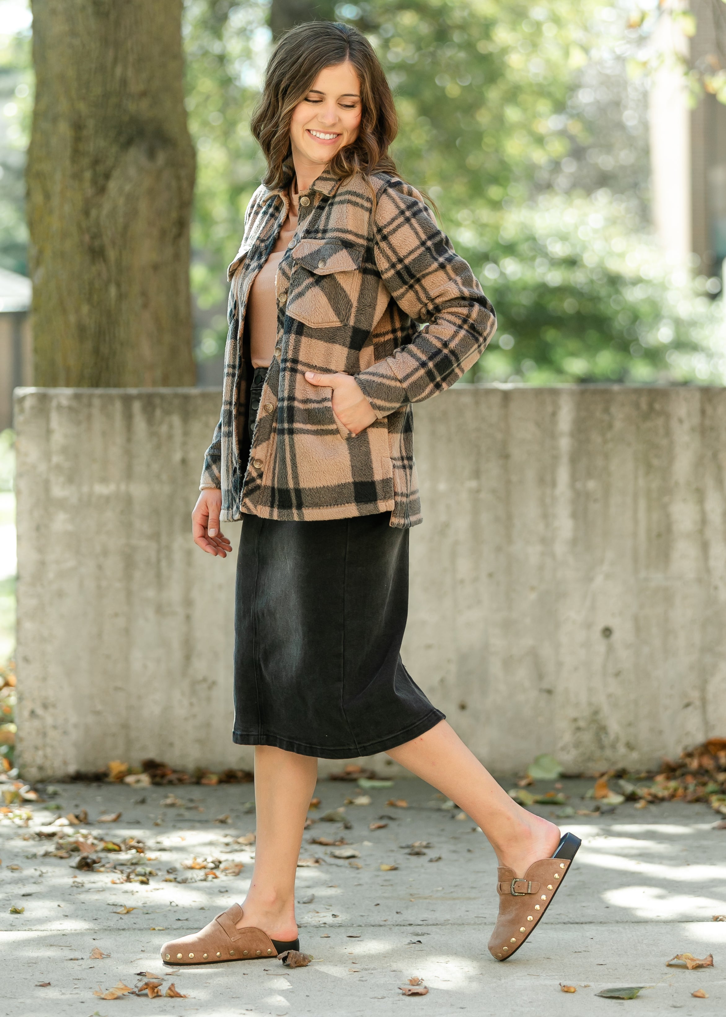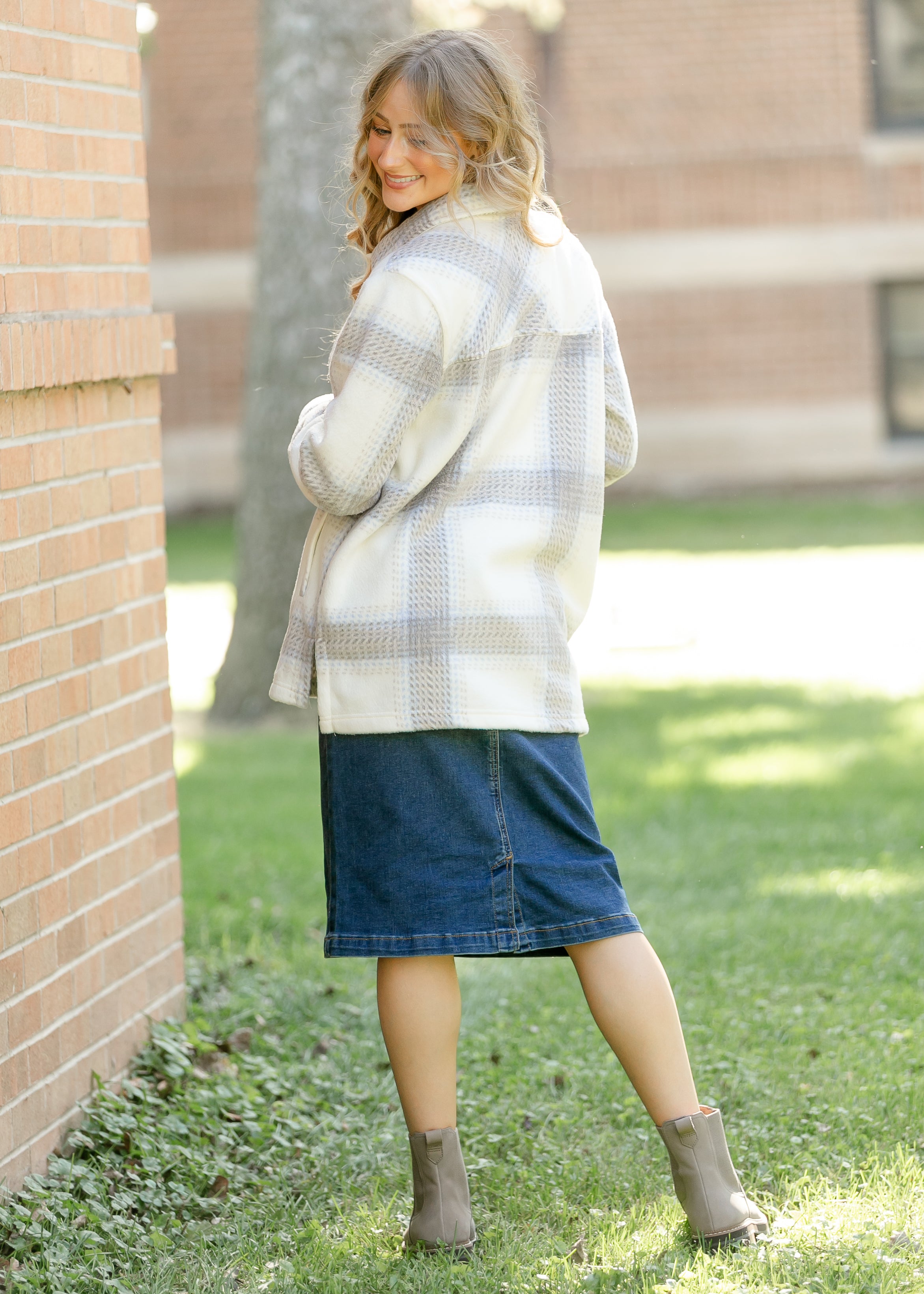 The Thread & Supply® Santa Fe Jacket is the perfect layering piece for crisp fall days. Crafted from ultra-soft fleece with a classic plaid pattern, it offers warmth without bulk. Available in warm camel plaid or soft ivory plaid, each brings timeless versatility. Pair it with a flowy skirt or your favorite denim for effortless, modest everyday style.