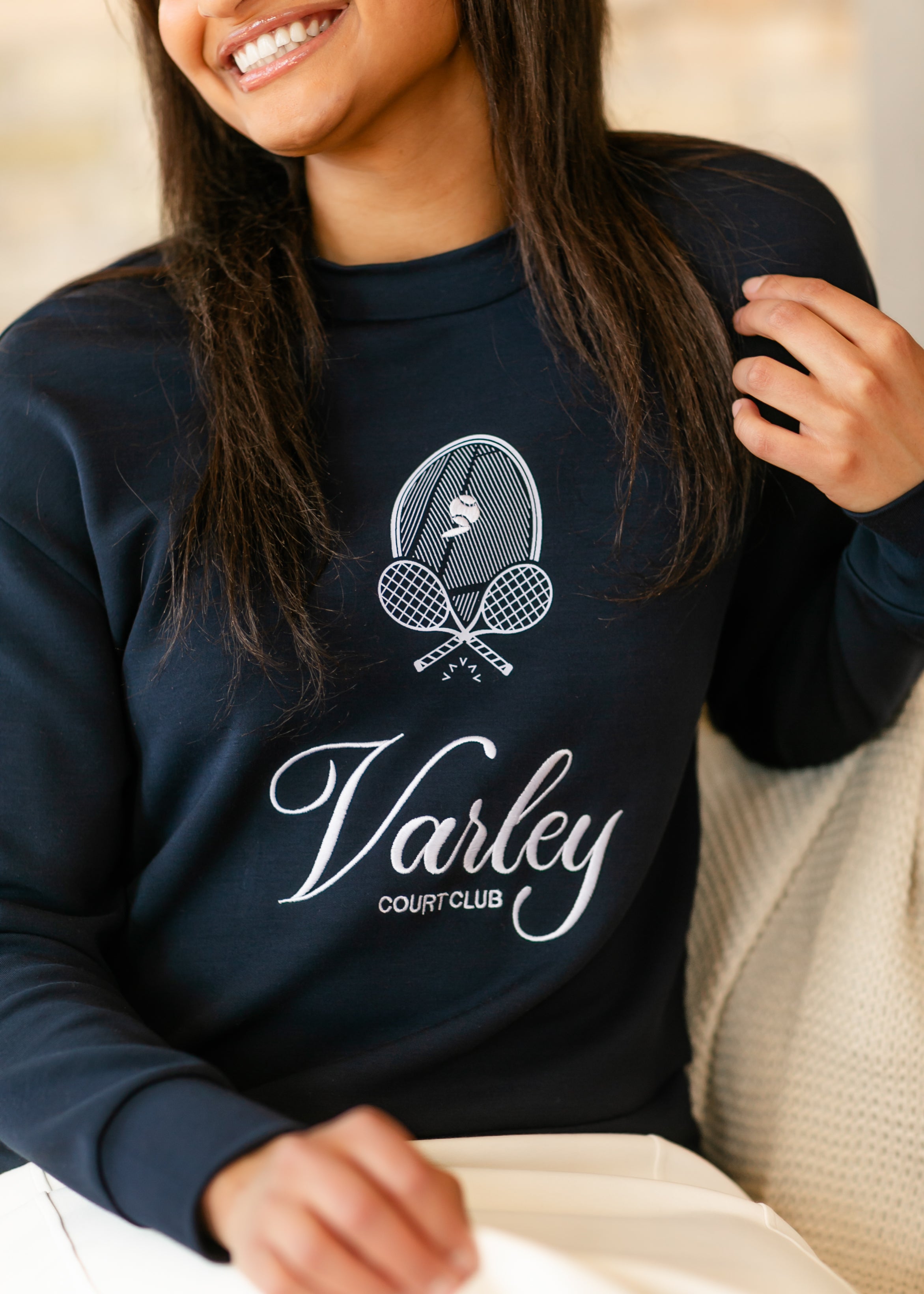 The VARLEY® Rasco Namesake Crewneck Sweatshirt is a cozy, everyday essential with a modest and relaxed fit. Made from ultra-soft DoubleSoft® fabric, this casual layer brings comfort and versatility to your wardrobe. Featuring Varley’s signature court club logo, it’s perfect for layering over your favorite modest skirts or dresses for a laid-back yet polished look!