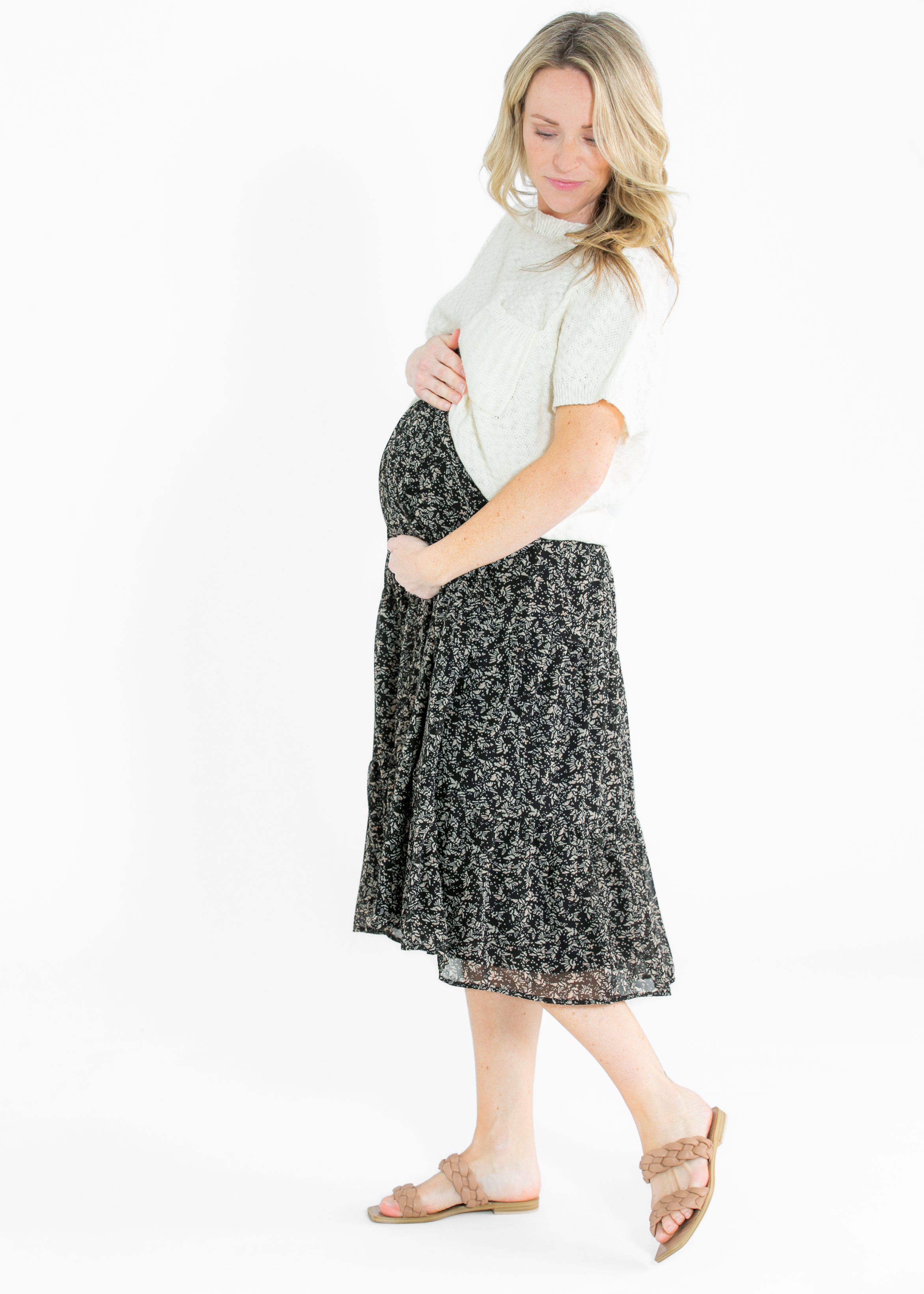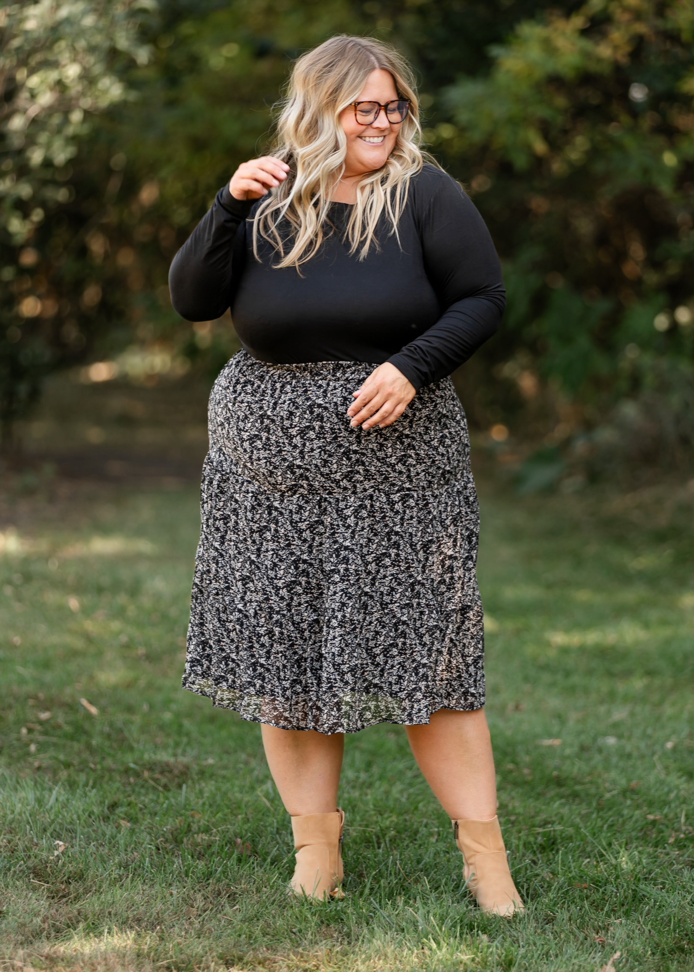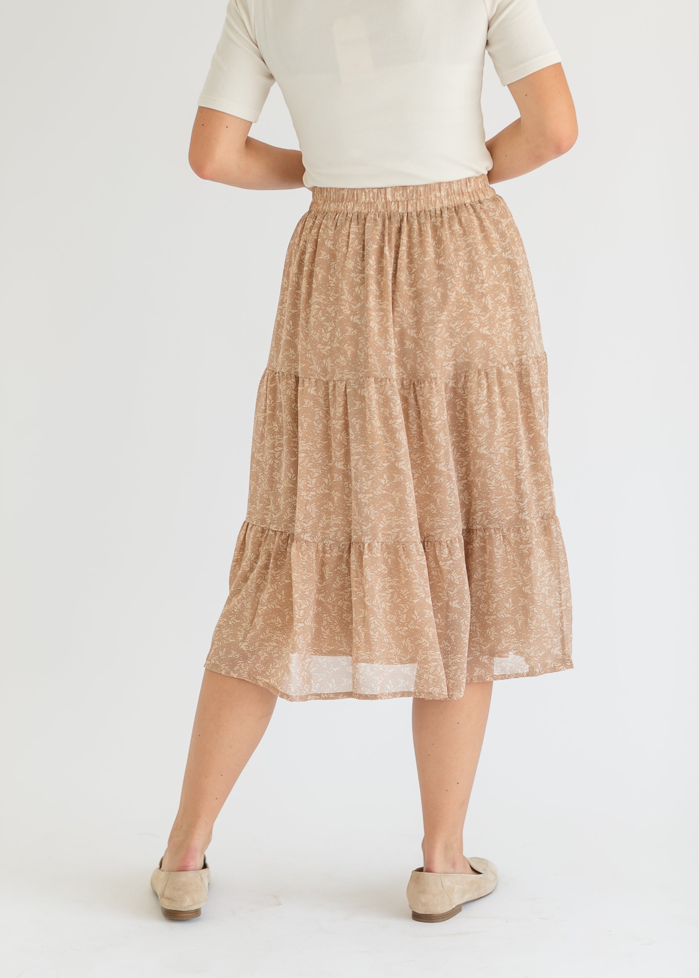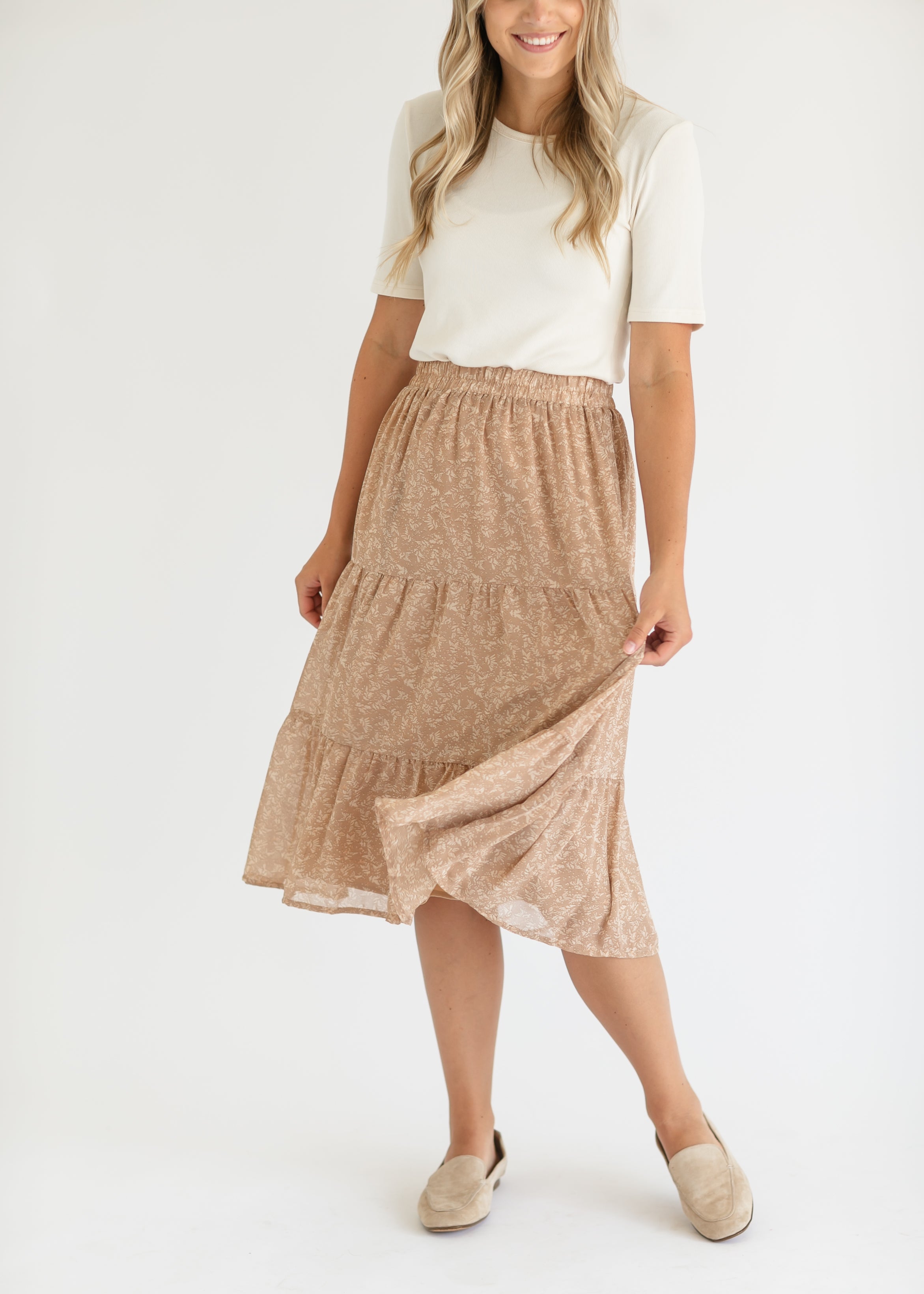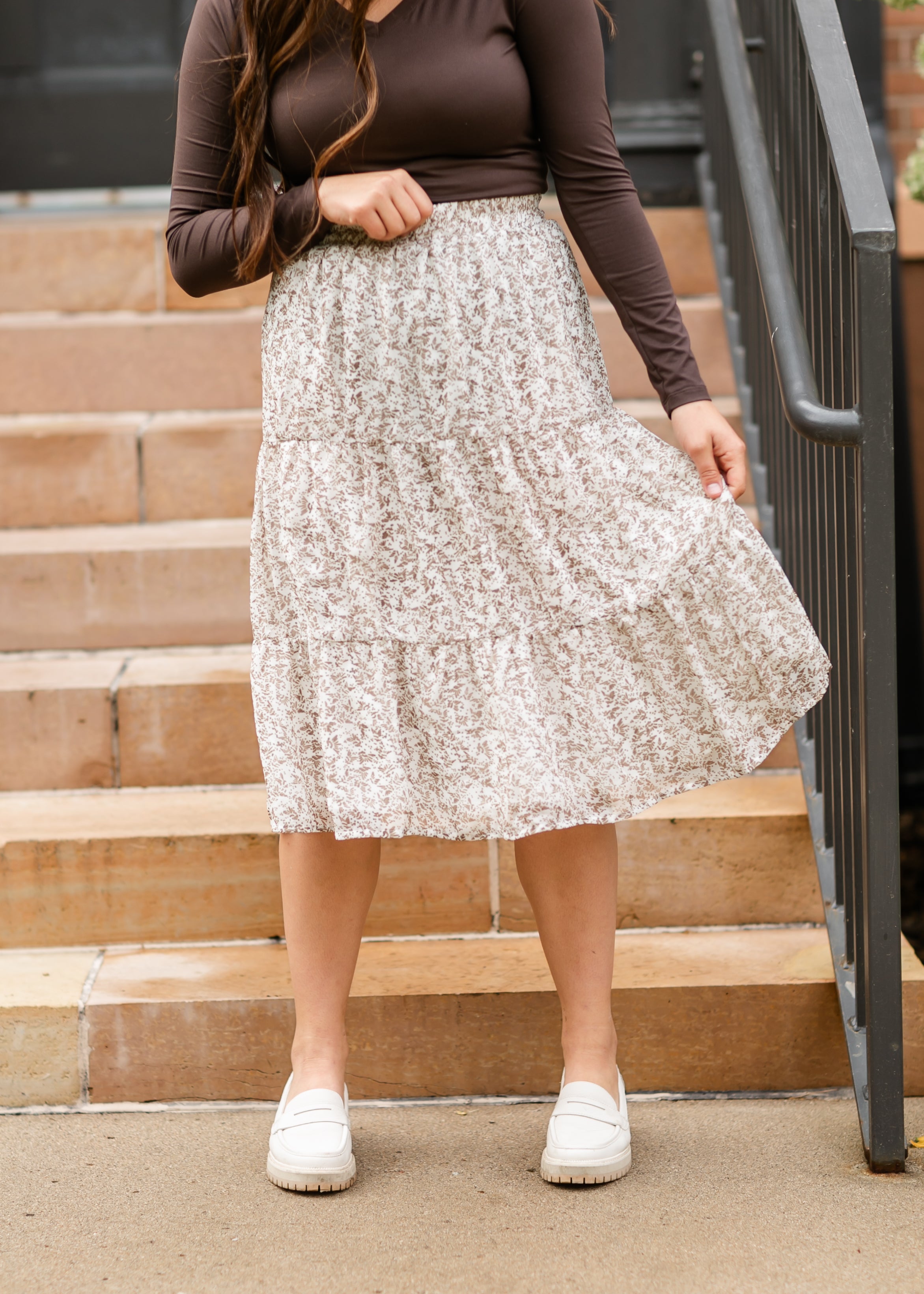 There is just something so fun about floral! The Harlow Abstract Floral Tiered Midi Skirt is perfect for pairing with sneakers, sandals, or boots! This modest midi skirt was designed to make movement comfortable and effortless all while looking put together and feeling fabulous! This floral skirt has enough room for biking and enough elegance for church. This skirt has fresh fall colors that look perfect paired with a denim jacket or graphic tee and is a look every girl needs in her closet!